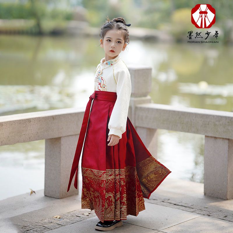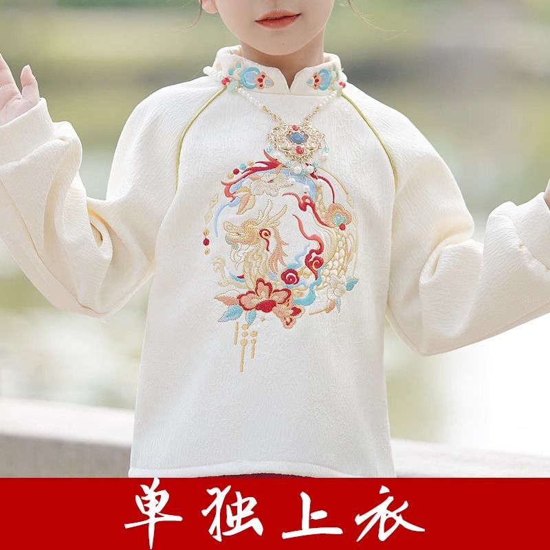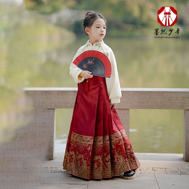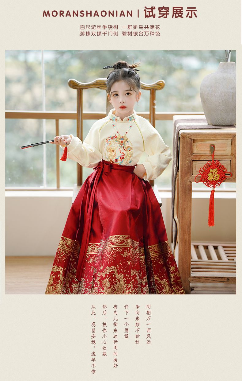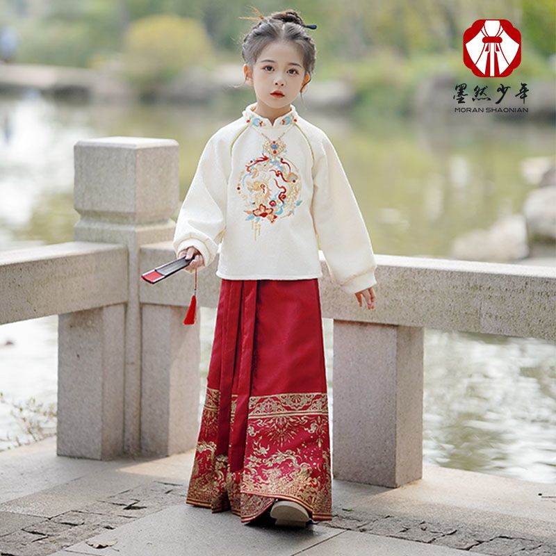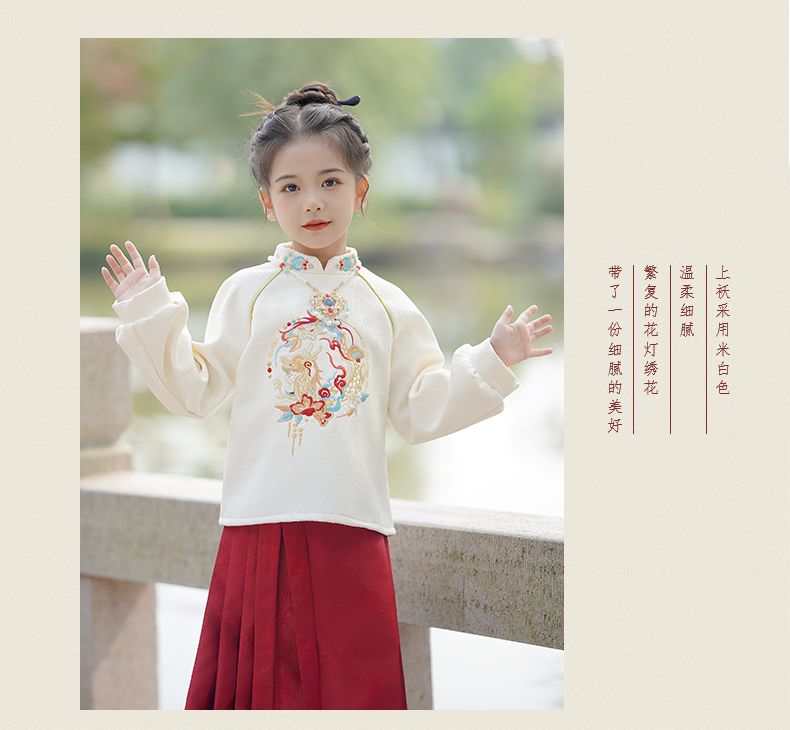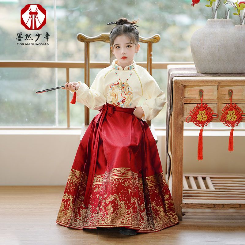 儿童马面裙新款女童套装中国风日常儿童汉服古风秋款长袖薄款唐装