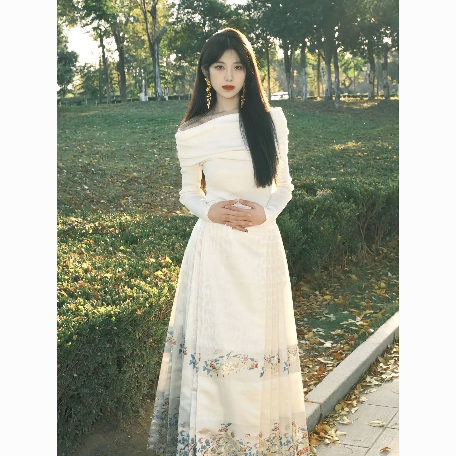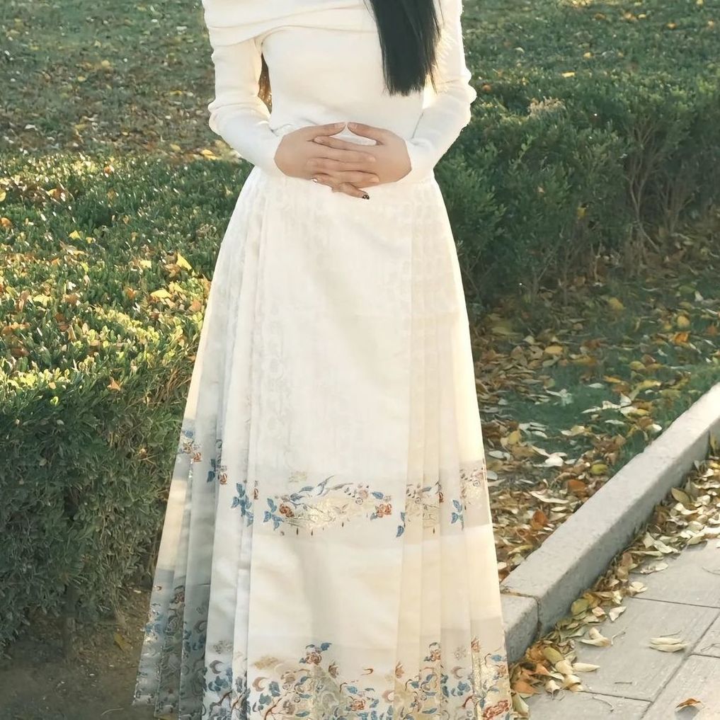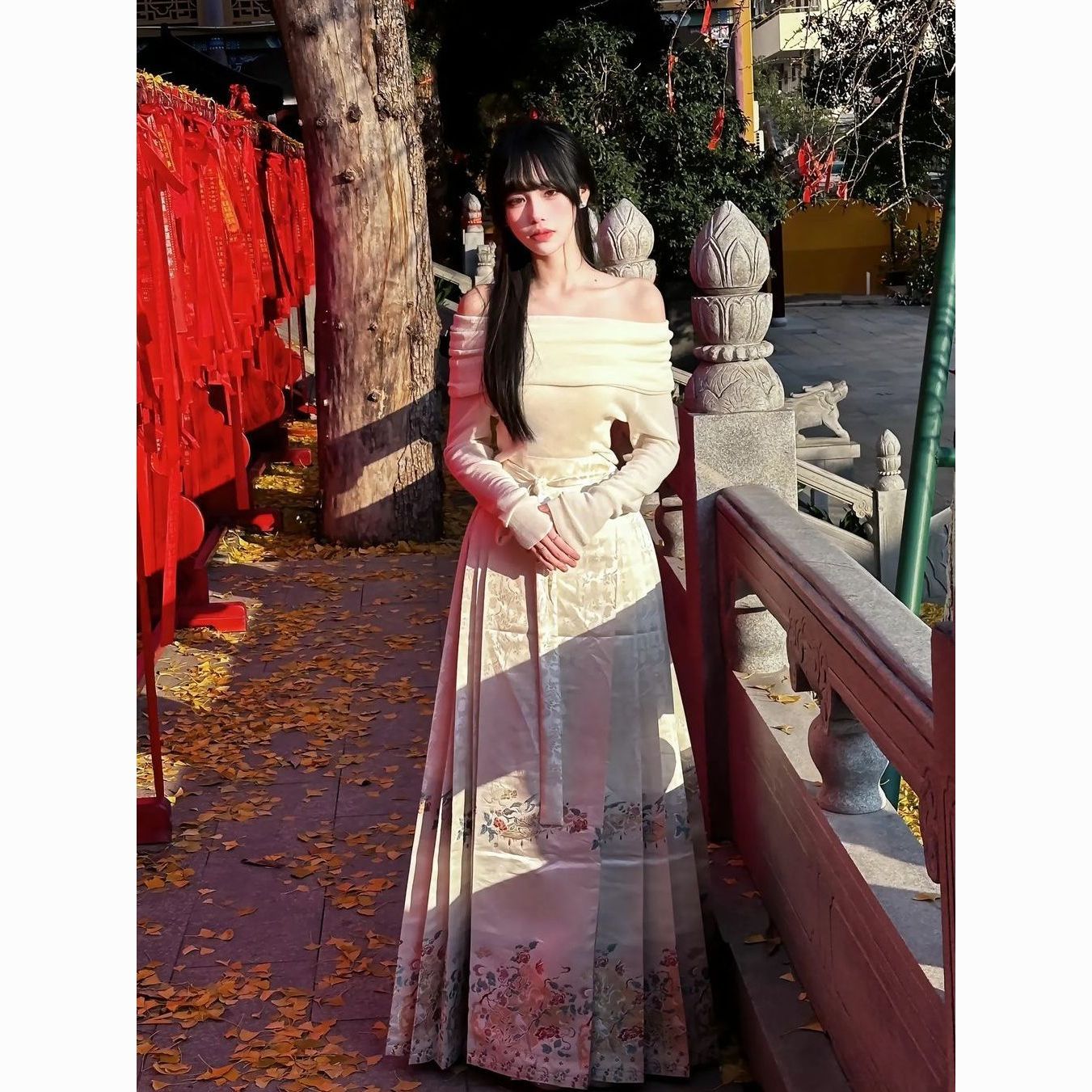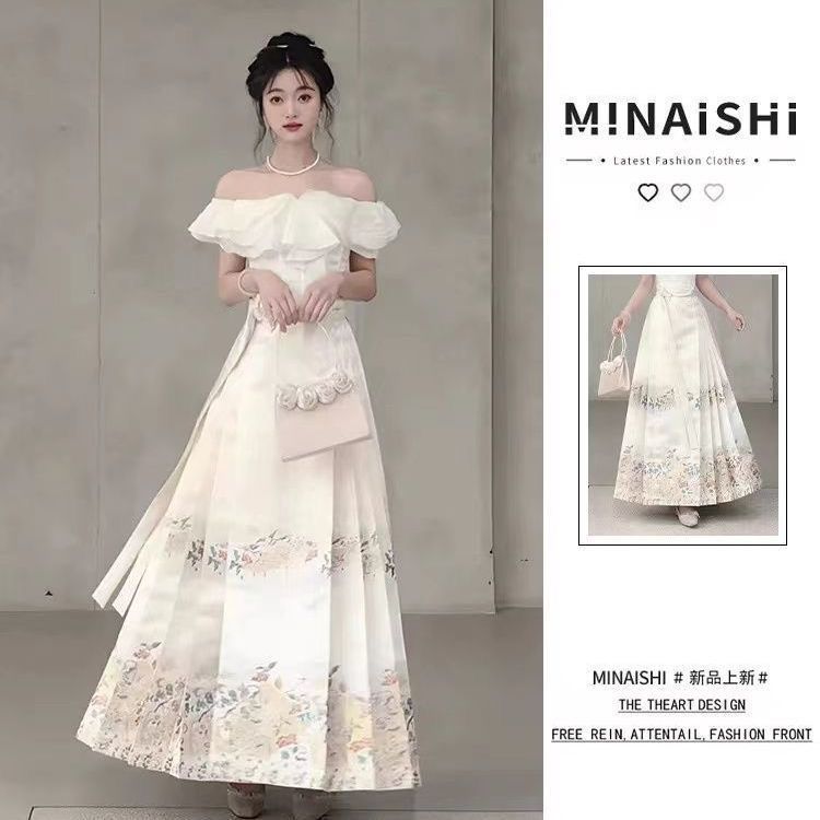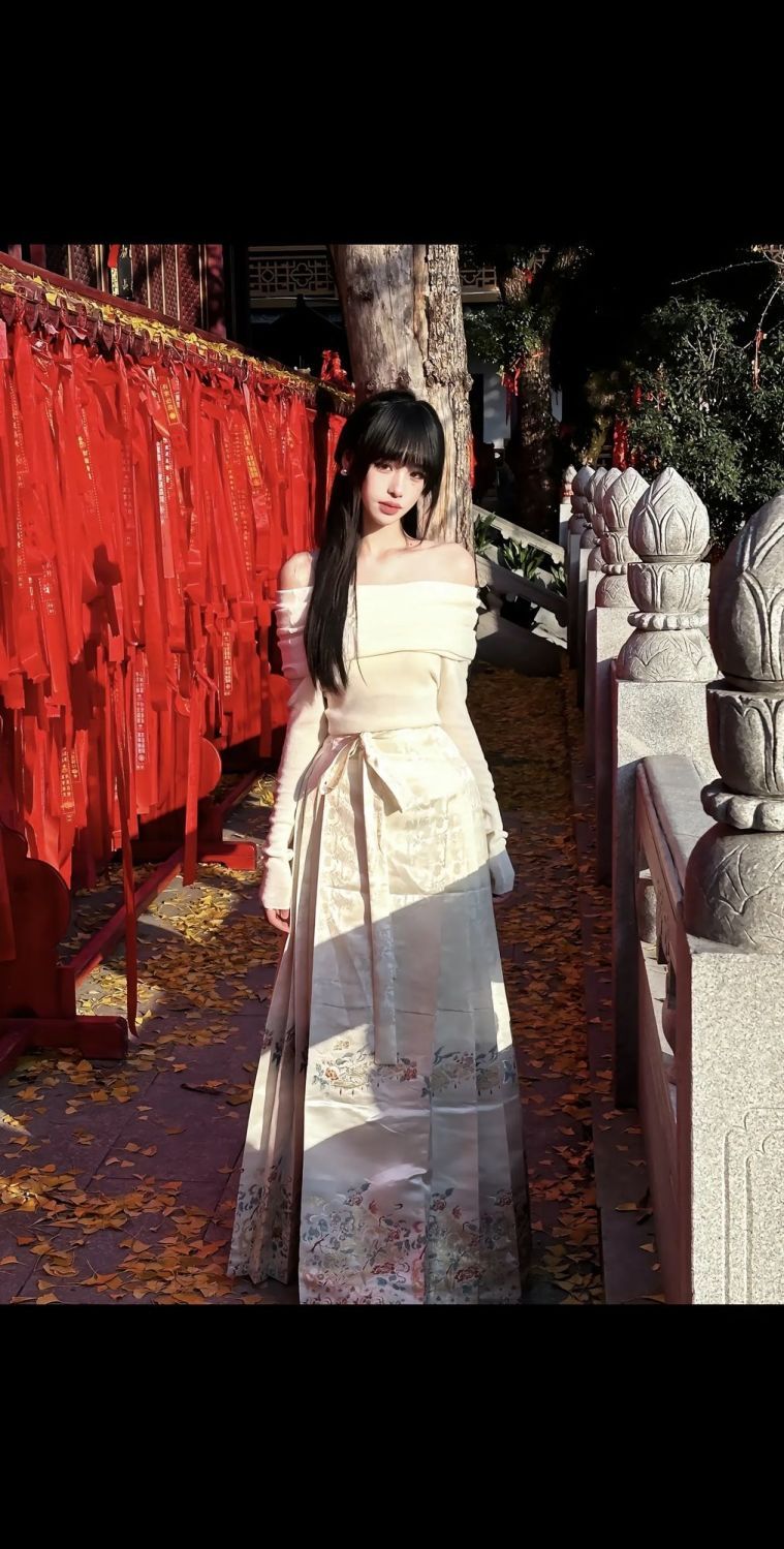 新中式国风马面裙套装一字肩气质薄款日常改良优雅显瘦超仙秋冬款