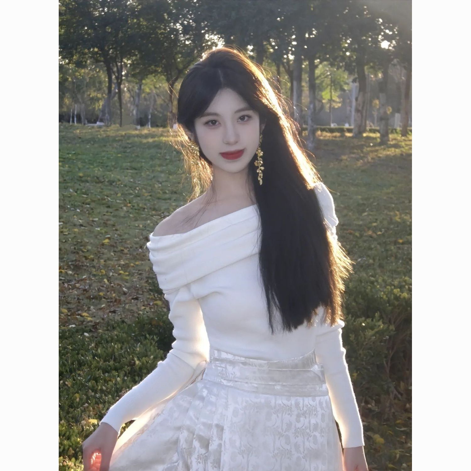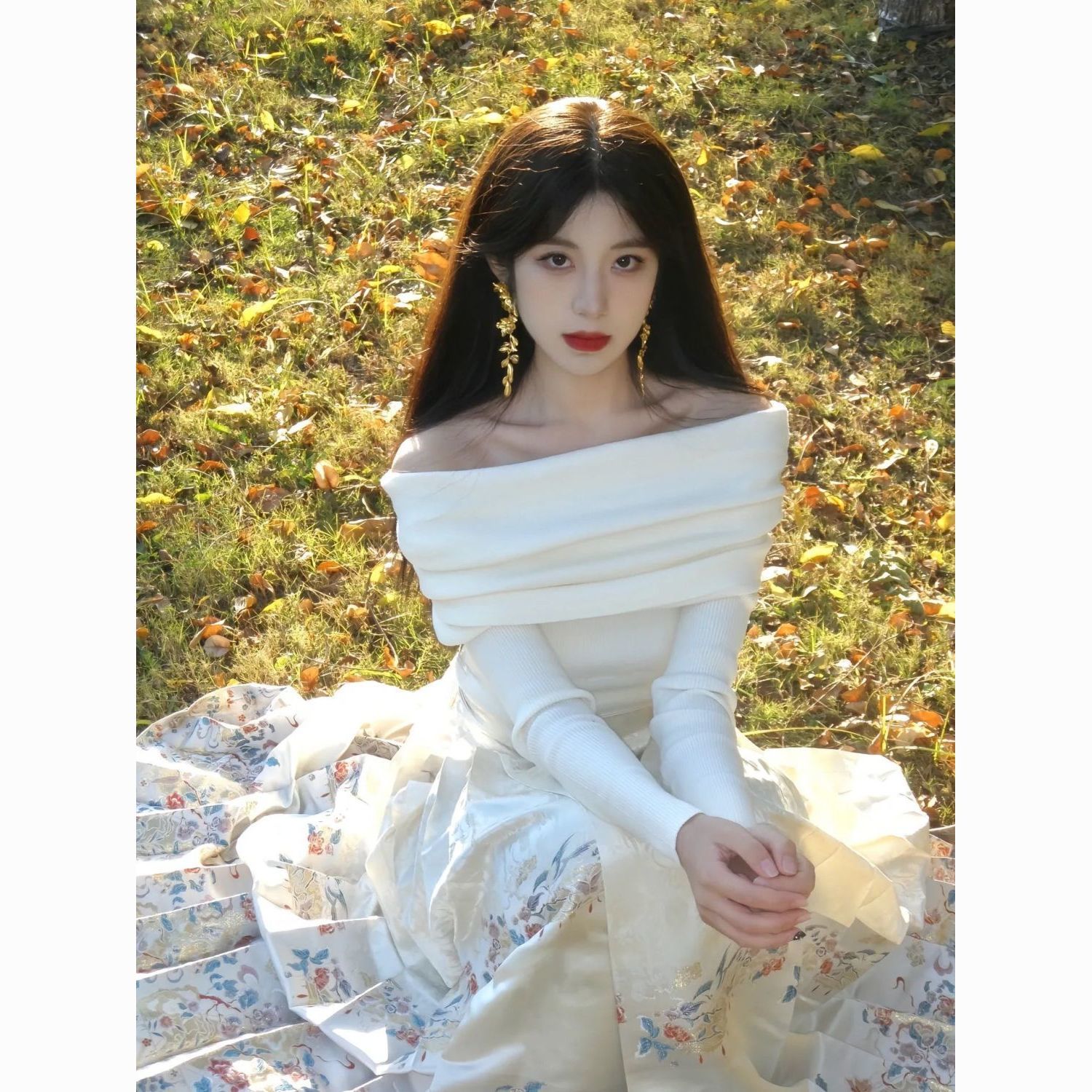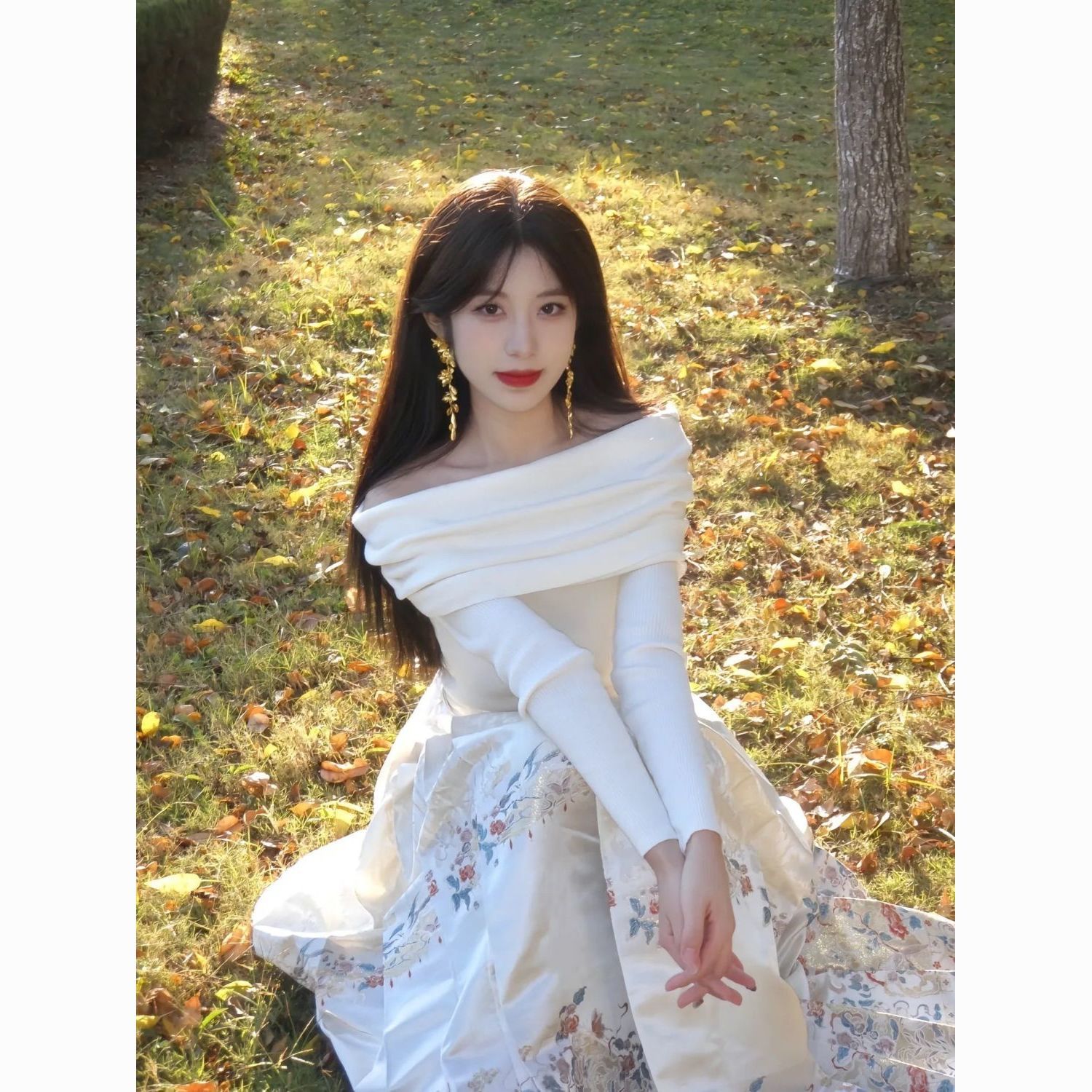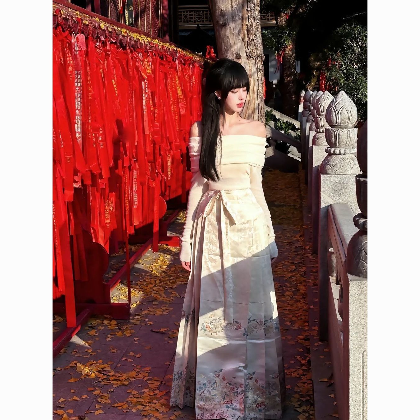新中式国风马面裙套装一字肩气质薄款日常改良优雅显瘦超仙秋冬款