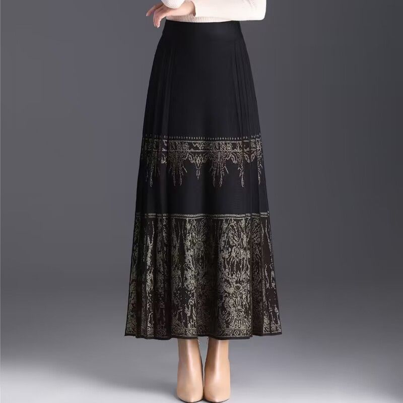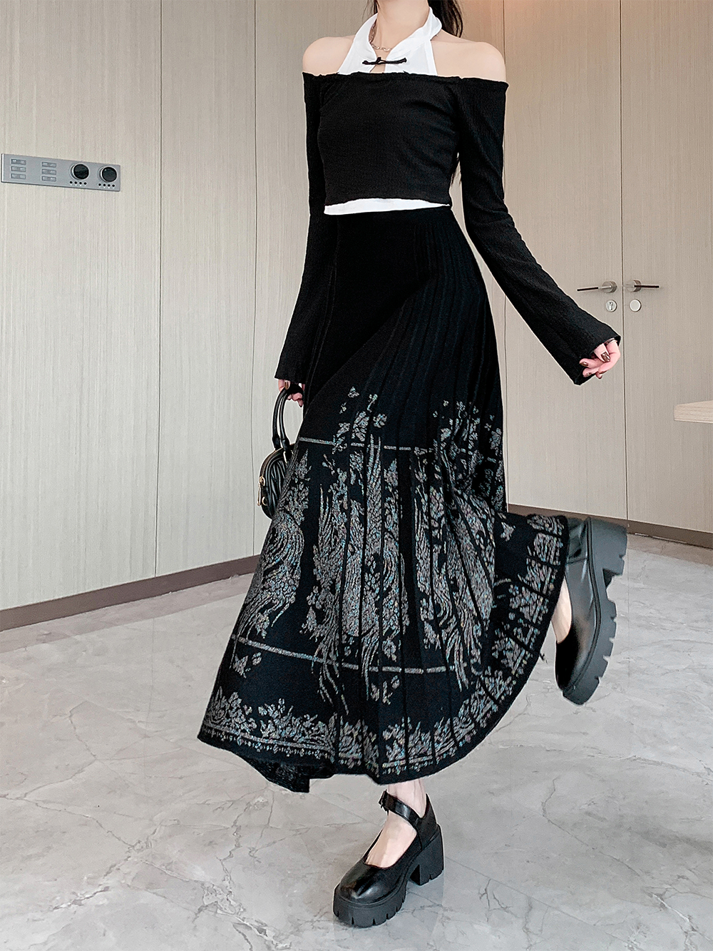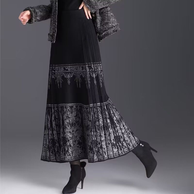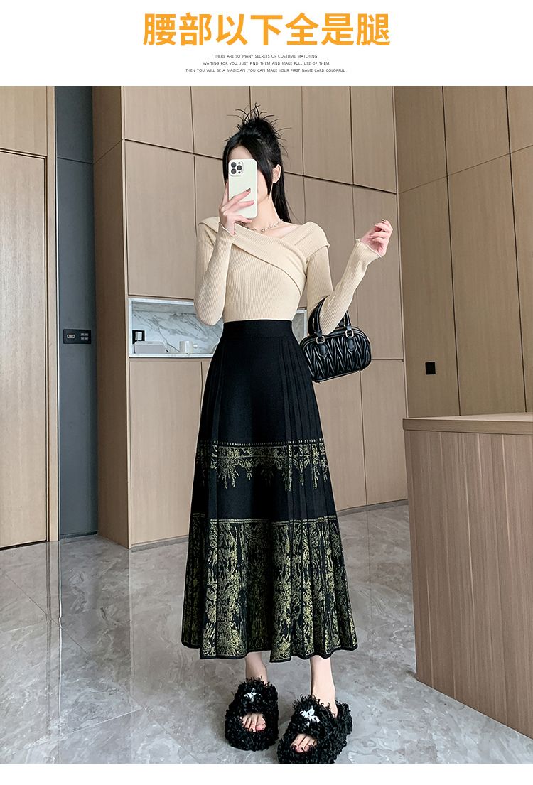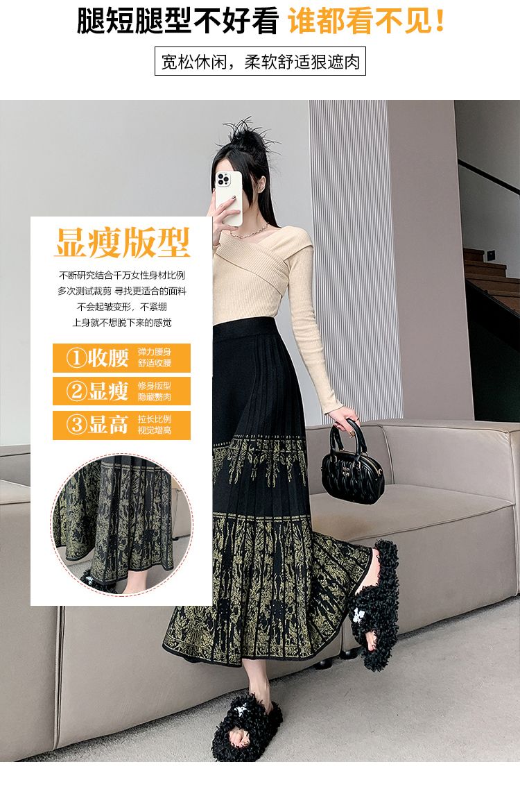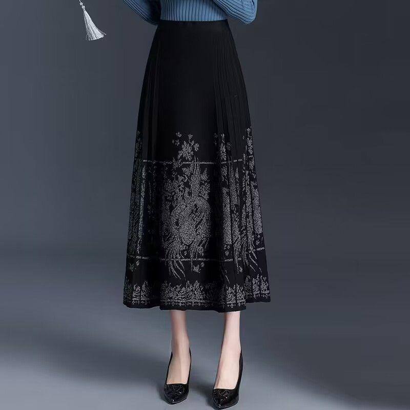 针织马面裙复古半身裙中式国风毛线裙秋冬新款中长款显瘦百褶裙春