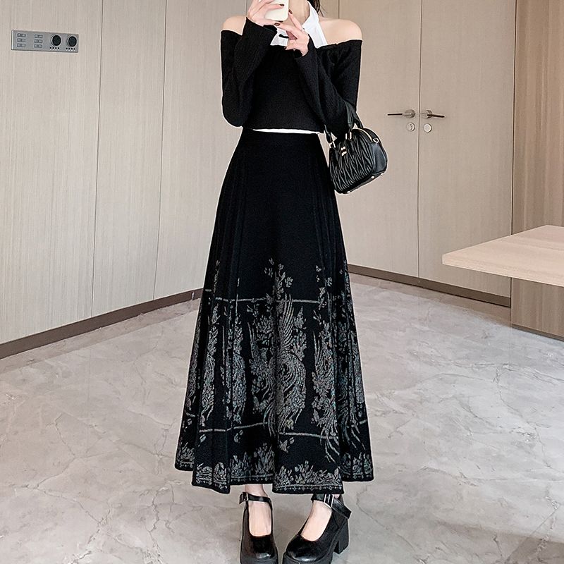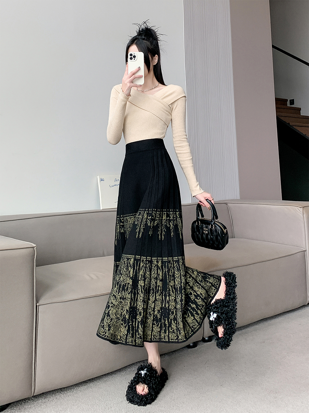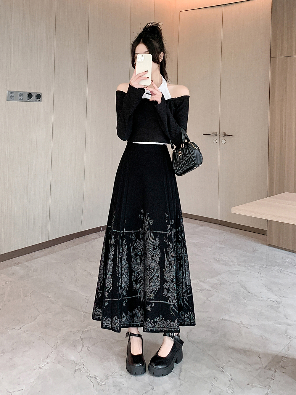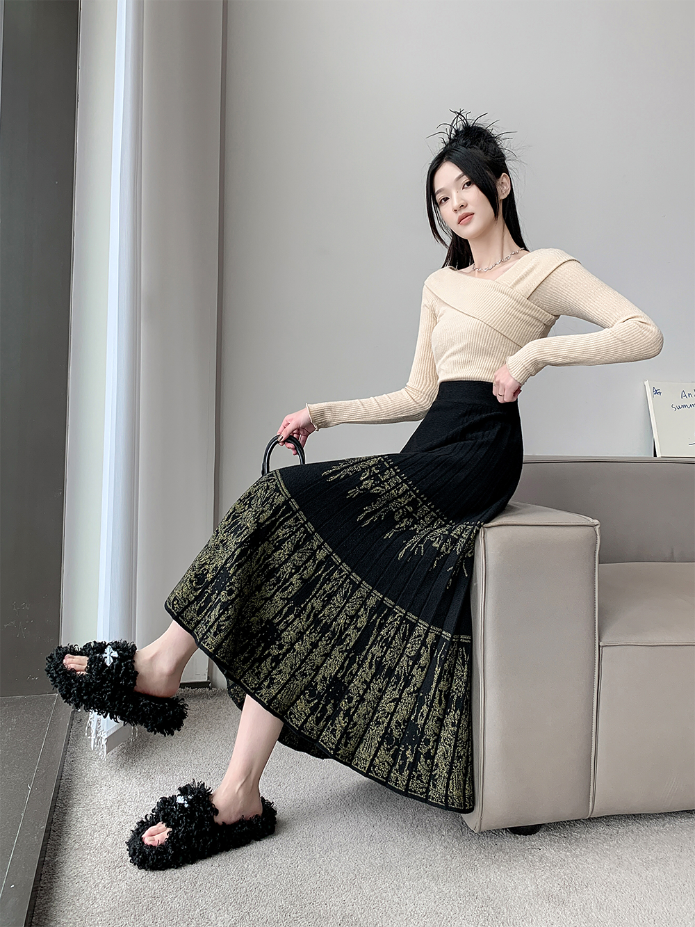 针织马面裙复古半身裙中式国风毛线裙秋冬新款中长款显瘦百褶裙春