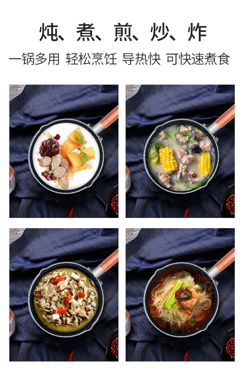 日式雪平锅宝宝辅食锅电磁炉燃气灶通用不粘锅宿舍泡面麦饭石奶锅