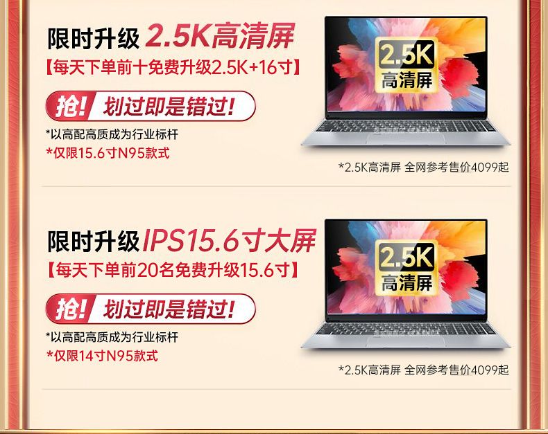 全新英特尔N95超薄笔记本电脑16英寸2.5K屏办公学生游戏手提电脑
