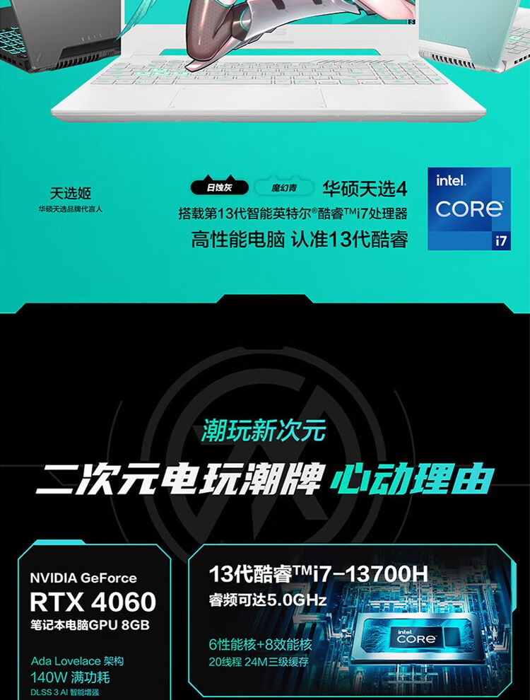 华硕天选5Pro酷睿13代高配4060游戏本笔记本电脑i7锐龙天选4天选3