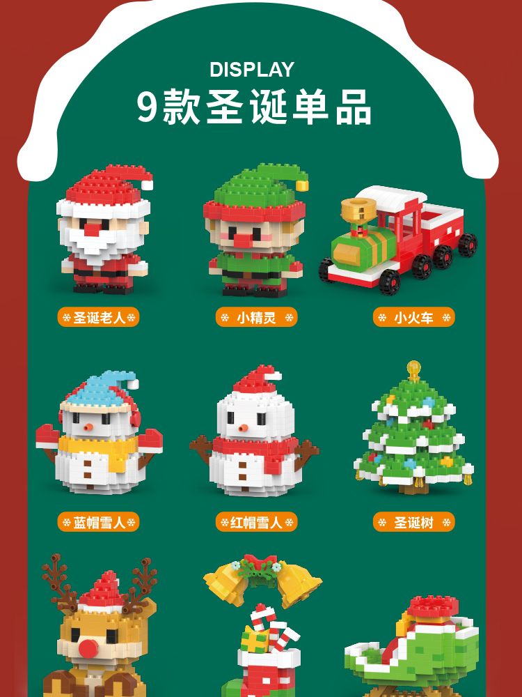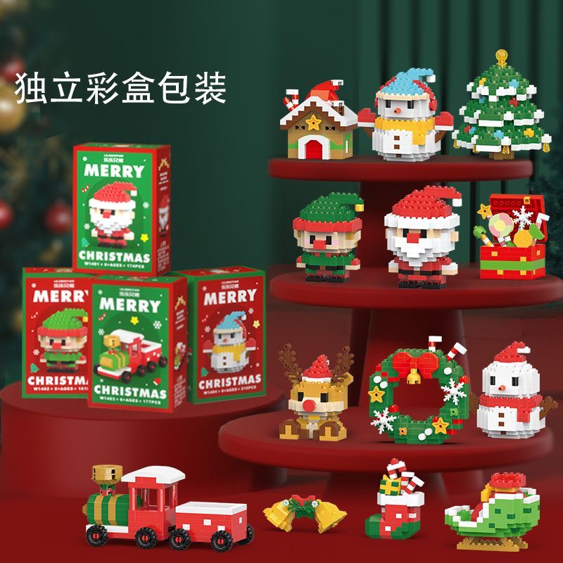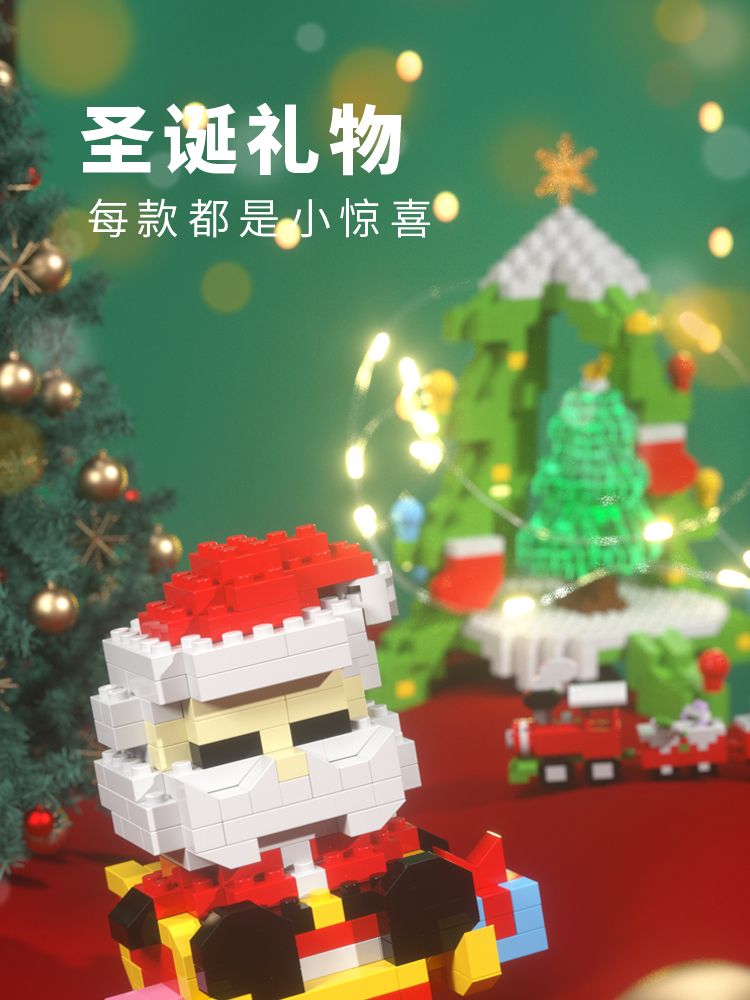 儿童微小颗粒积木男女孩圣诞节日礼物地摊礼品益智拼装玩具批发