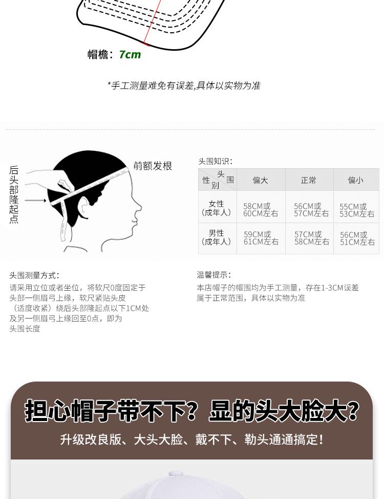 大头围帽子宽帽檐女男棒球帽鸭舌帽大脸遮阳夏季防晒硬顶太阳黑色