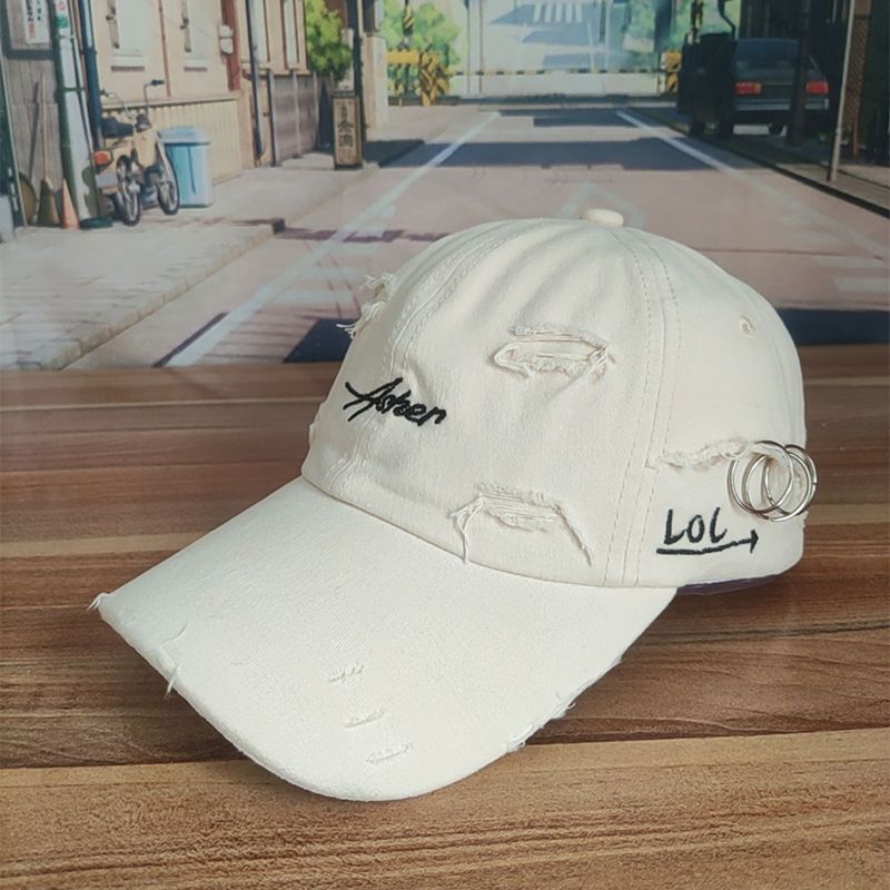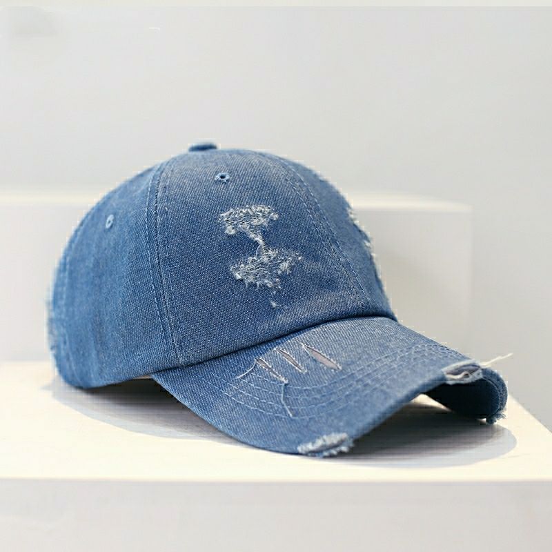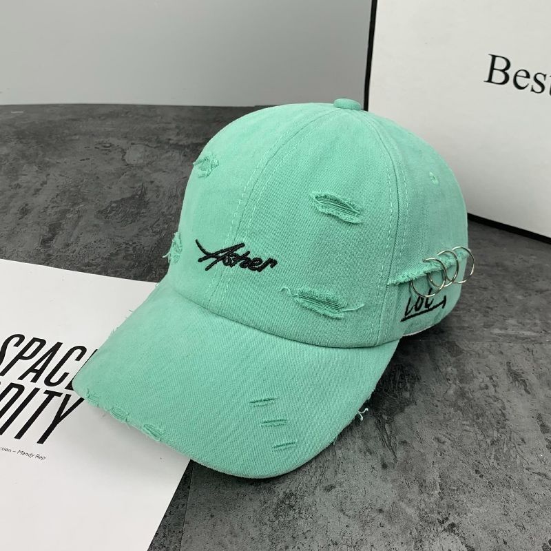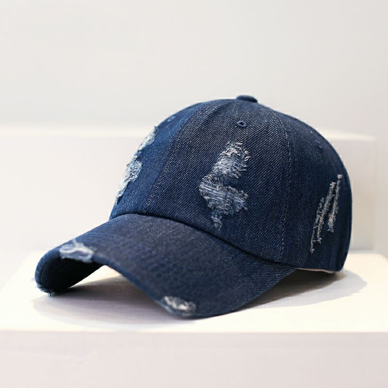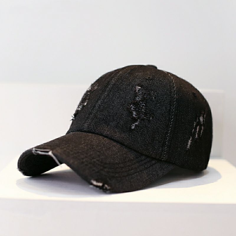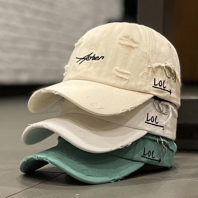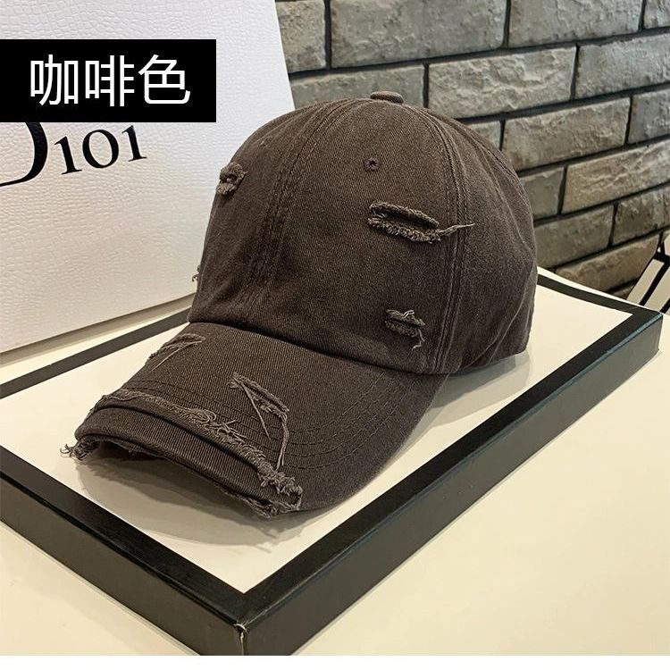 韩版ins复古破洞软顶鸭舌帽男女春夏时尚个性简约街头防晒棒球帽