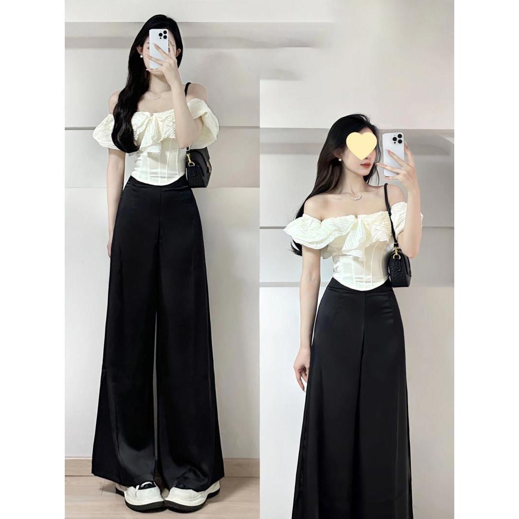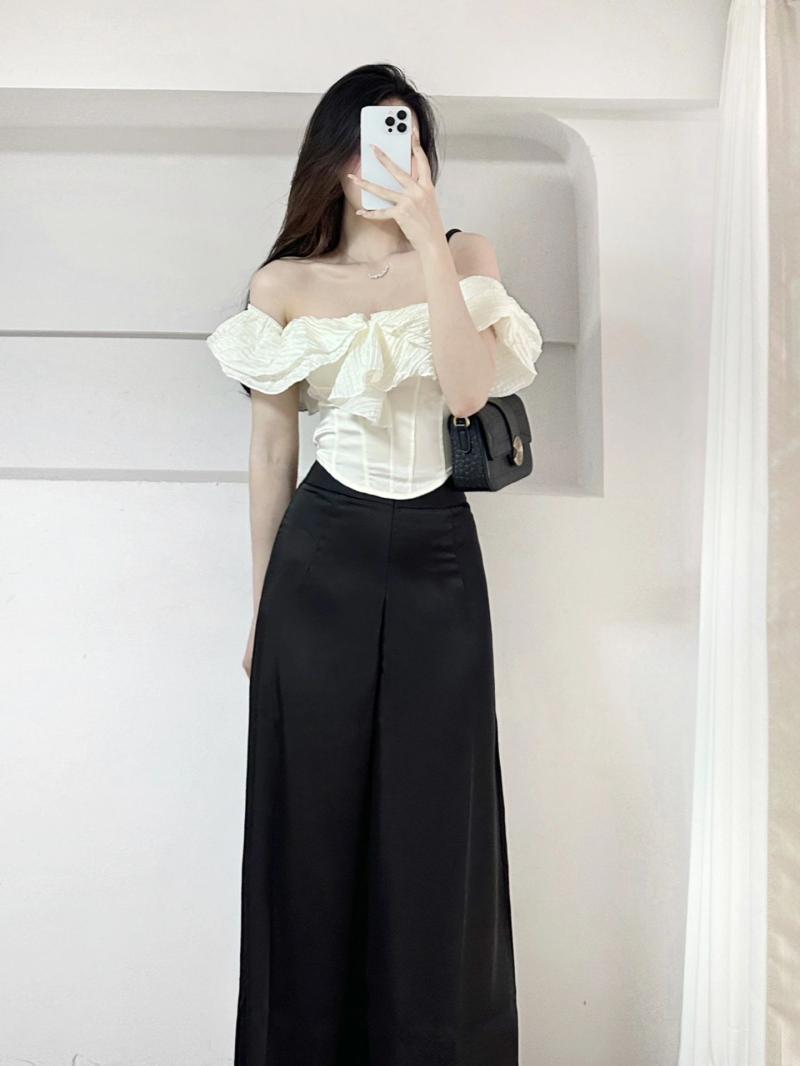 法式一字肩衬衫夏季荷叶边抹胸鱼骨设计感小众气质甜美露肩一字领