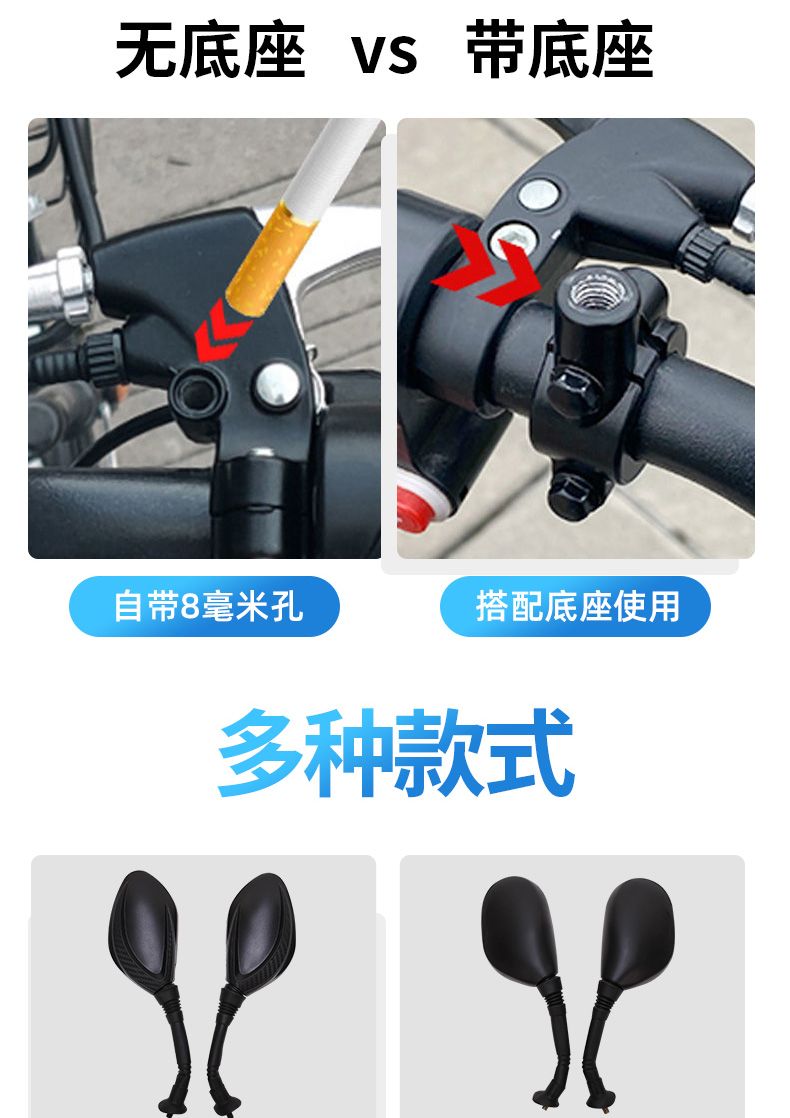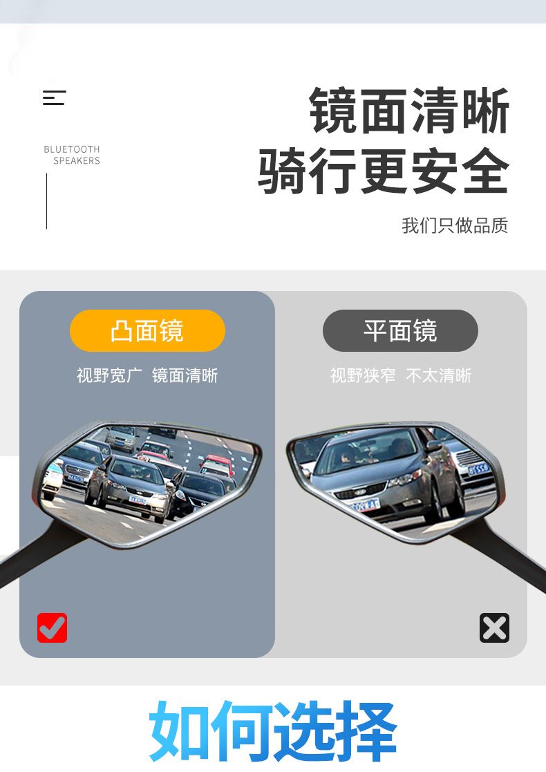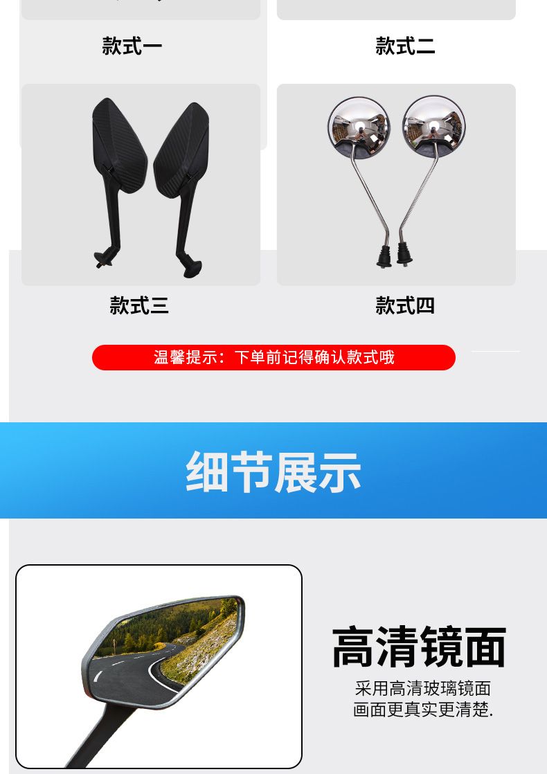 电瓶车反光镜改装电动车后视镜大视野超大通用踏板车高清倒车镜