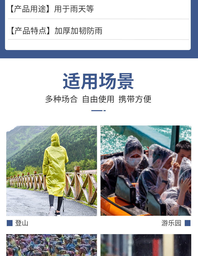 一次性便携式加厚PE成人男女专用雨衣户外旅行一体雨披大厂家批发