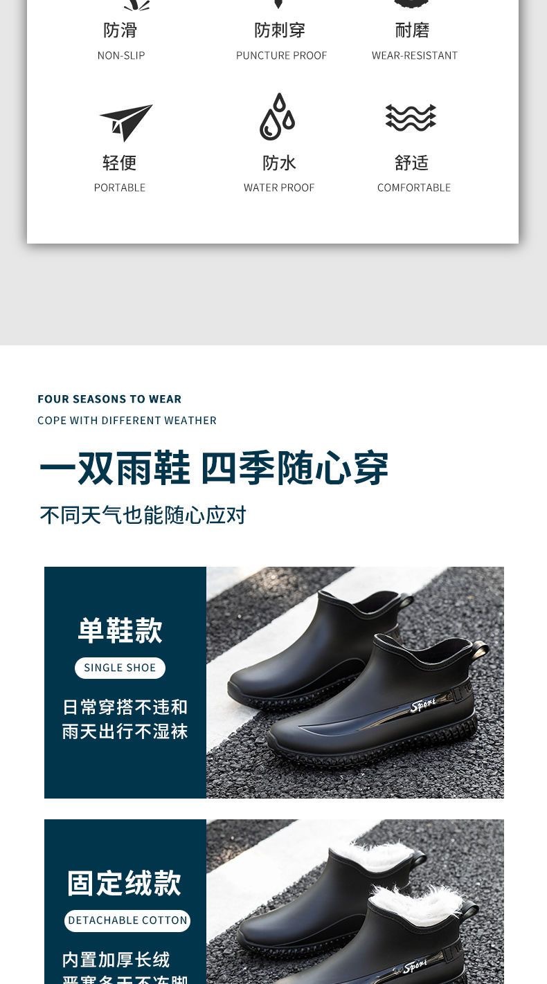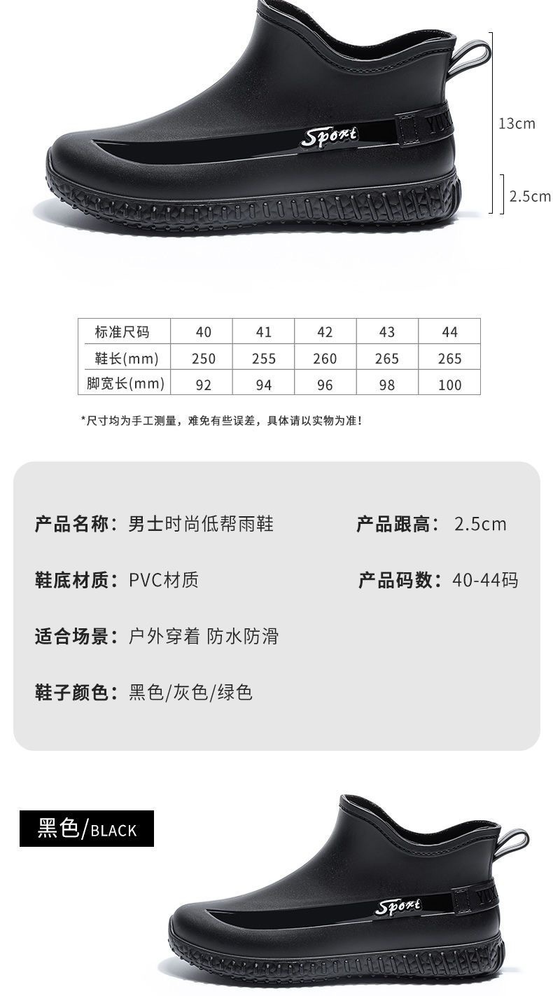 时尚短筒雨鞋男四季工作鞋低帮防滑厨房鞋耐磨胶鞋钓鱼鞋防水鞋