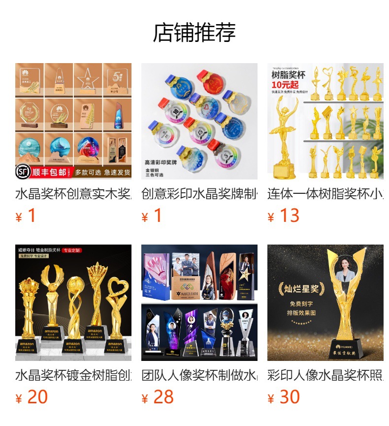 新款水晶奖杯奖牌小金人树脂奖杯定制金属篮球足球创意木质授权牌