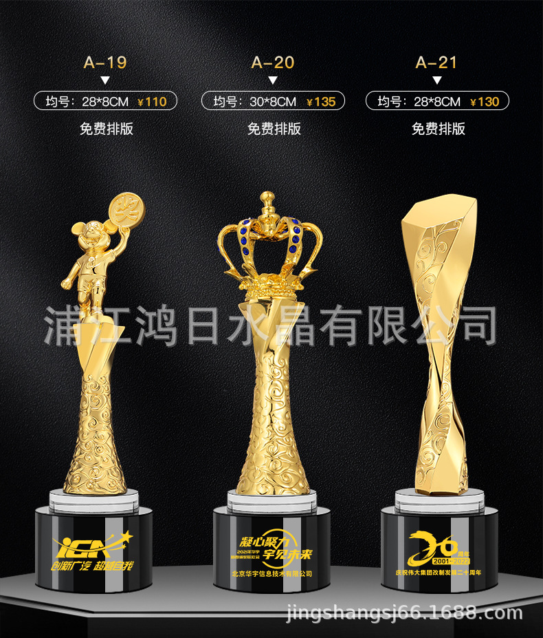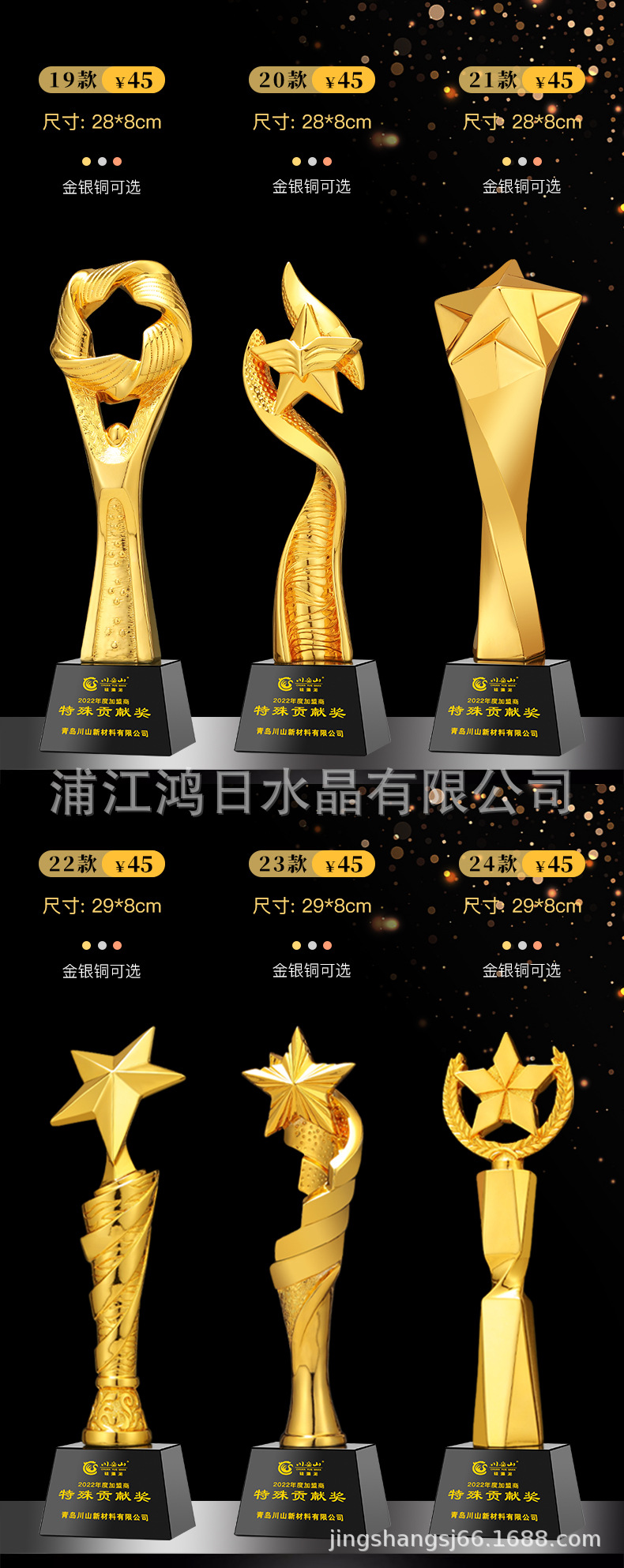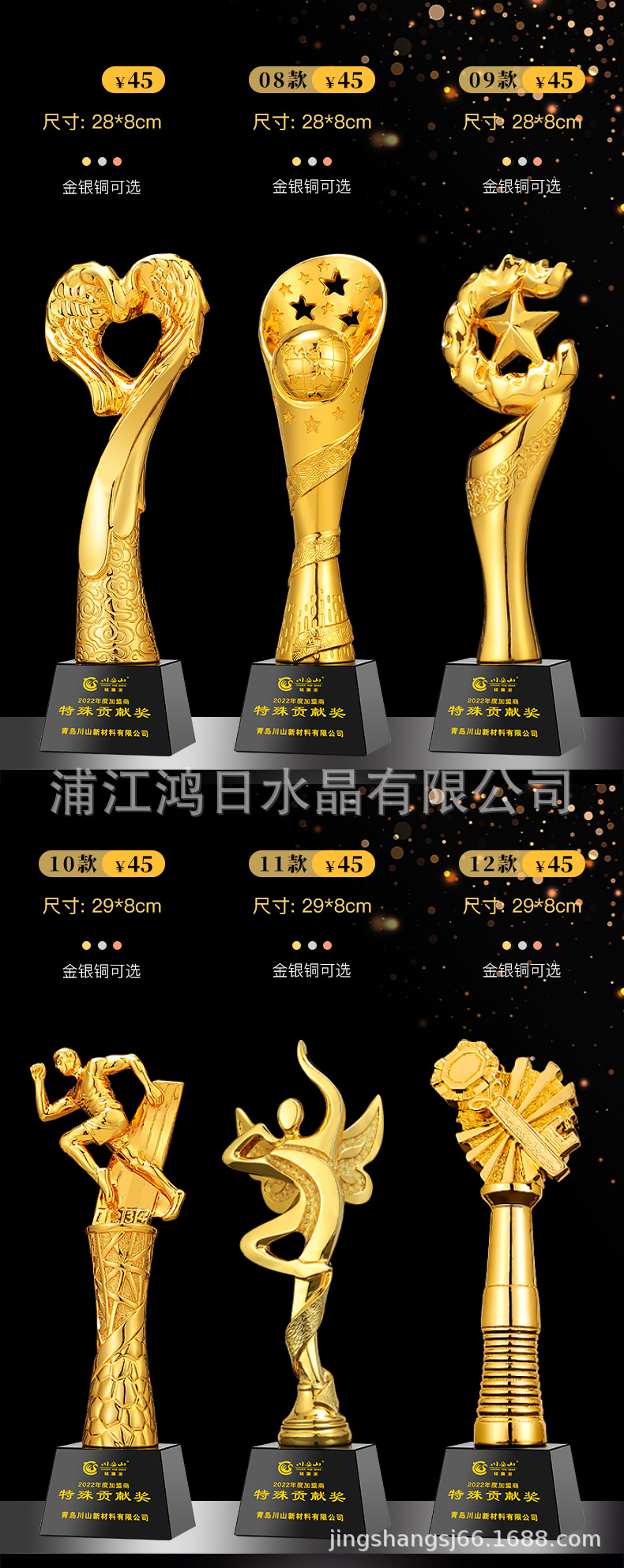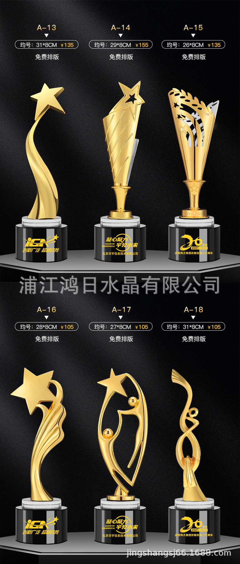 水晶奖杯儿童比赛奖杯创意年会优秀员工颁奖活动比赛金属树脂奖杯