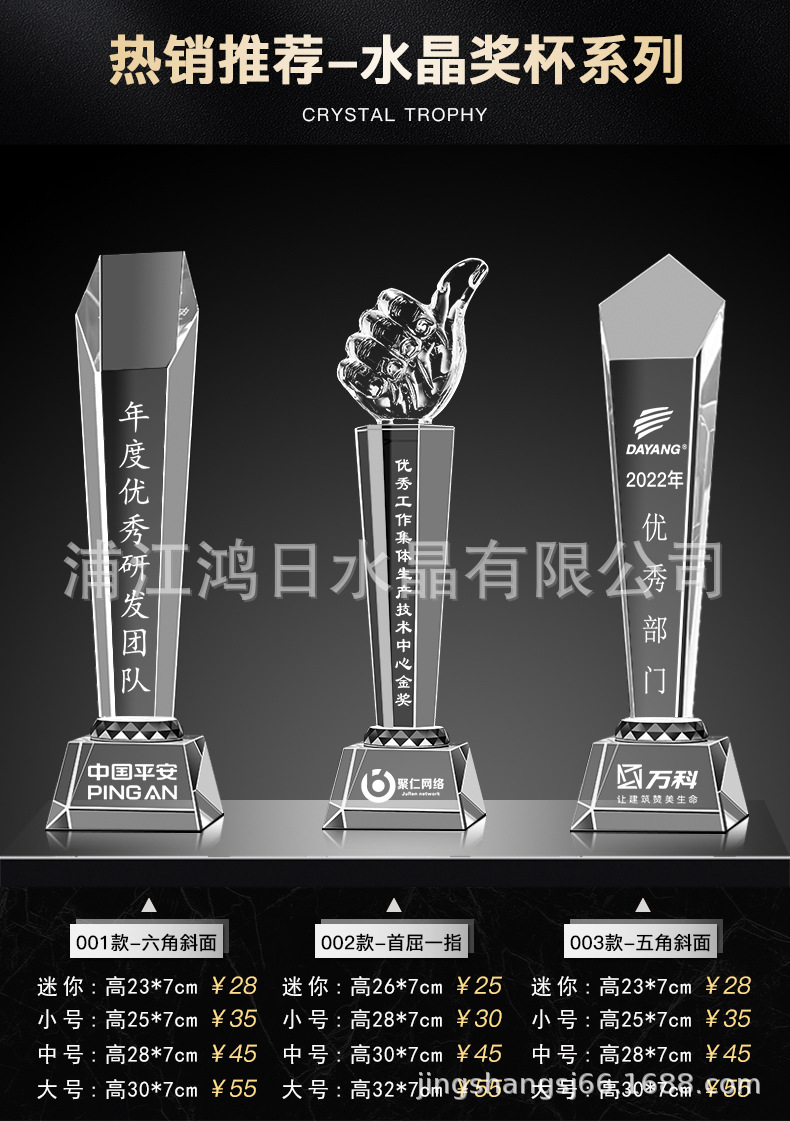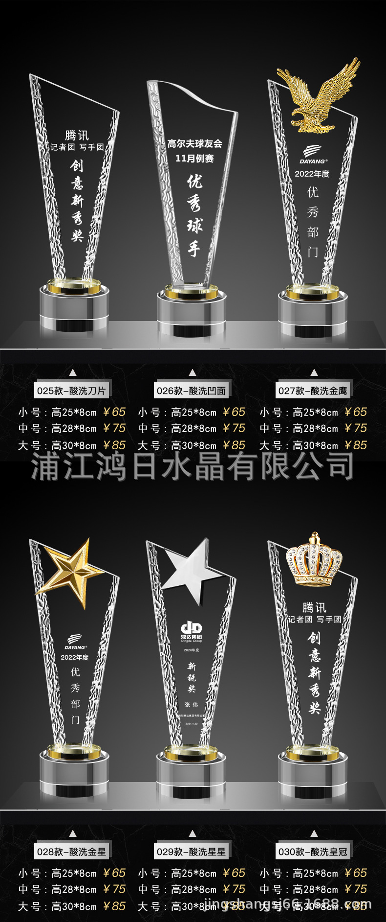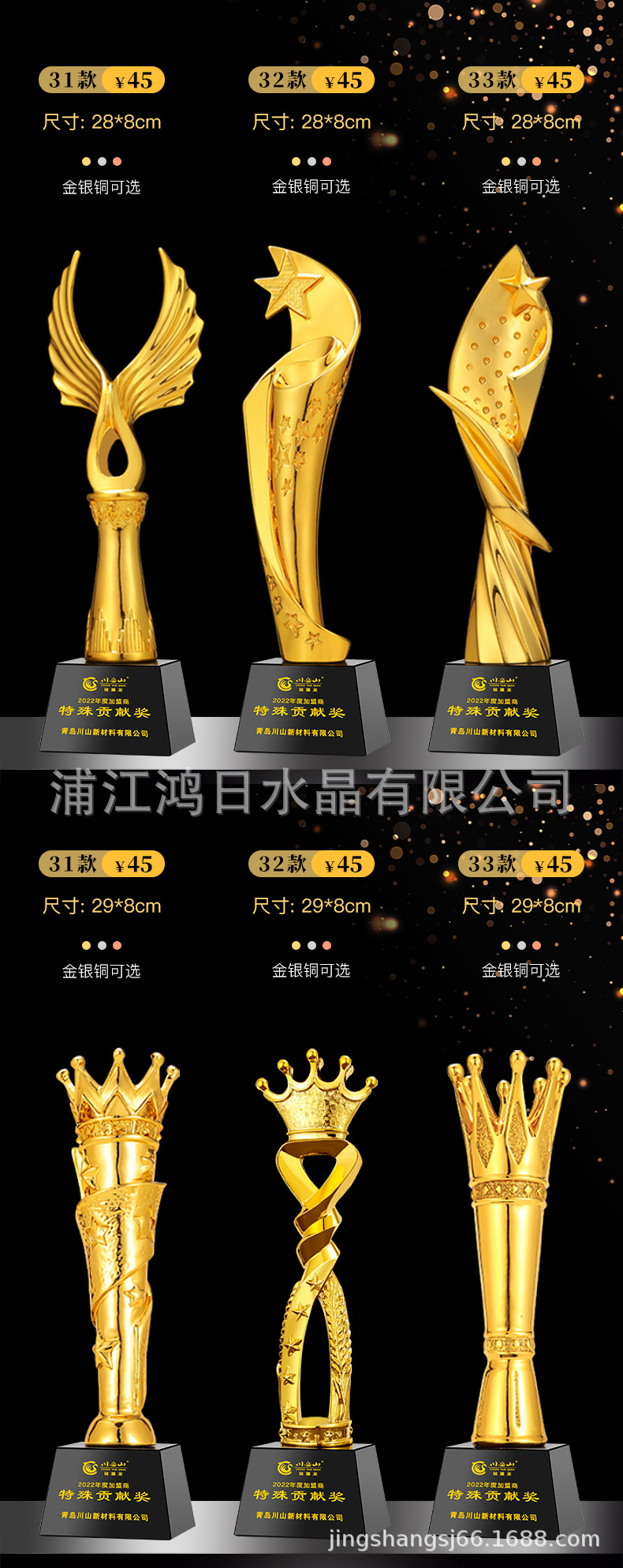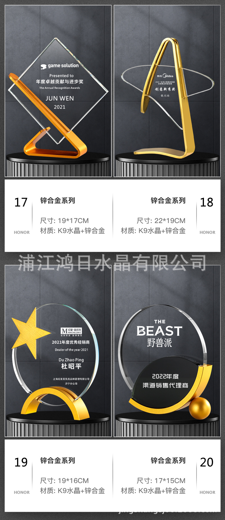 水晶奖杯儿童比赛奖杯创意年会优秀员工颁奖活动比赛金属树脂奖杯