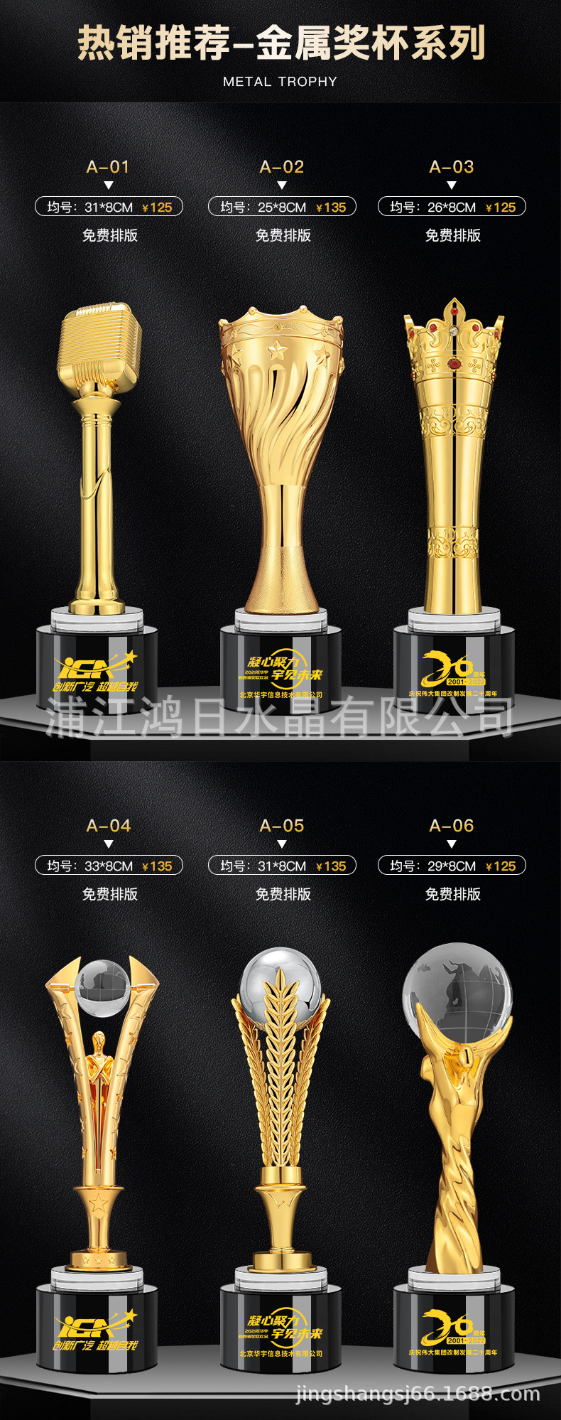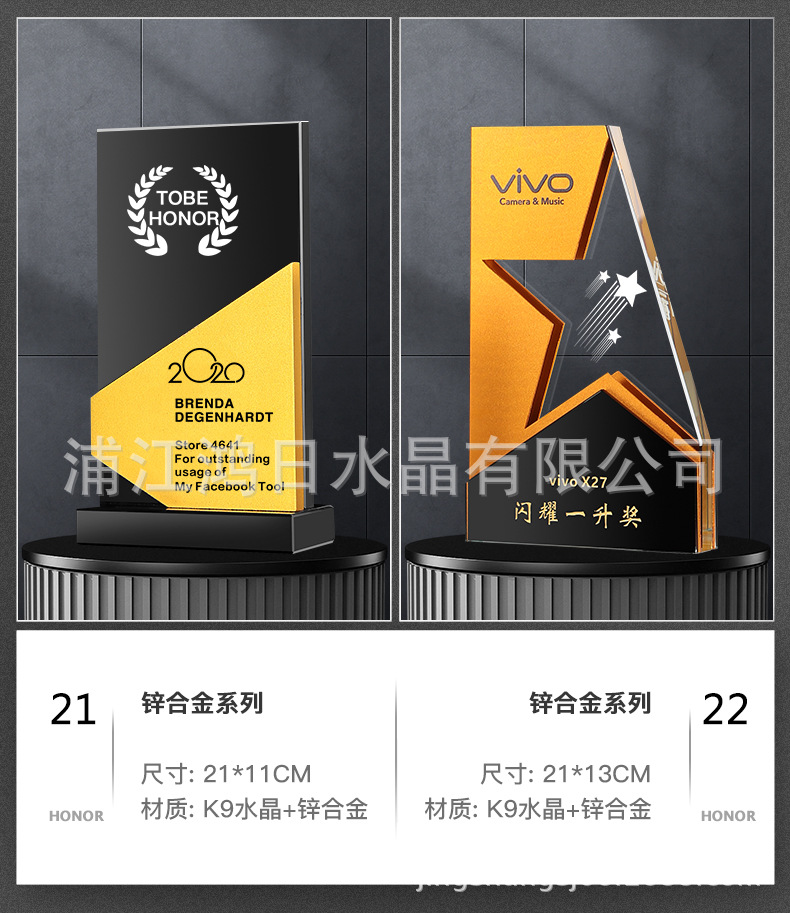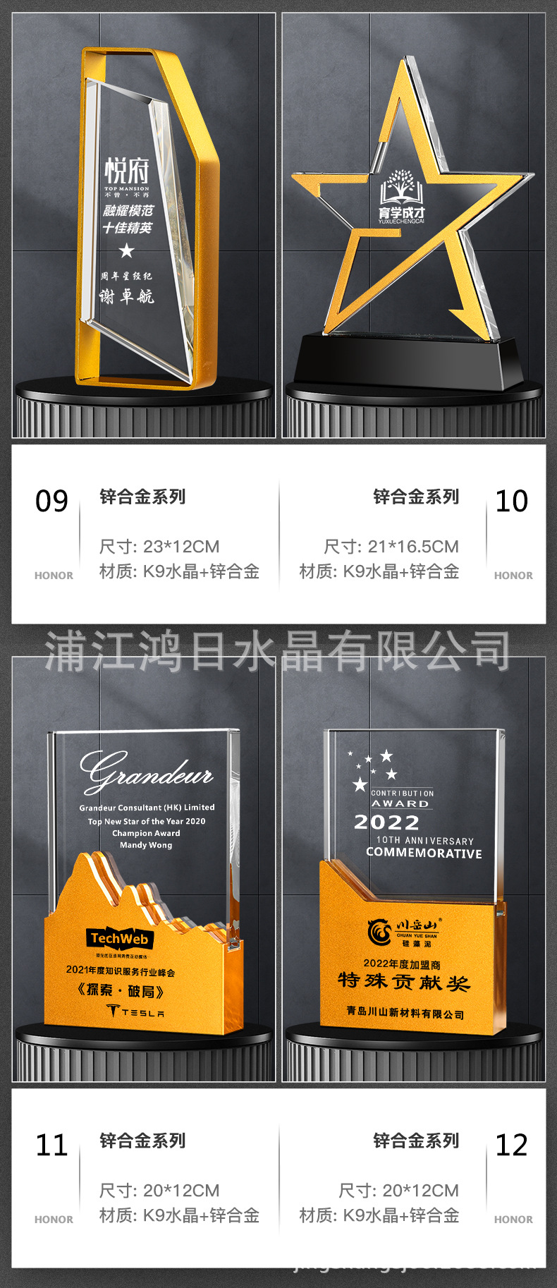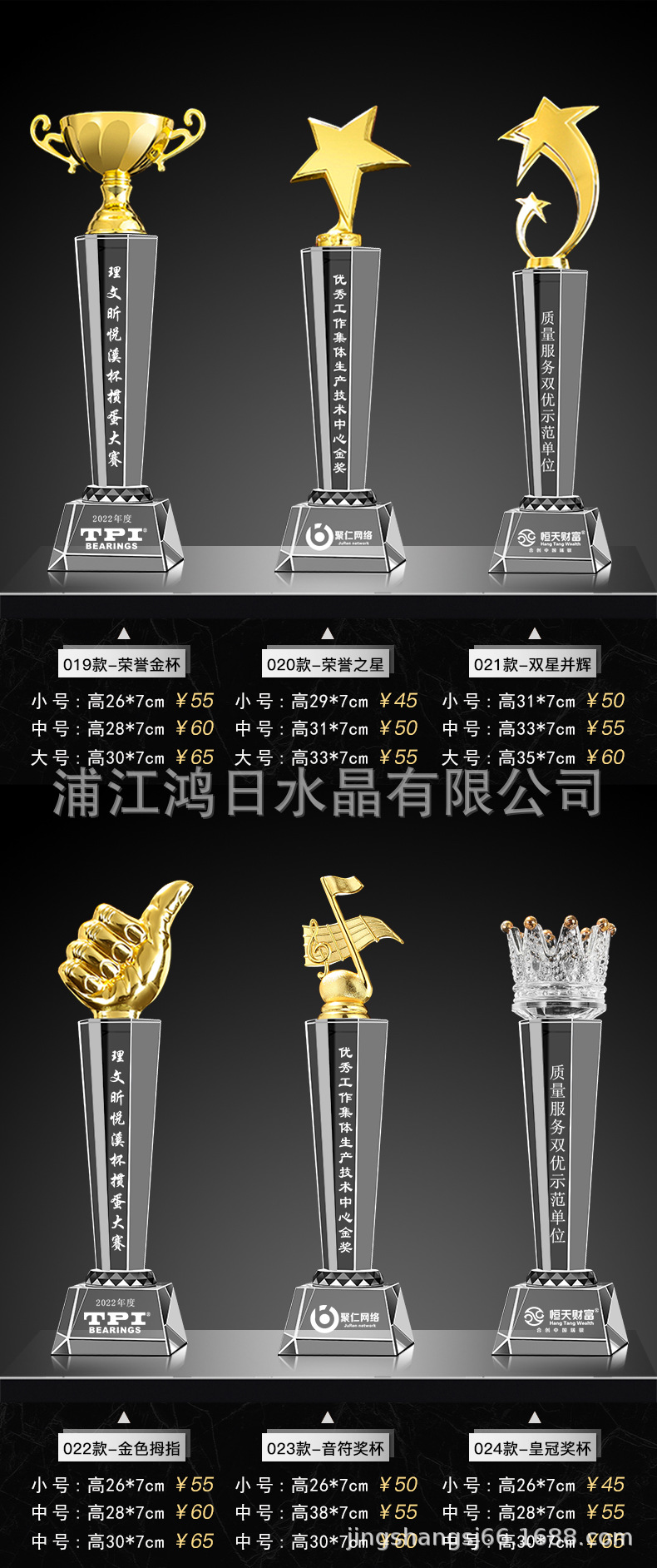 水晶奖杯儿童比赛奖杯创意年会优秀员工颁奖活动比赛金属树脂奖杯