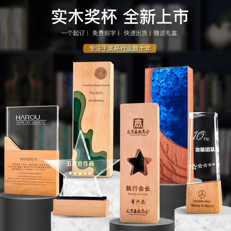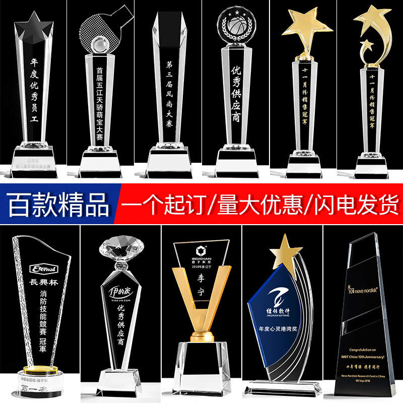 创意五角星水晶奖杯百款定做企业团队活动赛事颁奖纪念奖牌定制