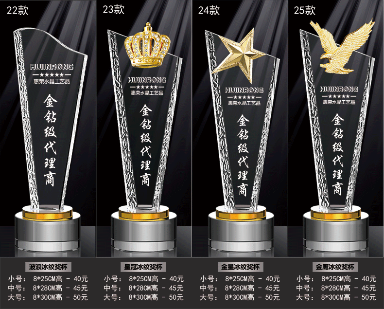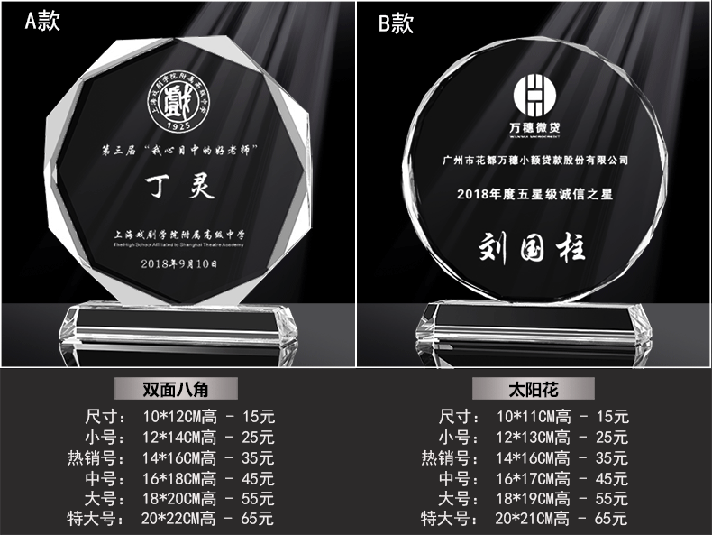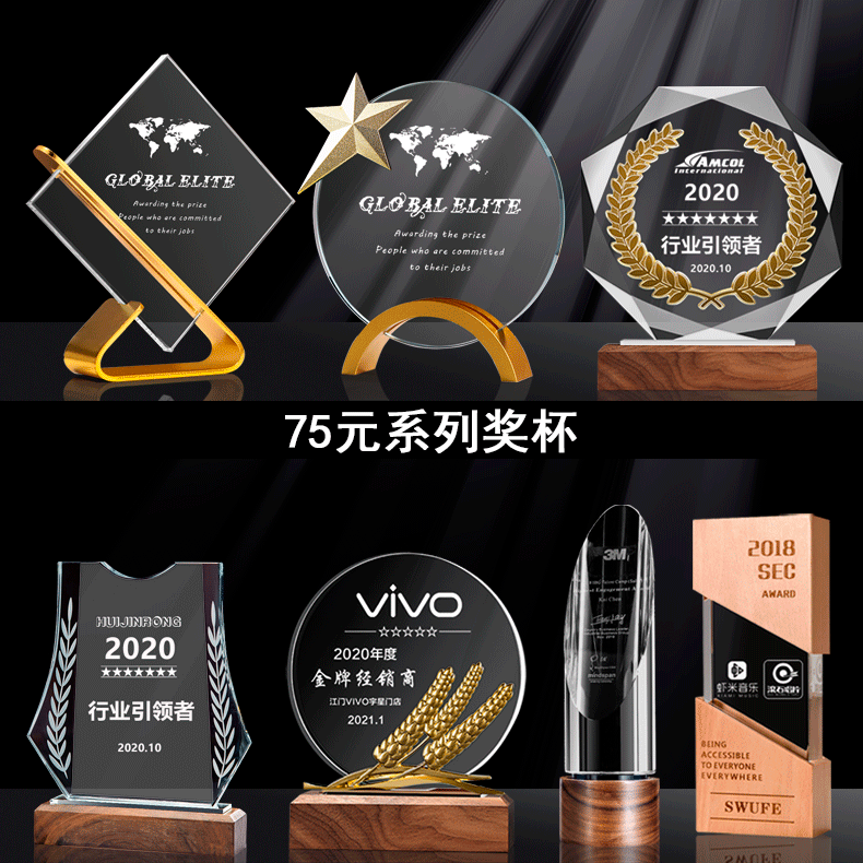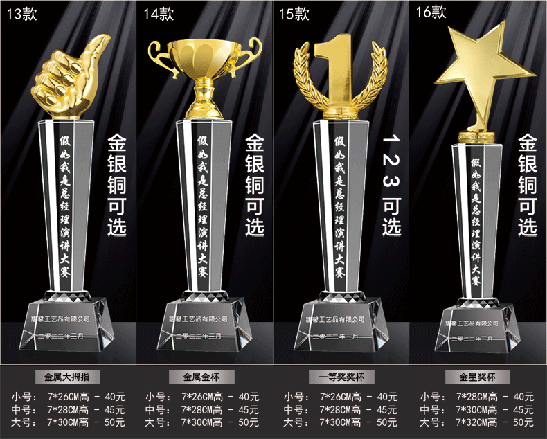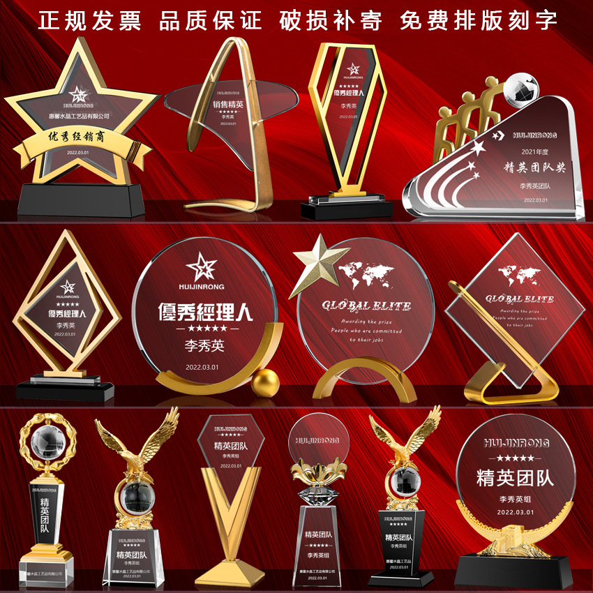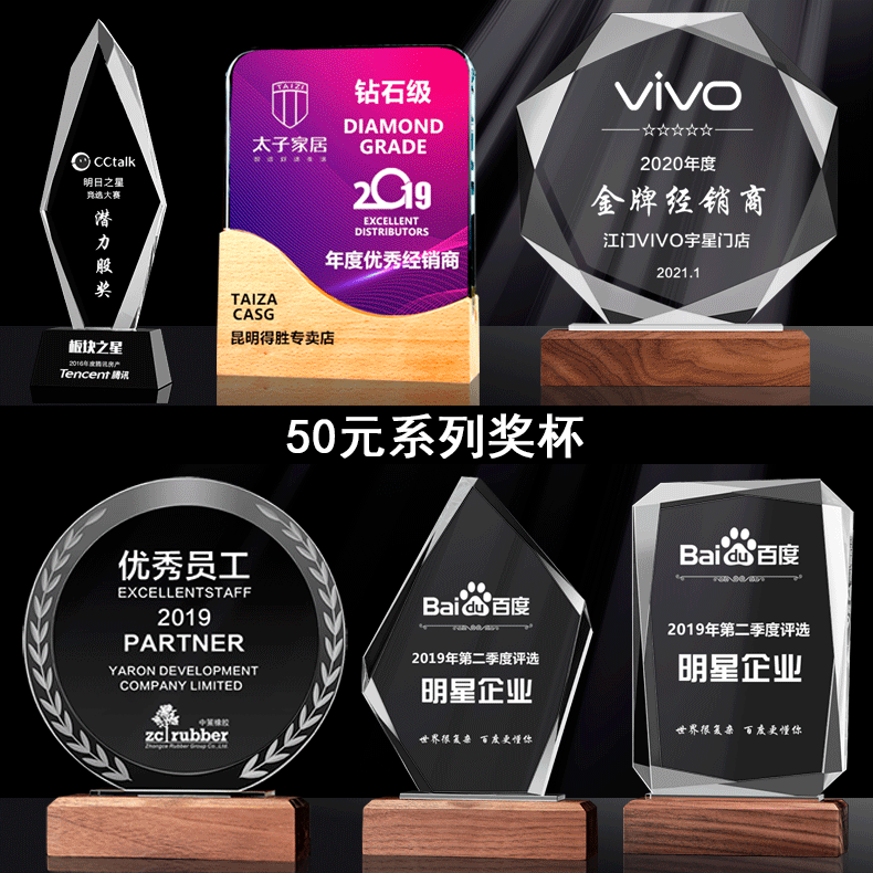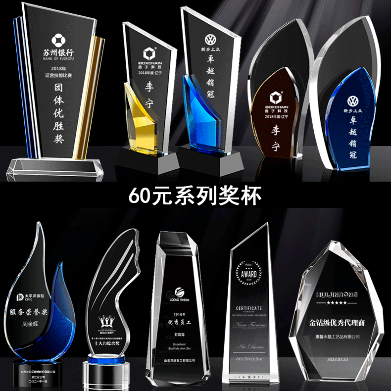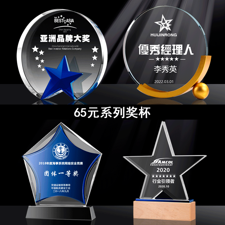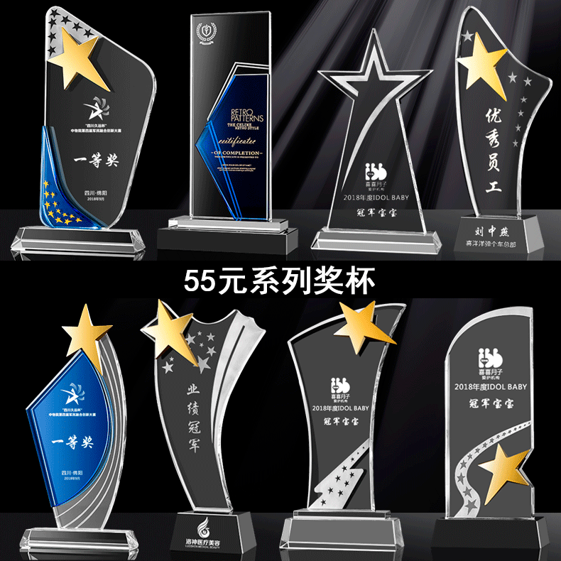水晶奖杯彩印创意员工公司年会大拇指五角星爱心儿童树脂纪念奖杯