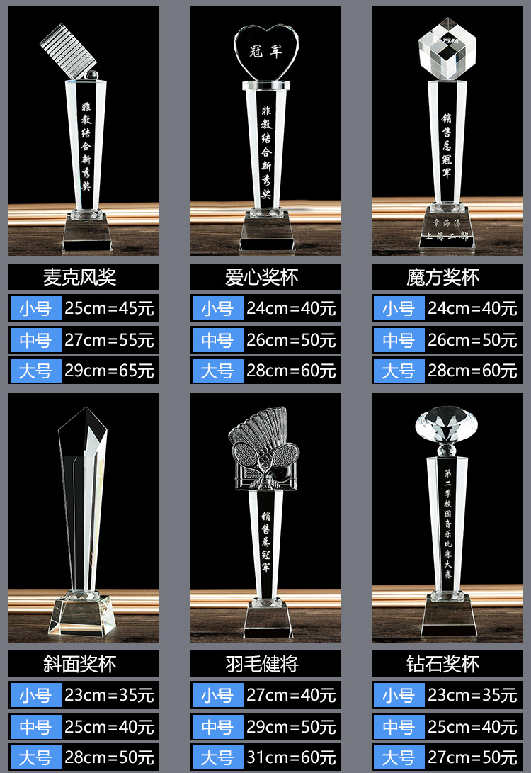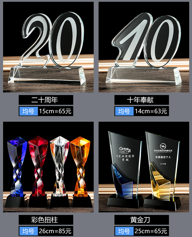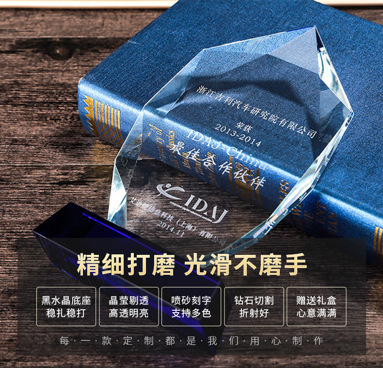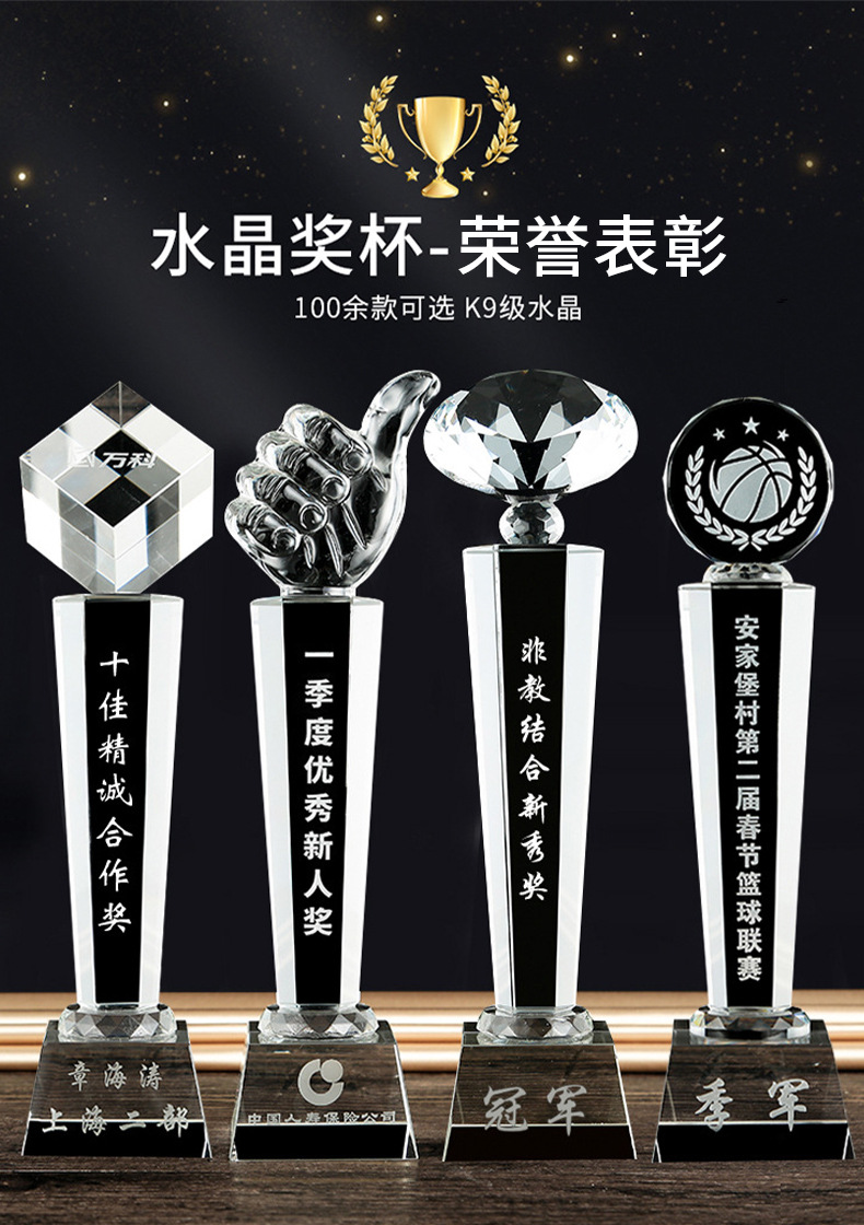 周年庆活动水晶奖杯公司优秀员工纪念品退休教师水晶工艺品摆件