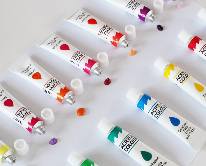 厂家直销 12ml单支丙烯水粉水彩颜料 12支24支软管颜料铝塑管颜料