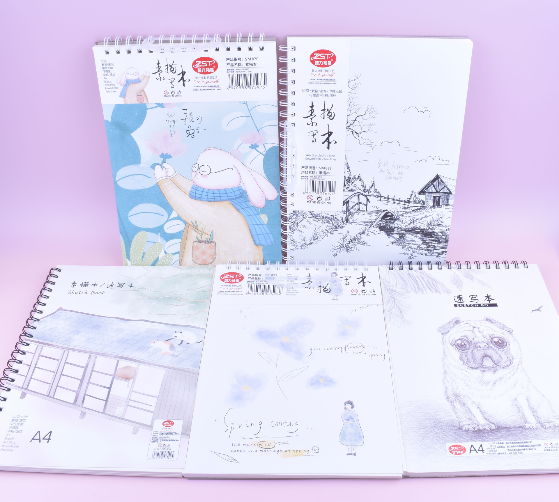 A4加厚素描本带手提学生儿童专用空白绘画本A4 50张速写本美术生