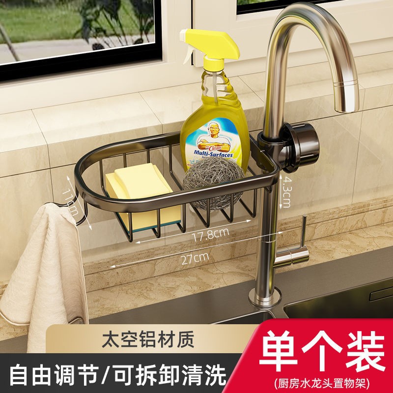 厨房收纳架水龙头置物架太空铝家用水池海绵沥水挂篮水槽收纳神器