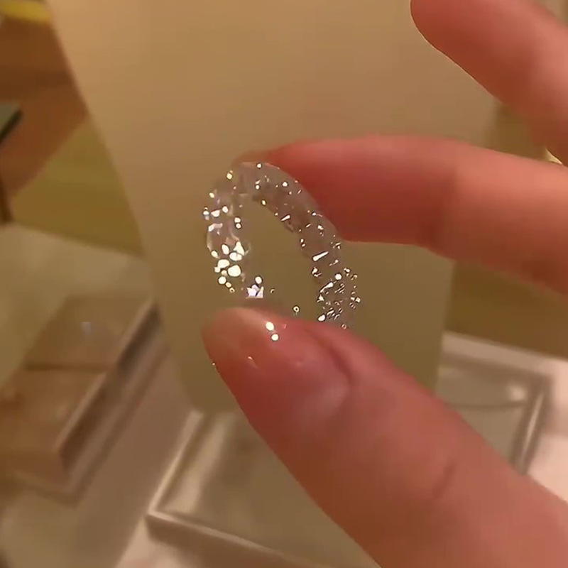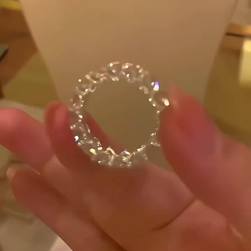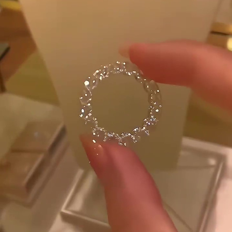 S925纯银满钻排戒莫桑钻戒指女小众设计情侣指环尾戒