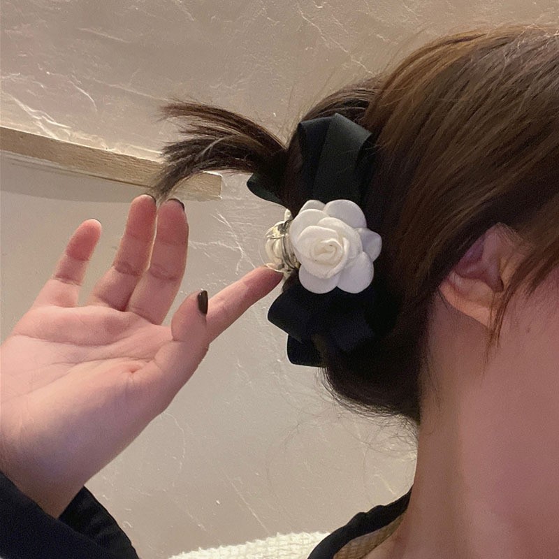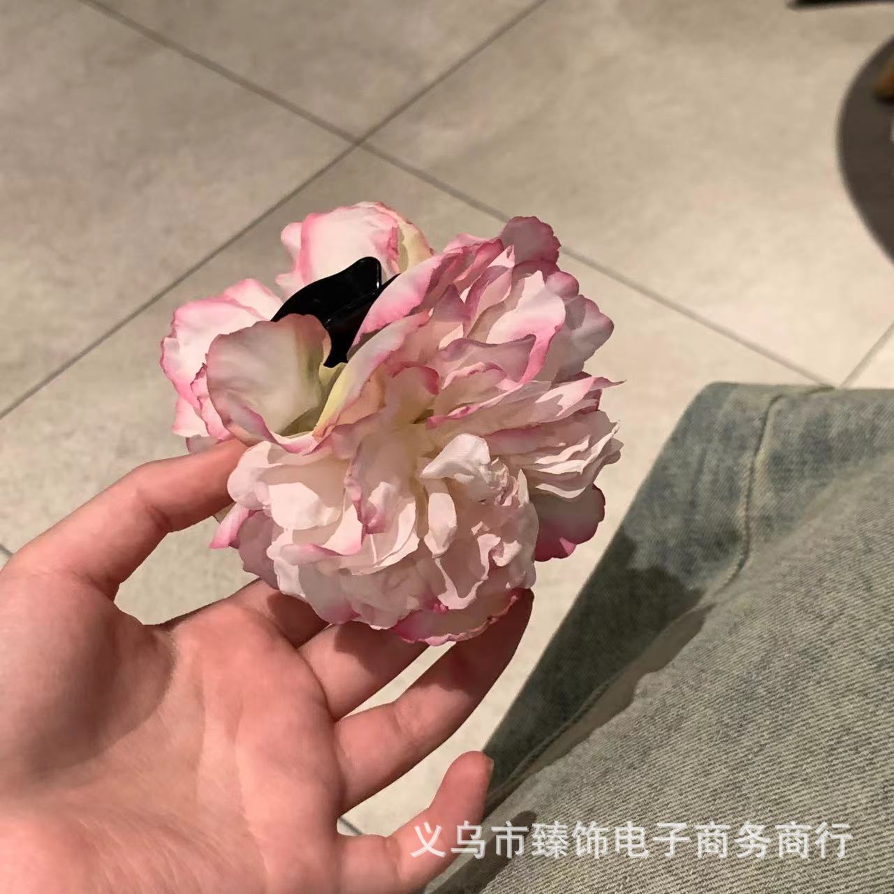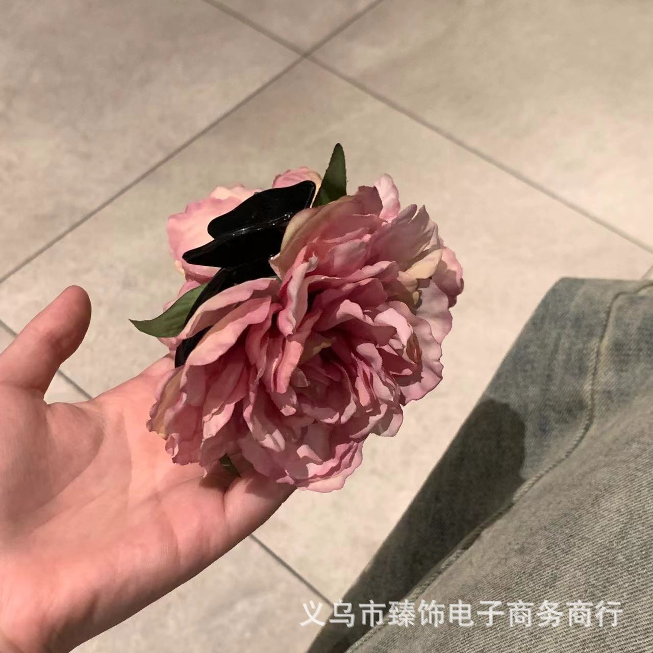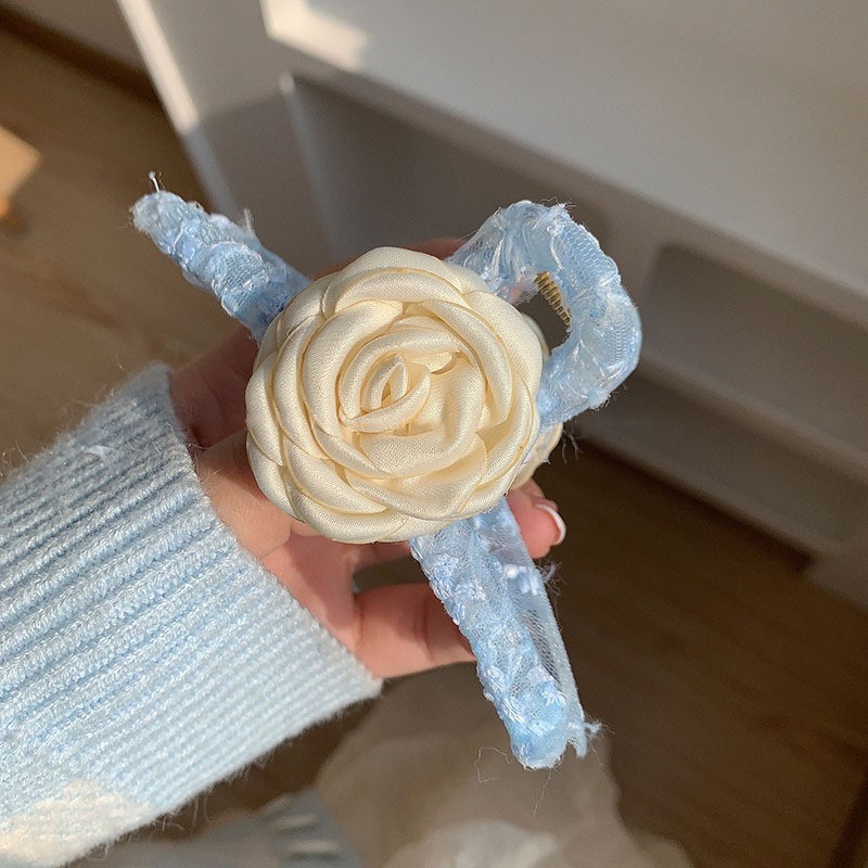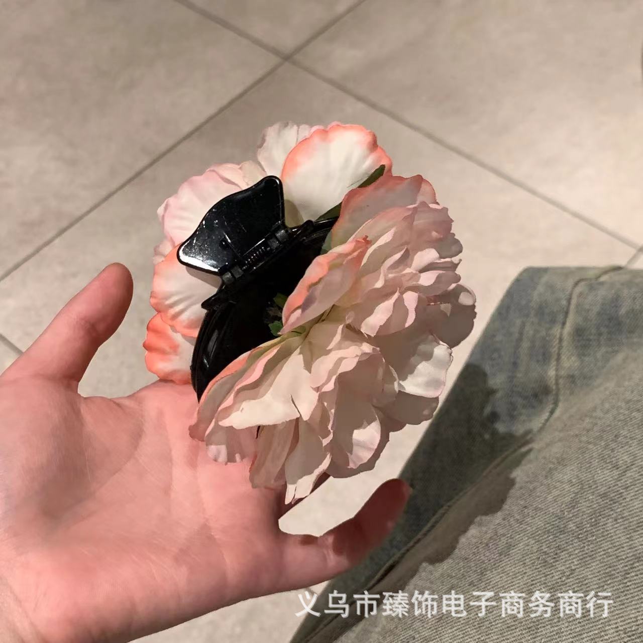 韩版新款文艺气质古风气质网纱花朵抓夹发夹法式后脑勺女发抓头饰