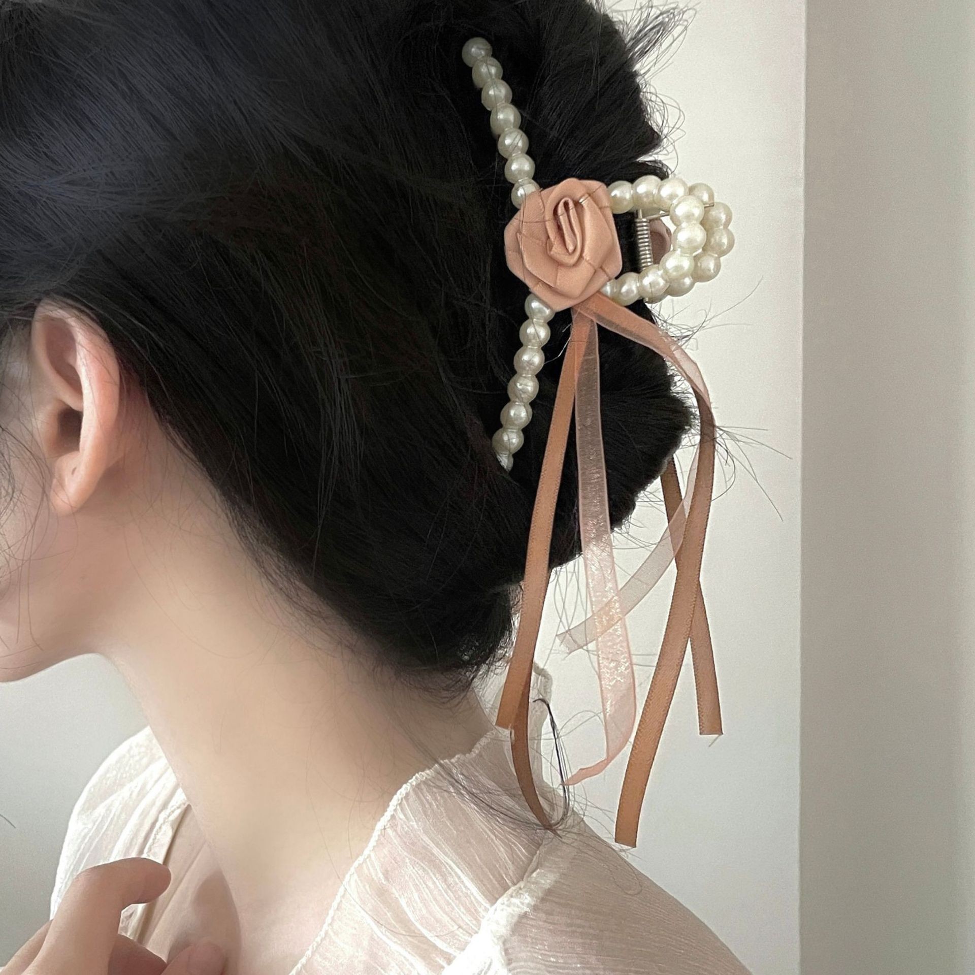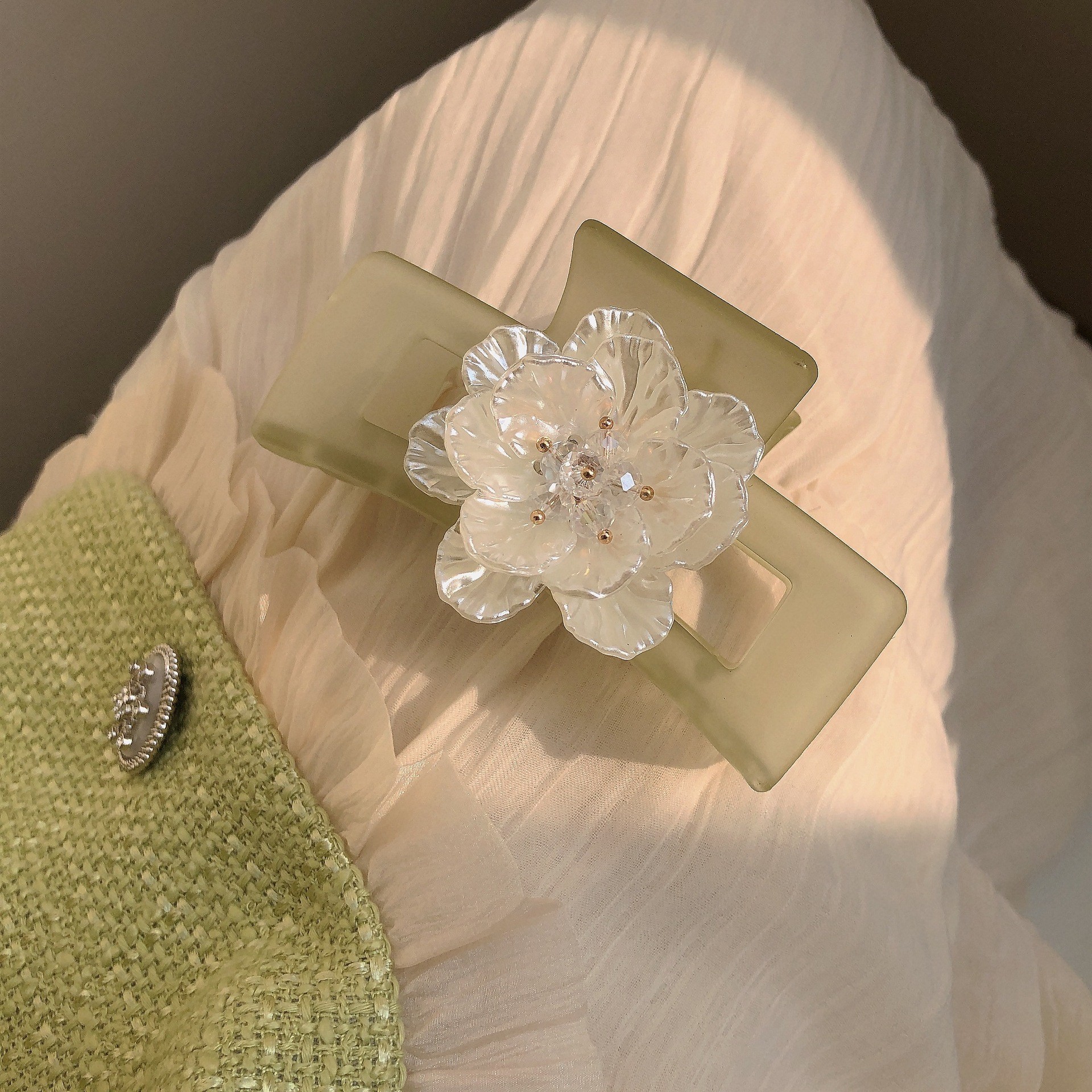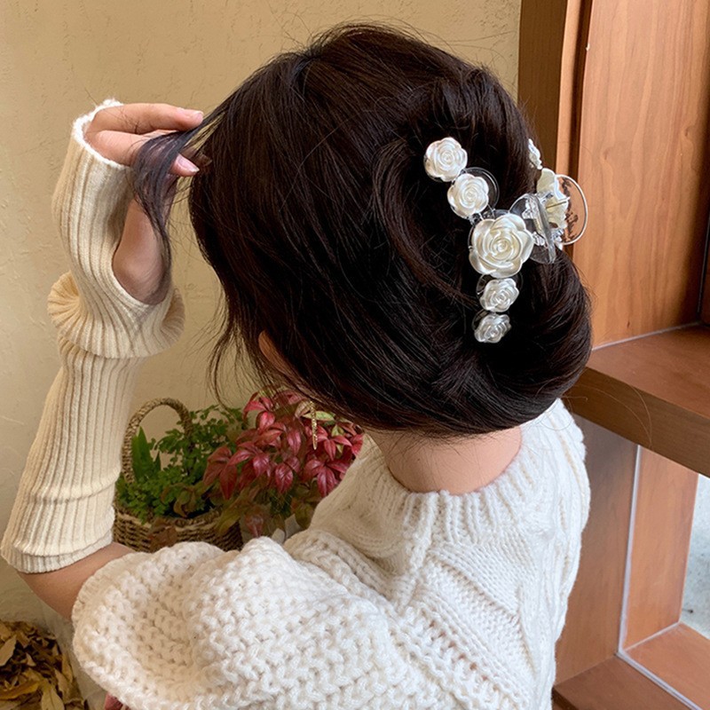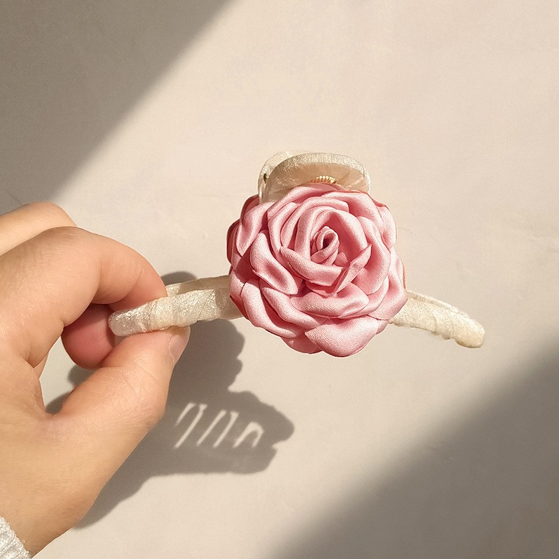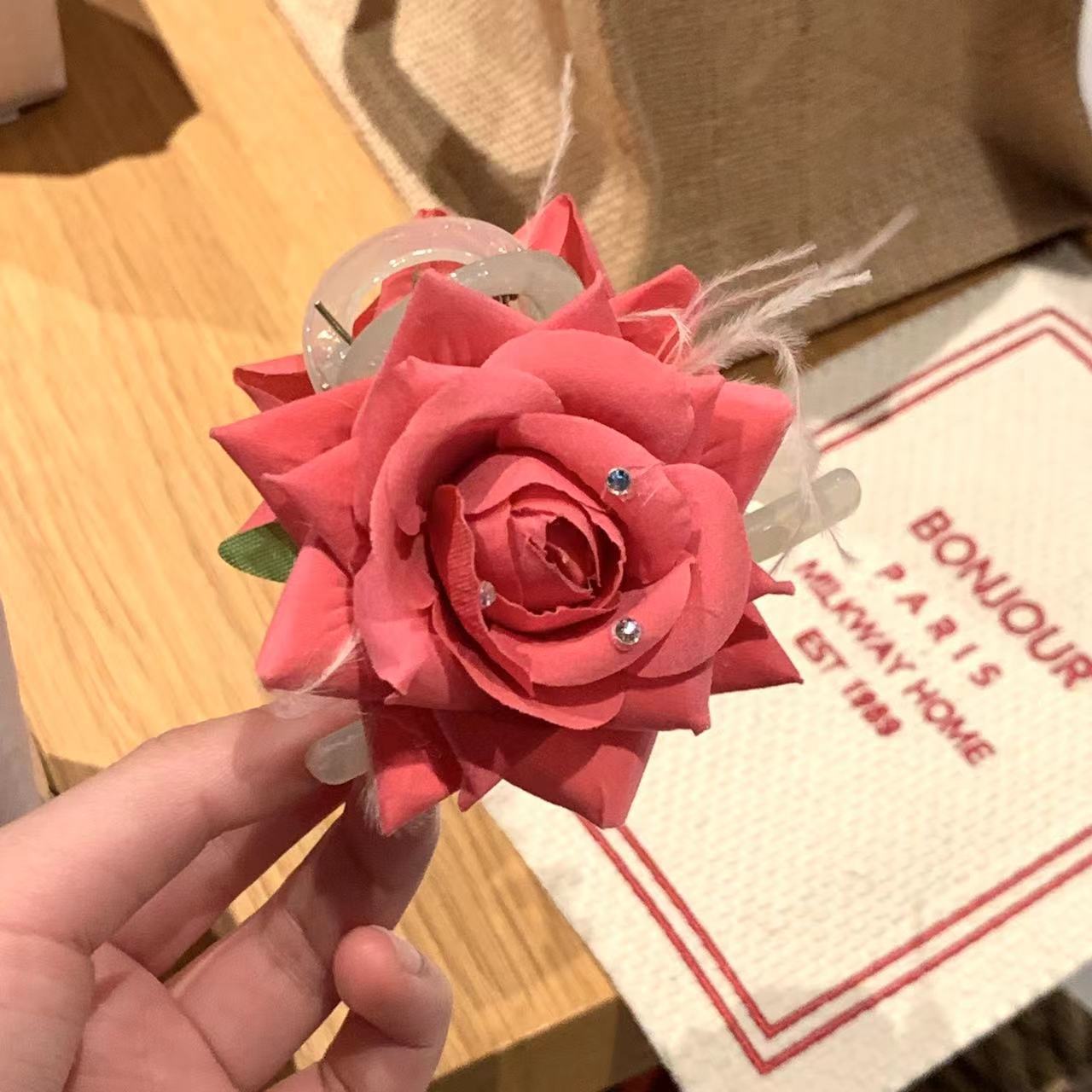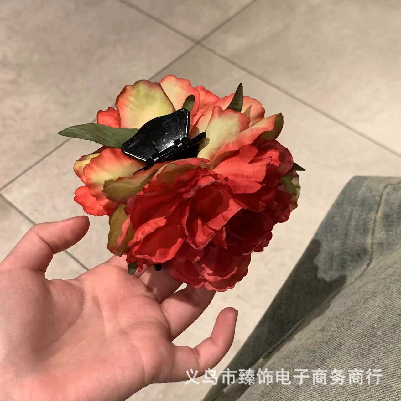 韩版新款文艺气质古风气质网纱花朵抓夹发夹法式后脑勺女发抓头饰