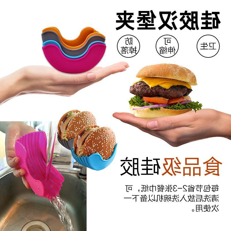 现货:厂家直供硅胶汉堡夹免接触防脱落Hamburger汉堡固定盒可清洗伸缩