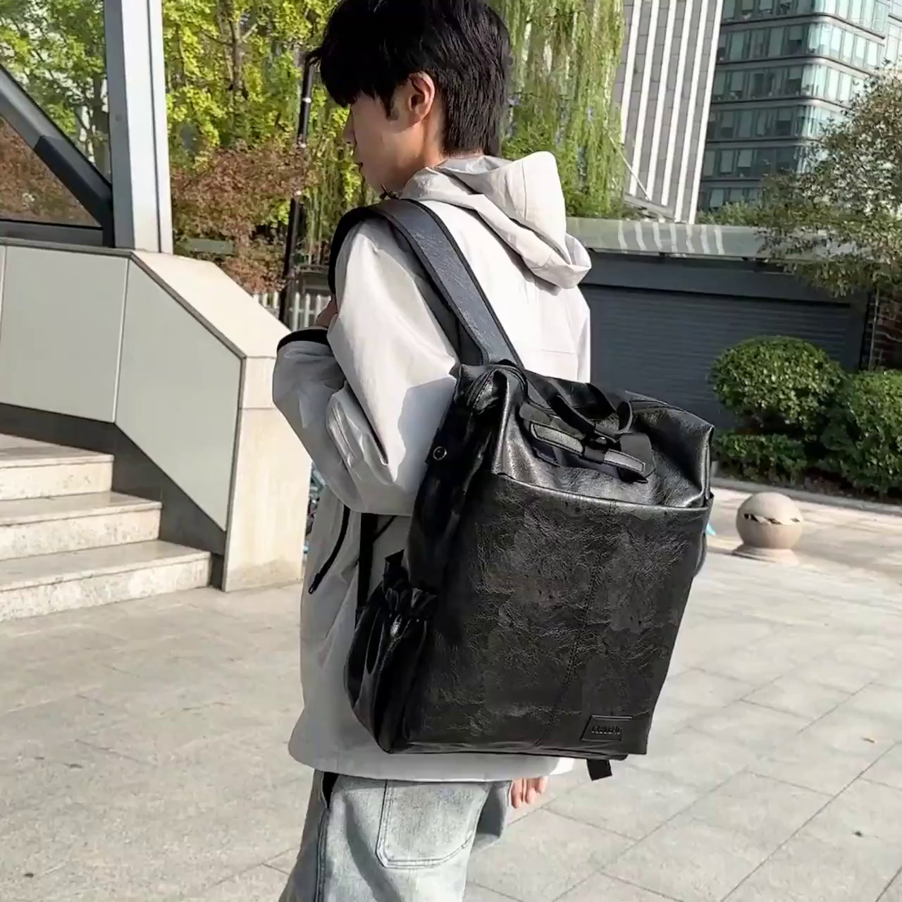 双肩背包工厂直销批发可跨境大容量PU学生包防水耐磨背包可手提