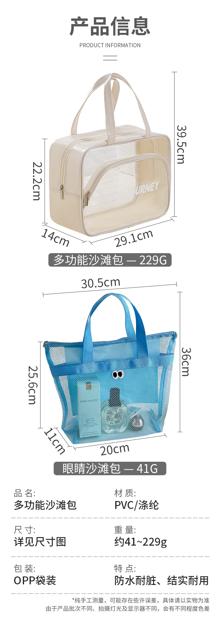 大眼睛网纱沙滩包韩版网眼洗漱化妆包便携手提大容量户外玩水收纳