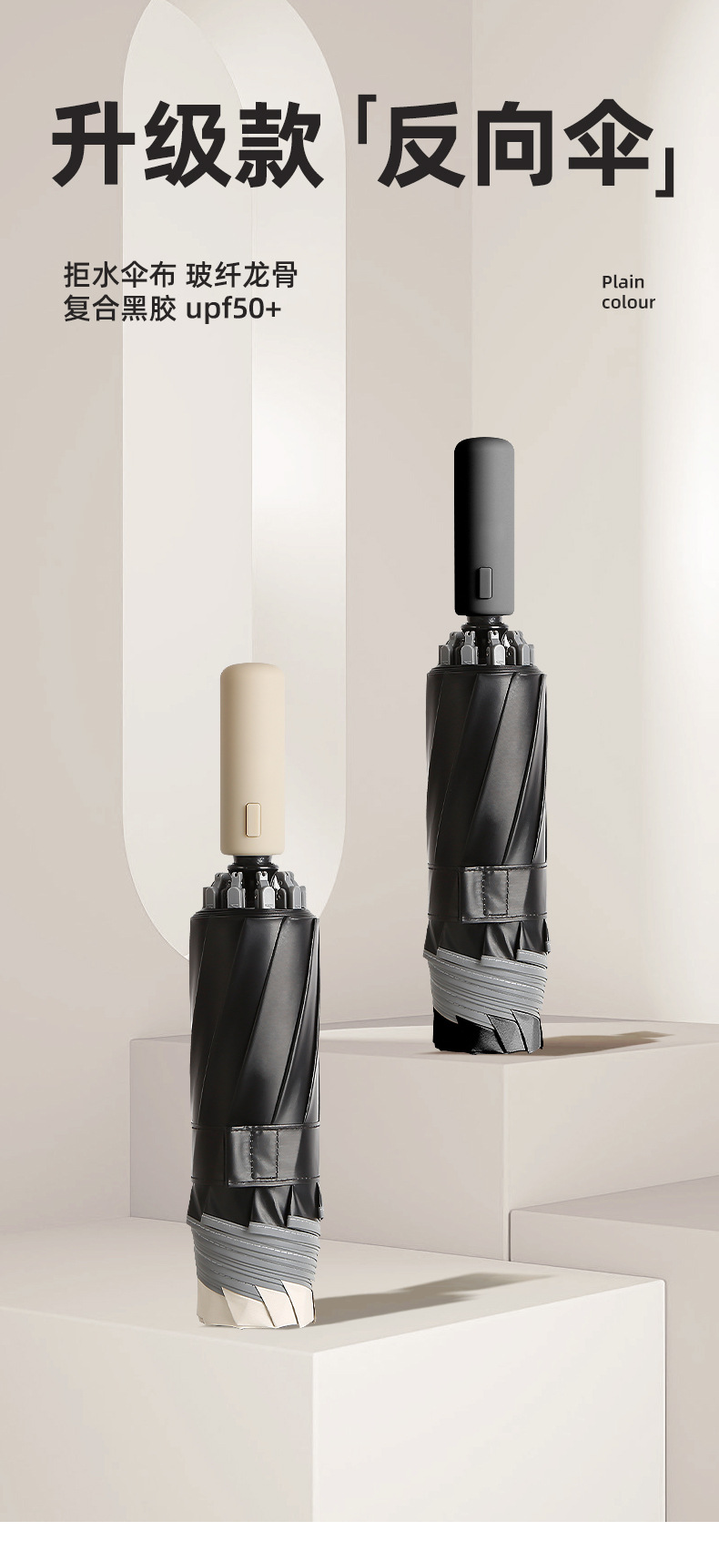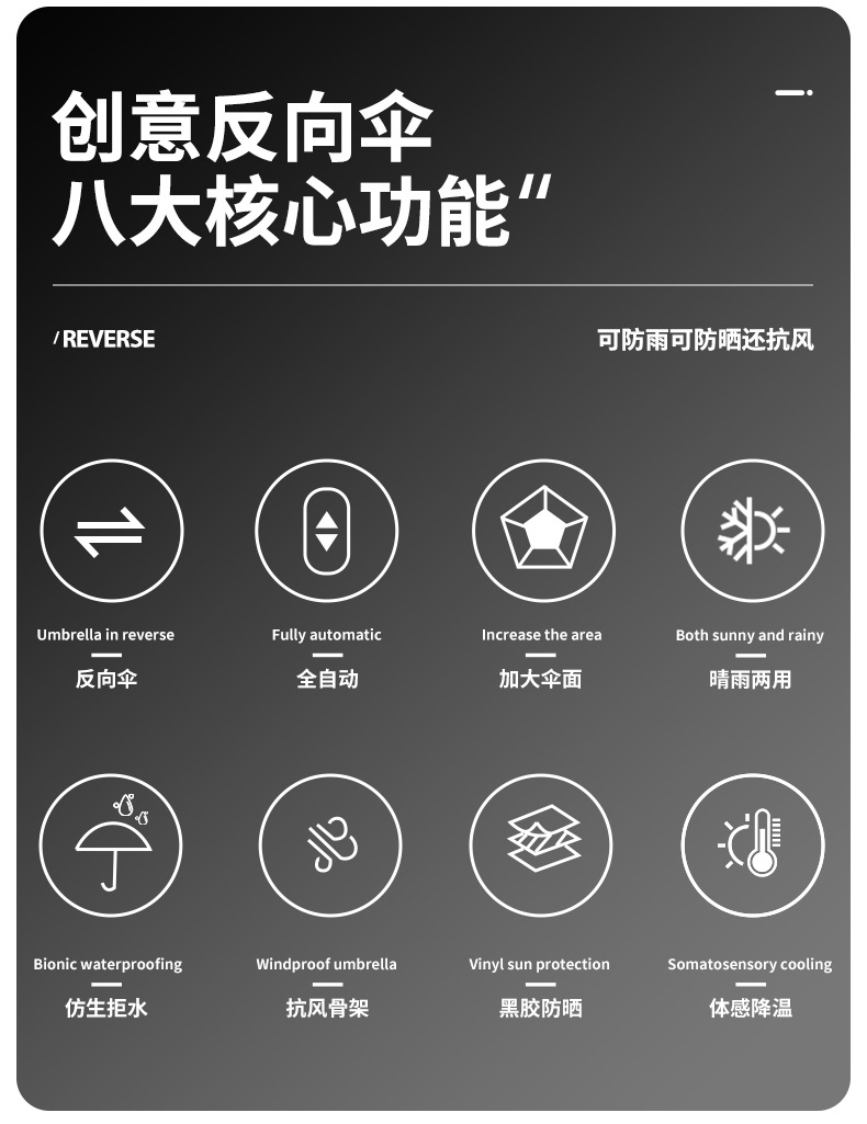 三折自动反向伞加固双人超大黑胶晴雨两用折叠遮阳太阳伞定制批发