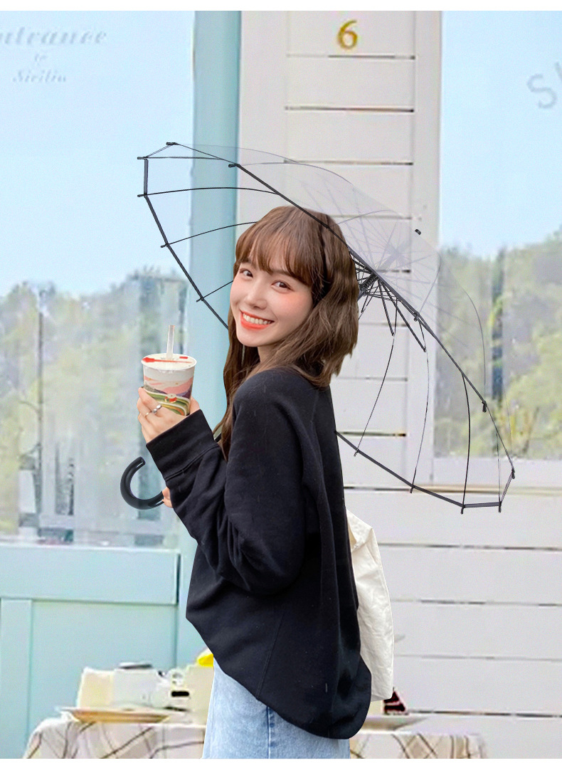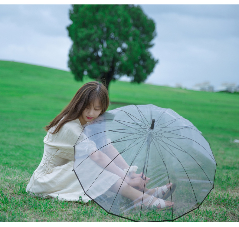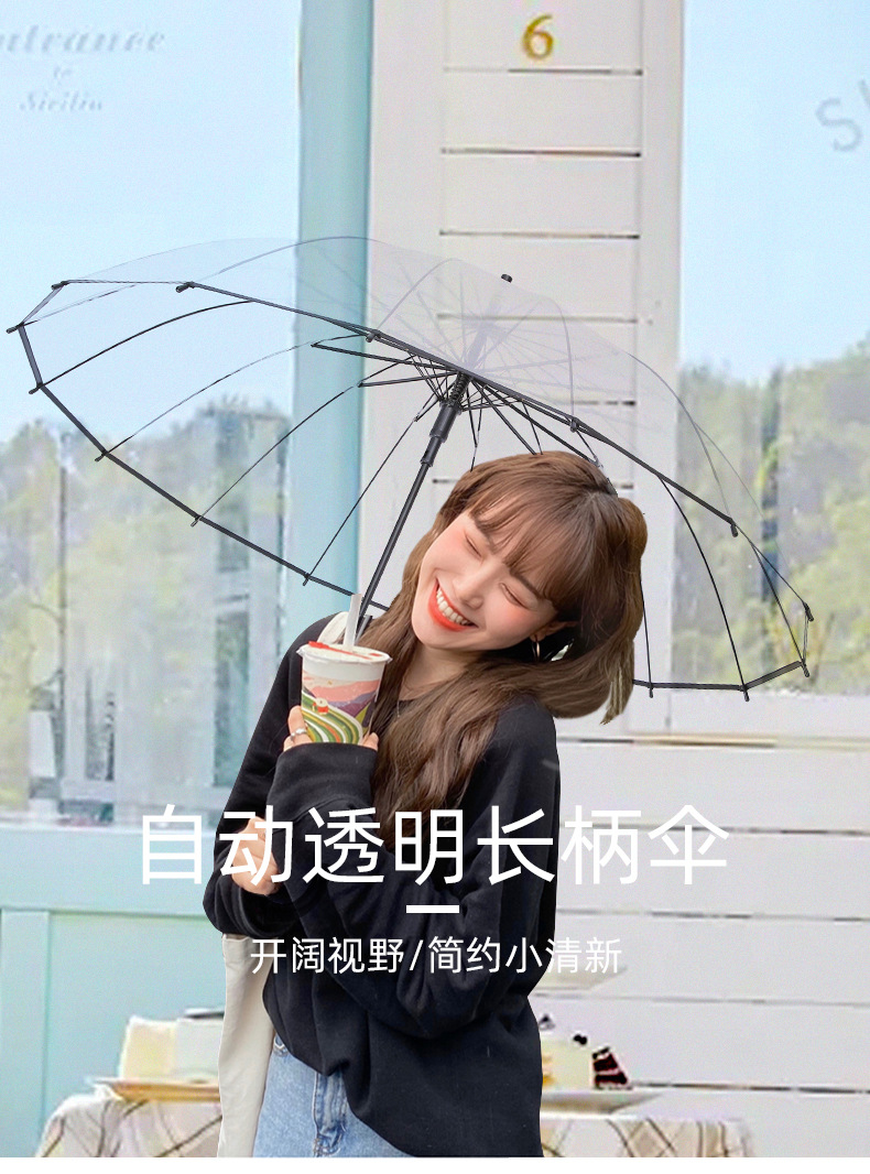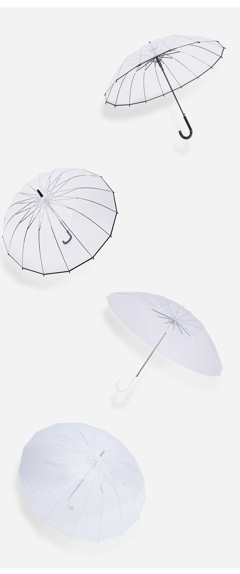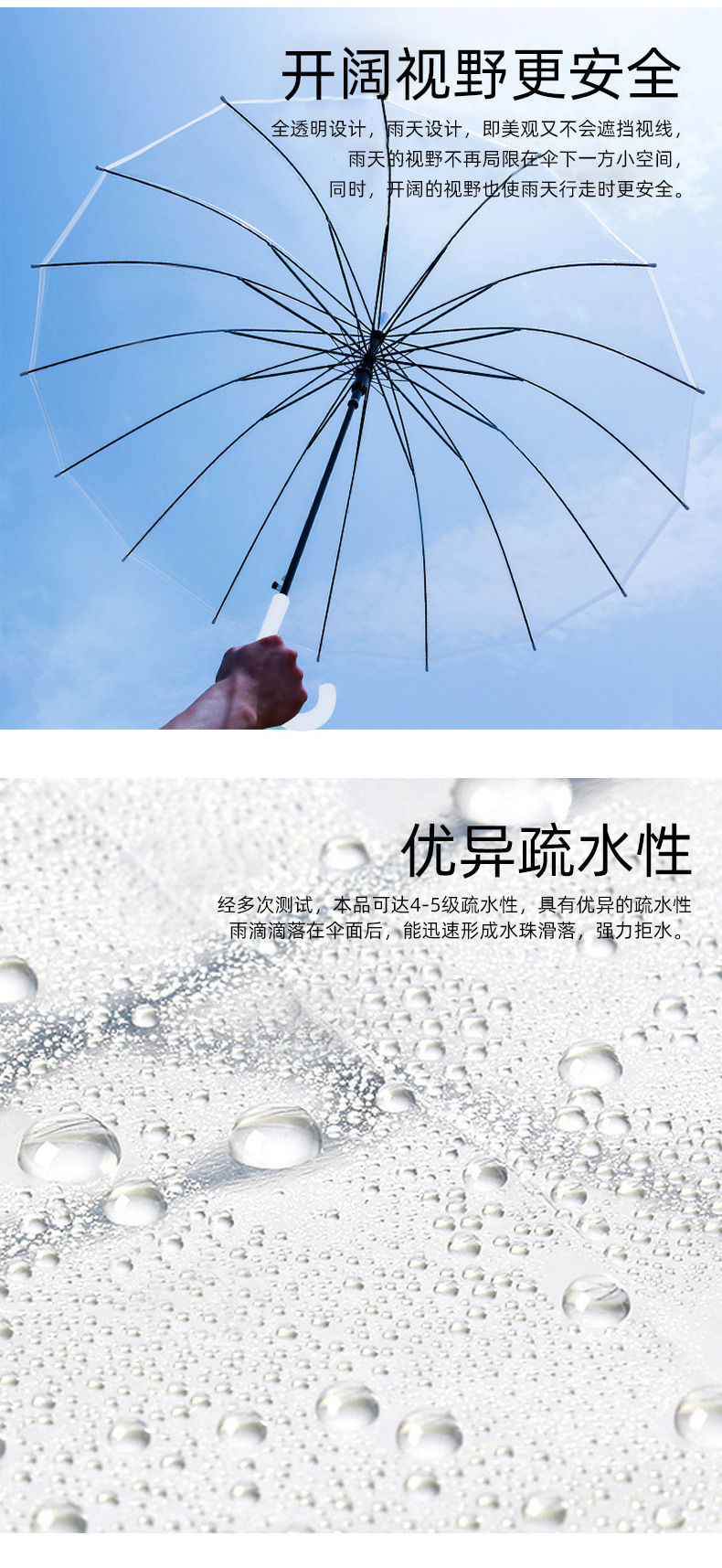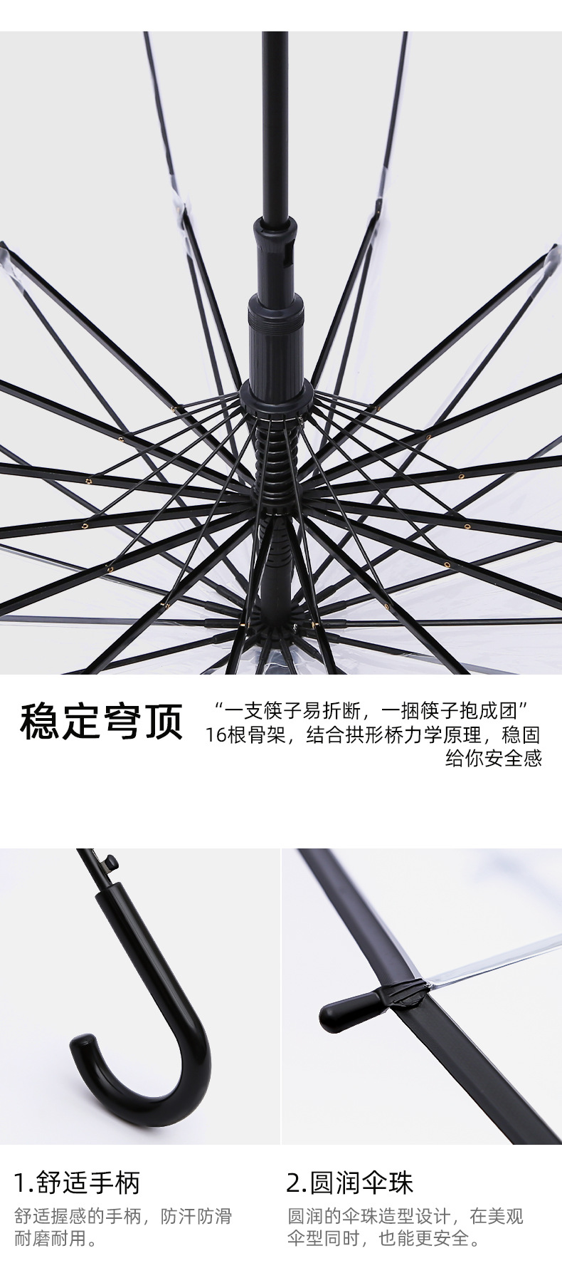 透明雨伞16骨纤维骨韧性防风直杆简纯色自动长柄广告伞logo印刷
