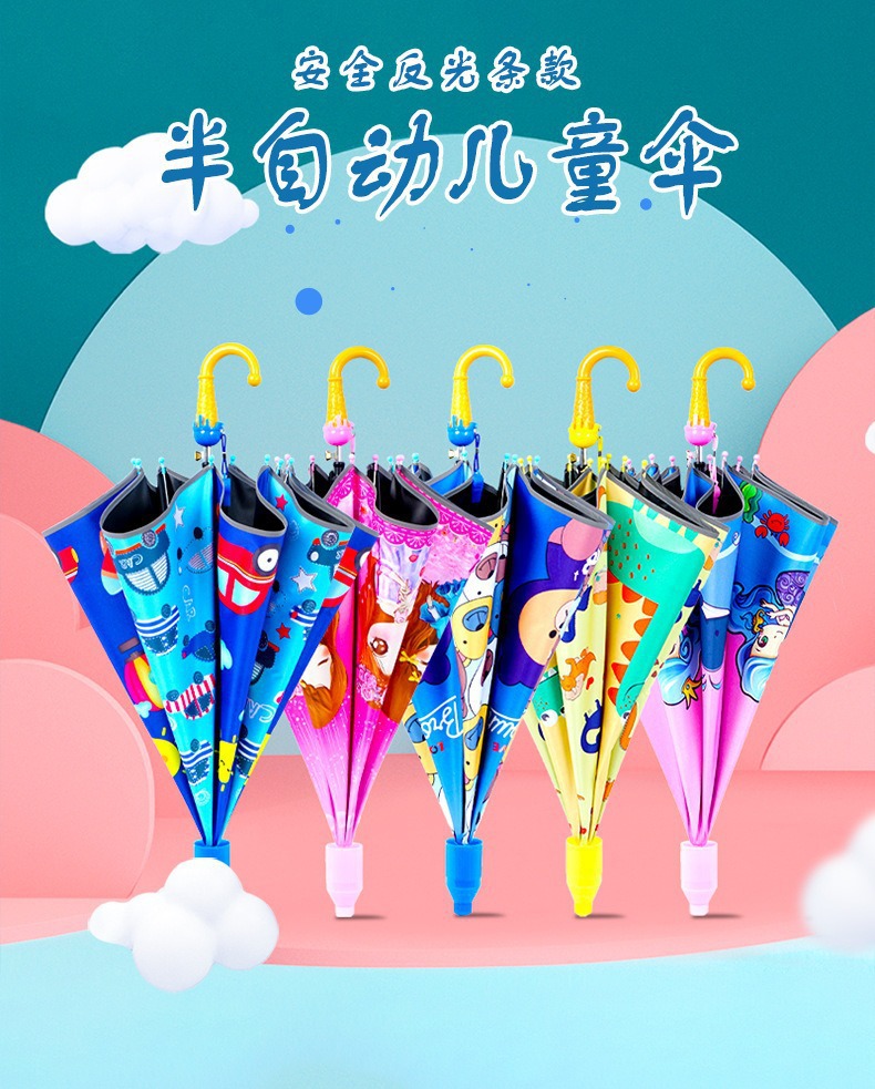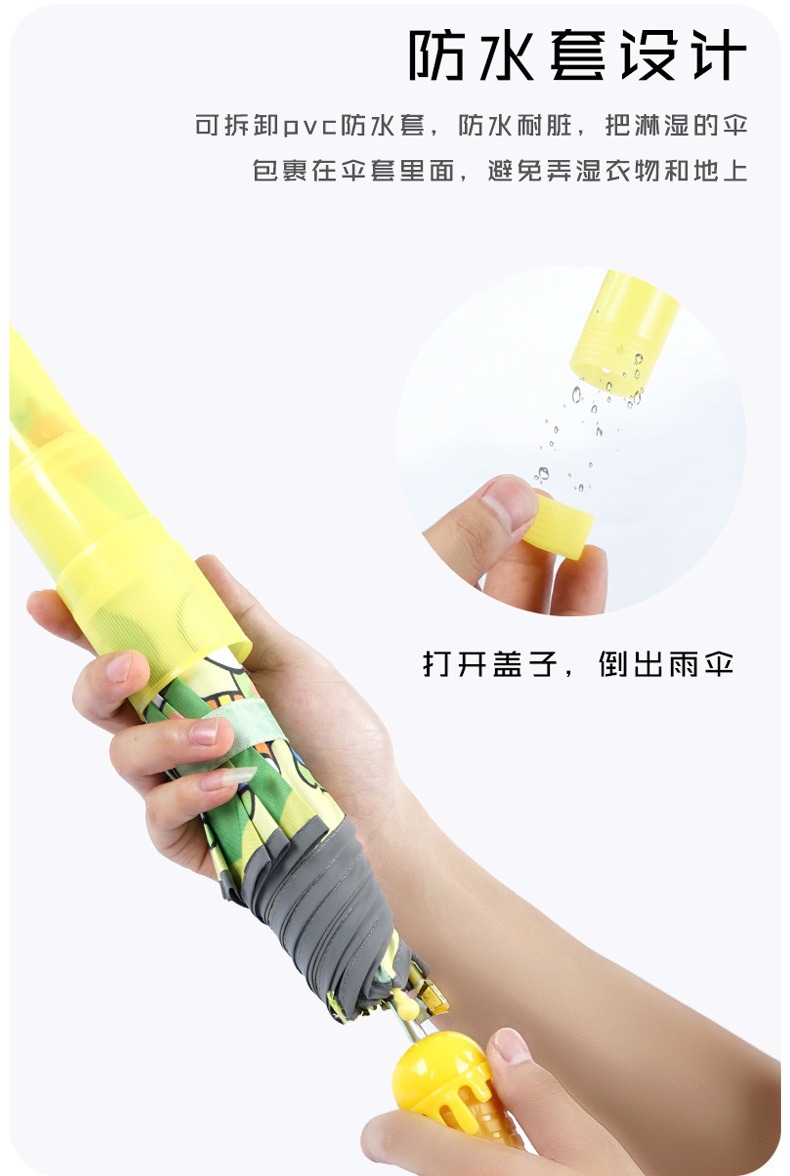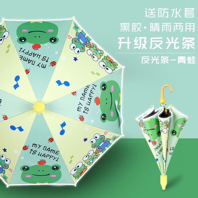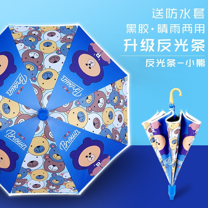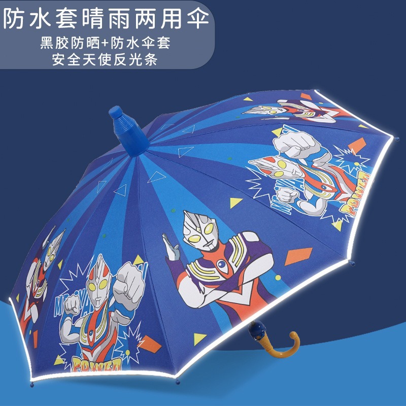 批发黑胶防晒儿童伞安全轻便自动晴天雨用卡通伞雨伞定制带防水套