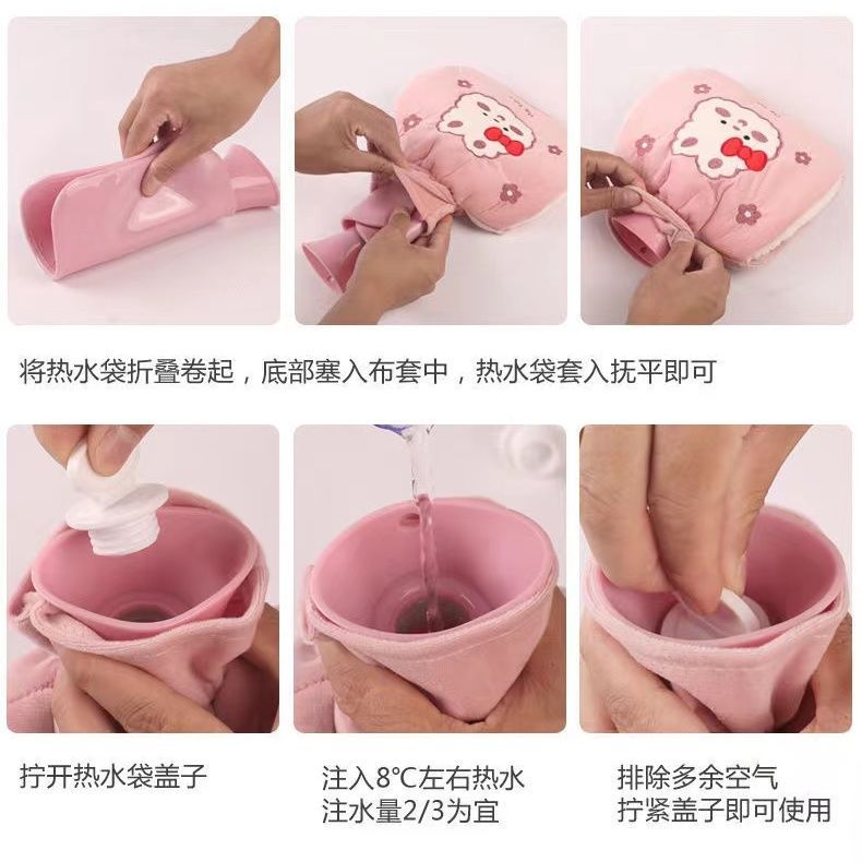 加厚防爆暖水袋热水袋注水式暖肚子灌水暖脚暖手袋被窝毛绒暖手宝