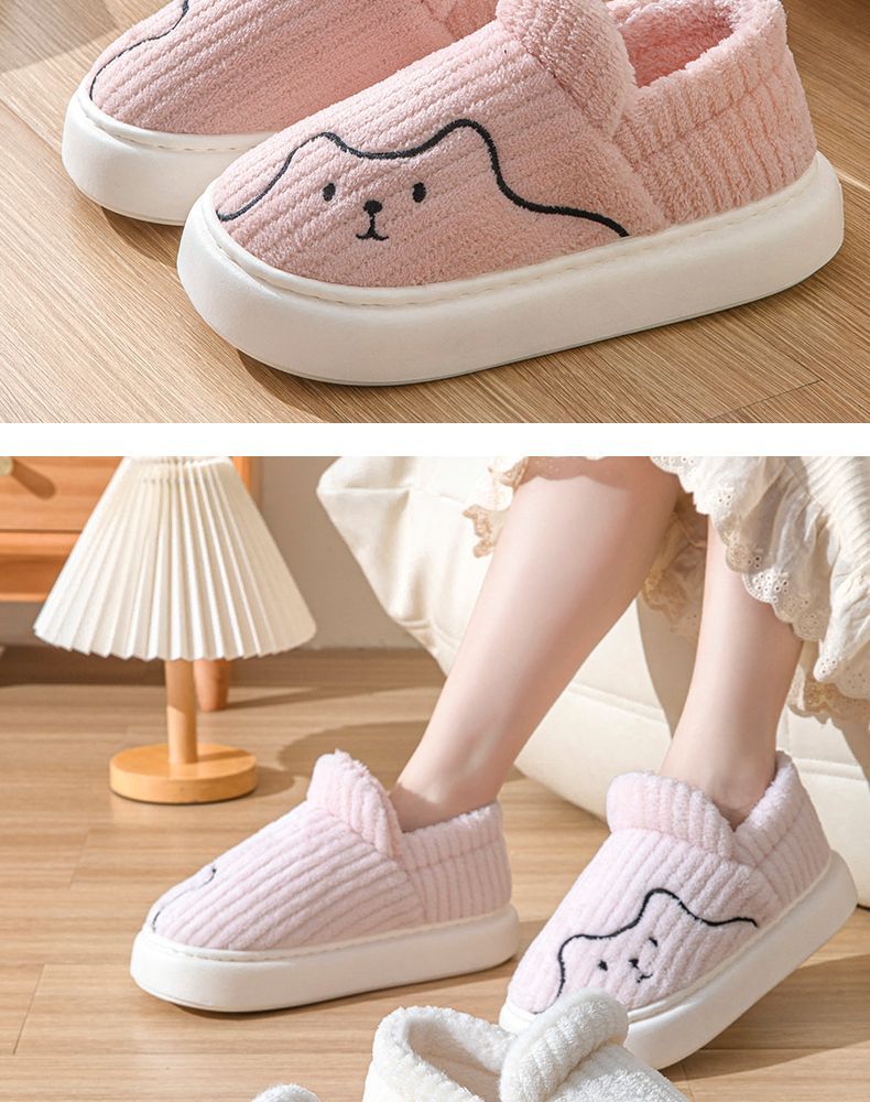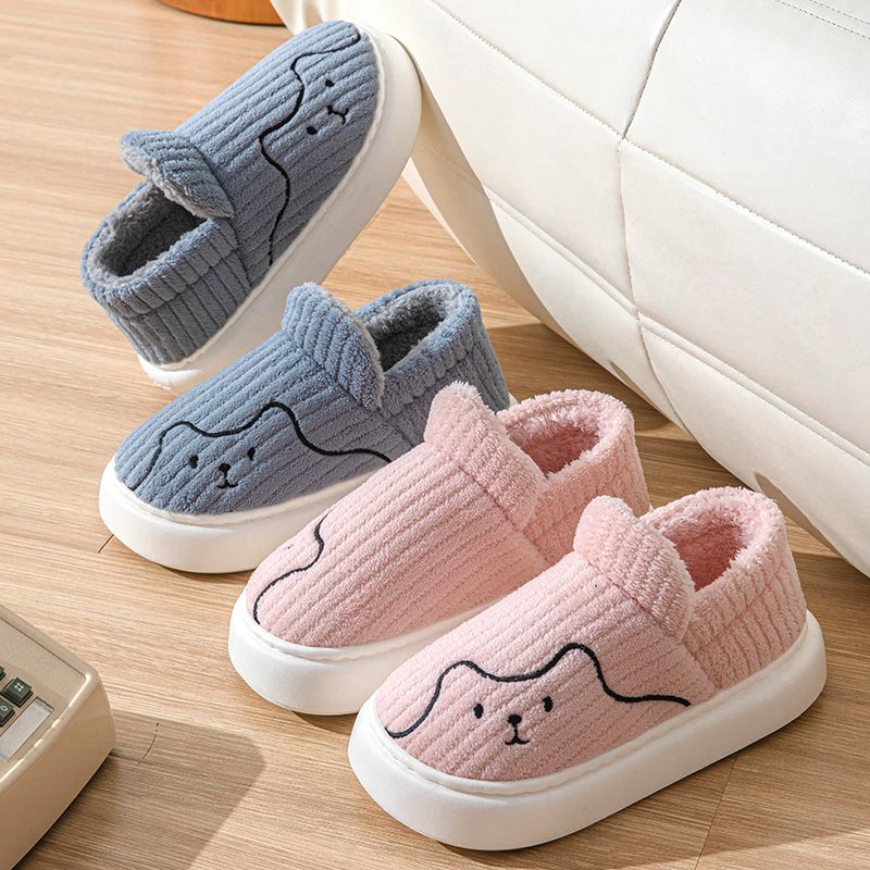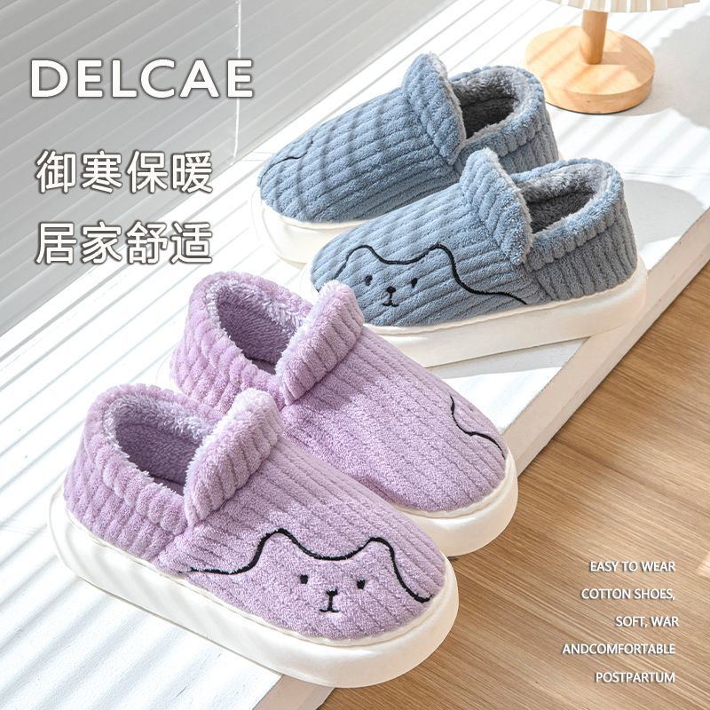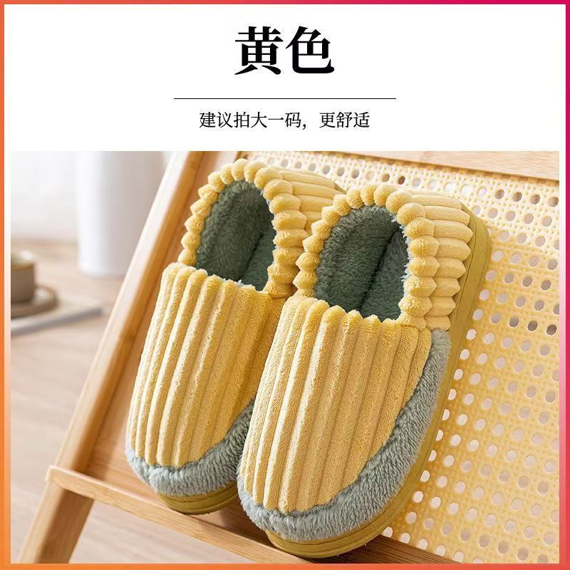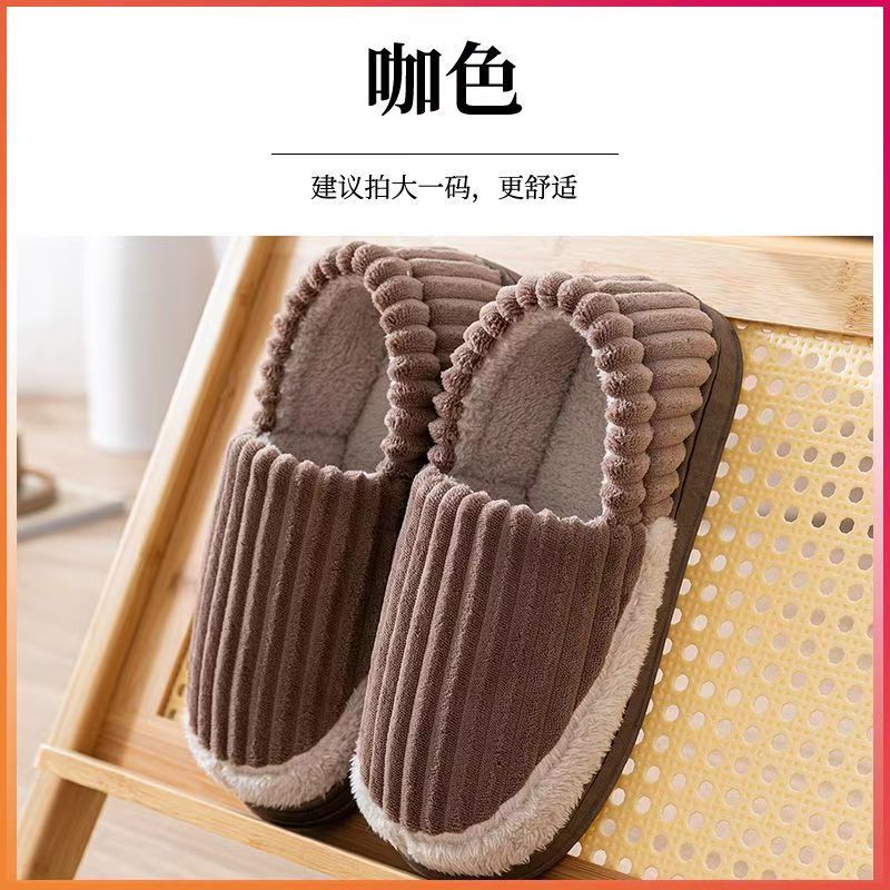 秋冬季情侣包跟棉拖鞋女厚底防滑加绒保暖家用静音包跟棉鞋男外穿