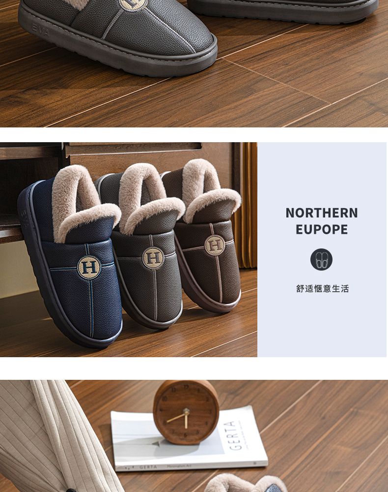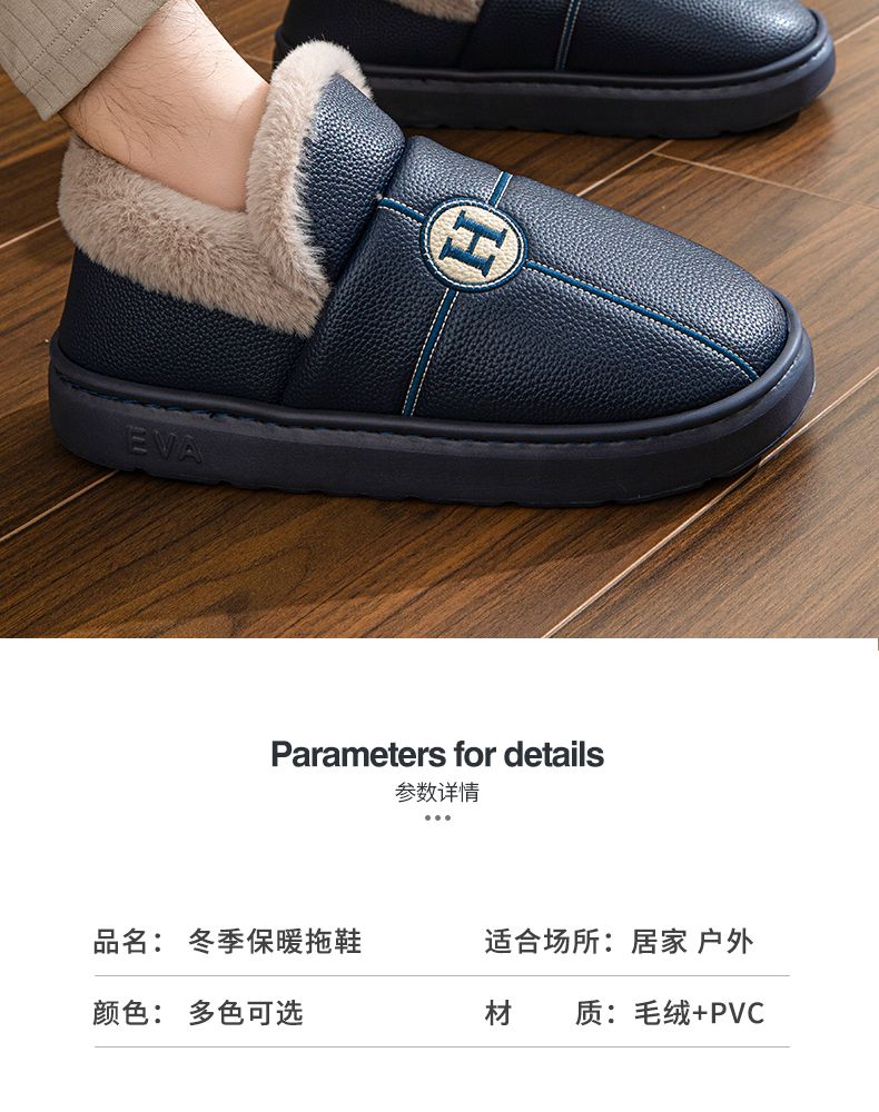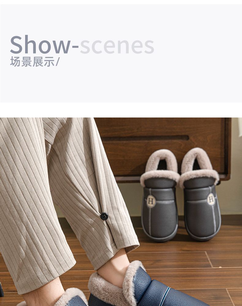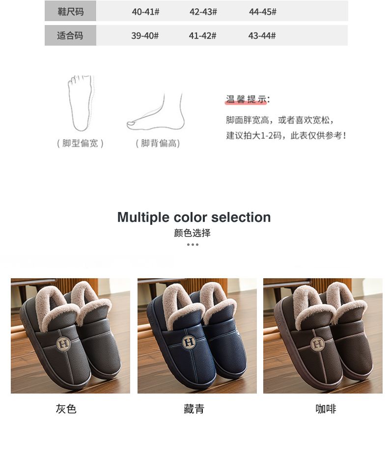 特大码棉拖男士秋冬季室内外加绒保暖防滑PU皮防水包跟踩屎感棉鞋