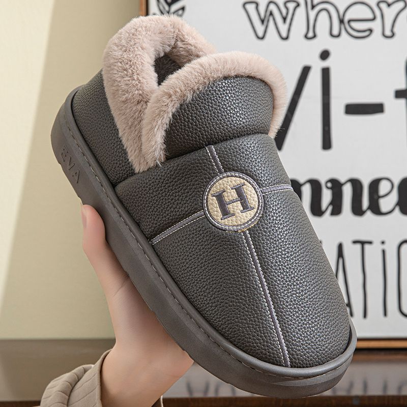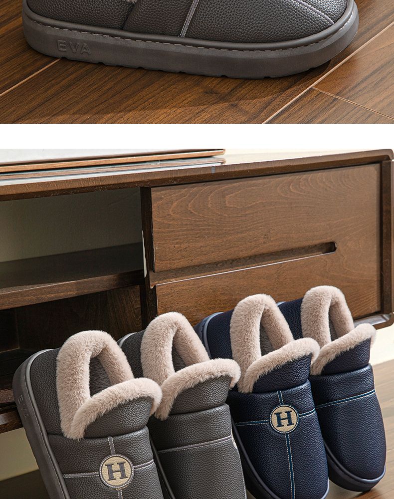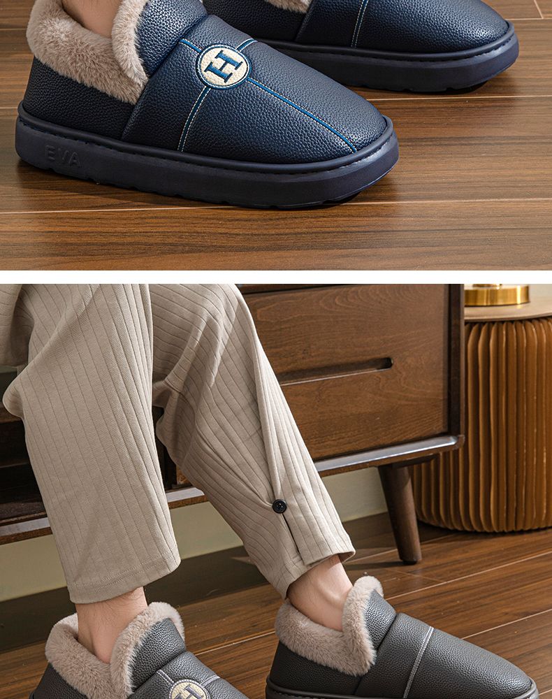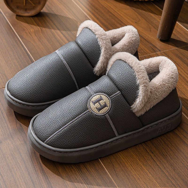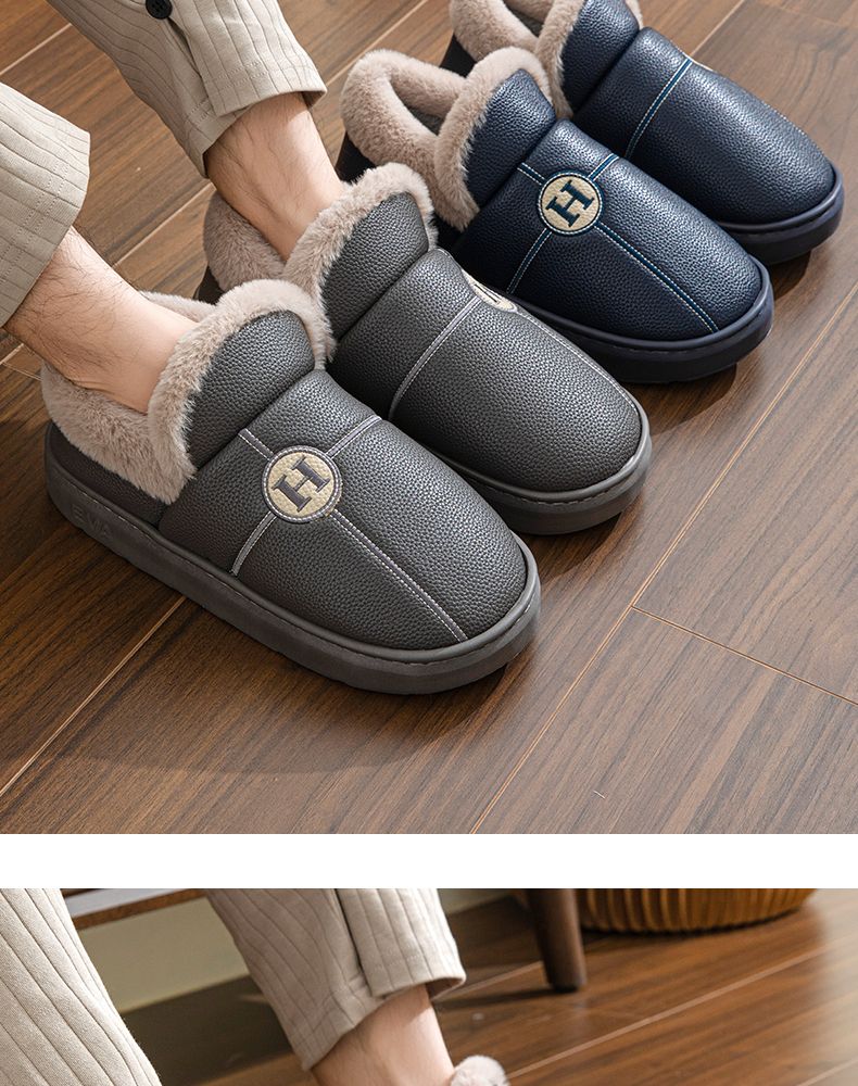 特大码棉拖男士秋冬季室内外加绒保暖防滑PU皮防水包跟踩屎感棉鞋