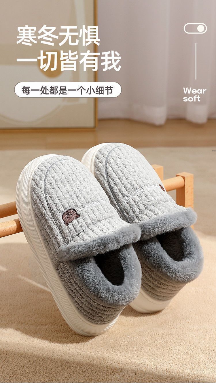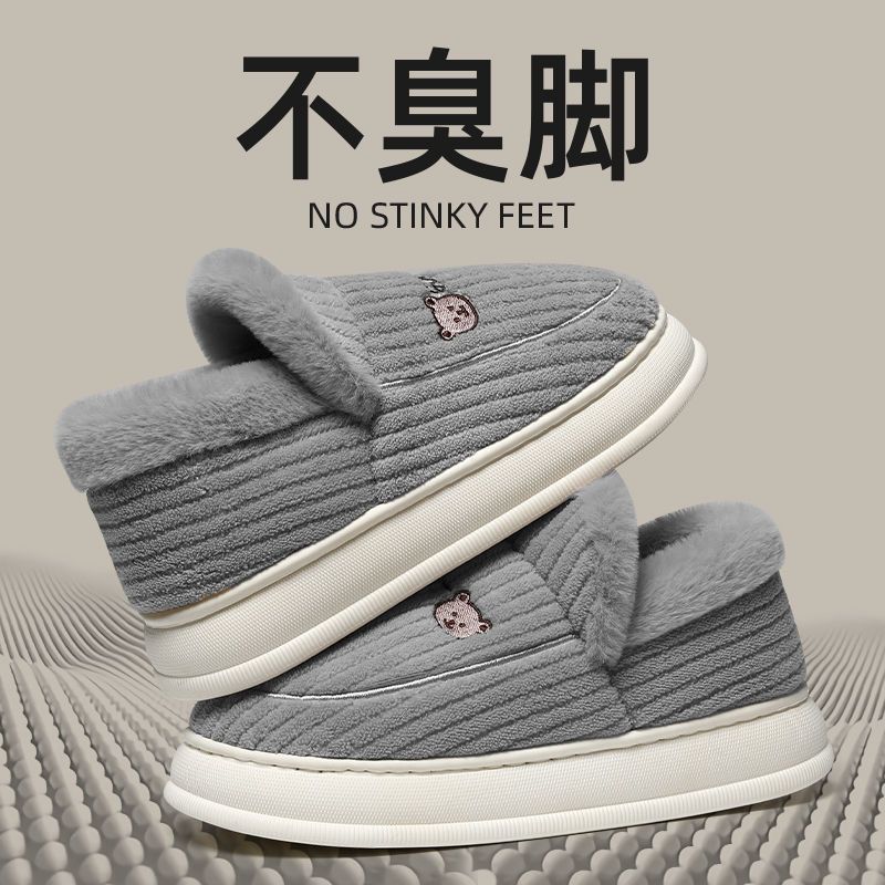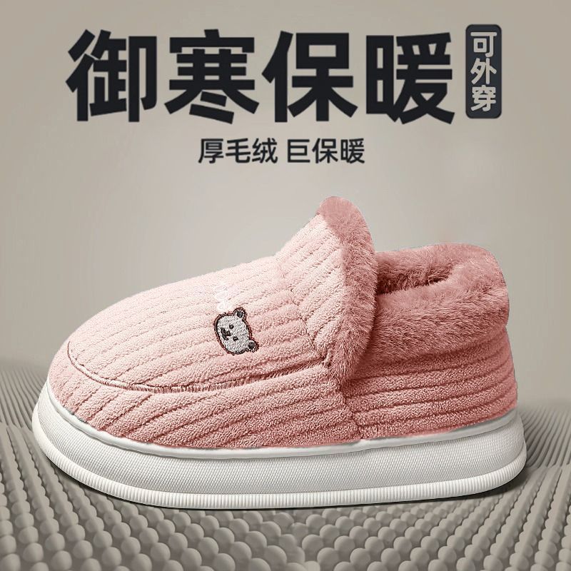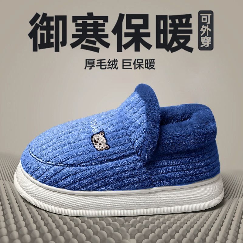 御寒棉鞋男款冬季包跟2024新款室内家居防滑厚底保暖毛绒月子鞋女