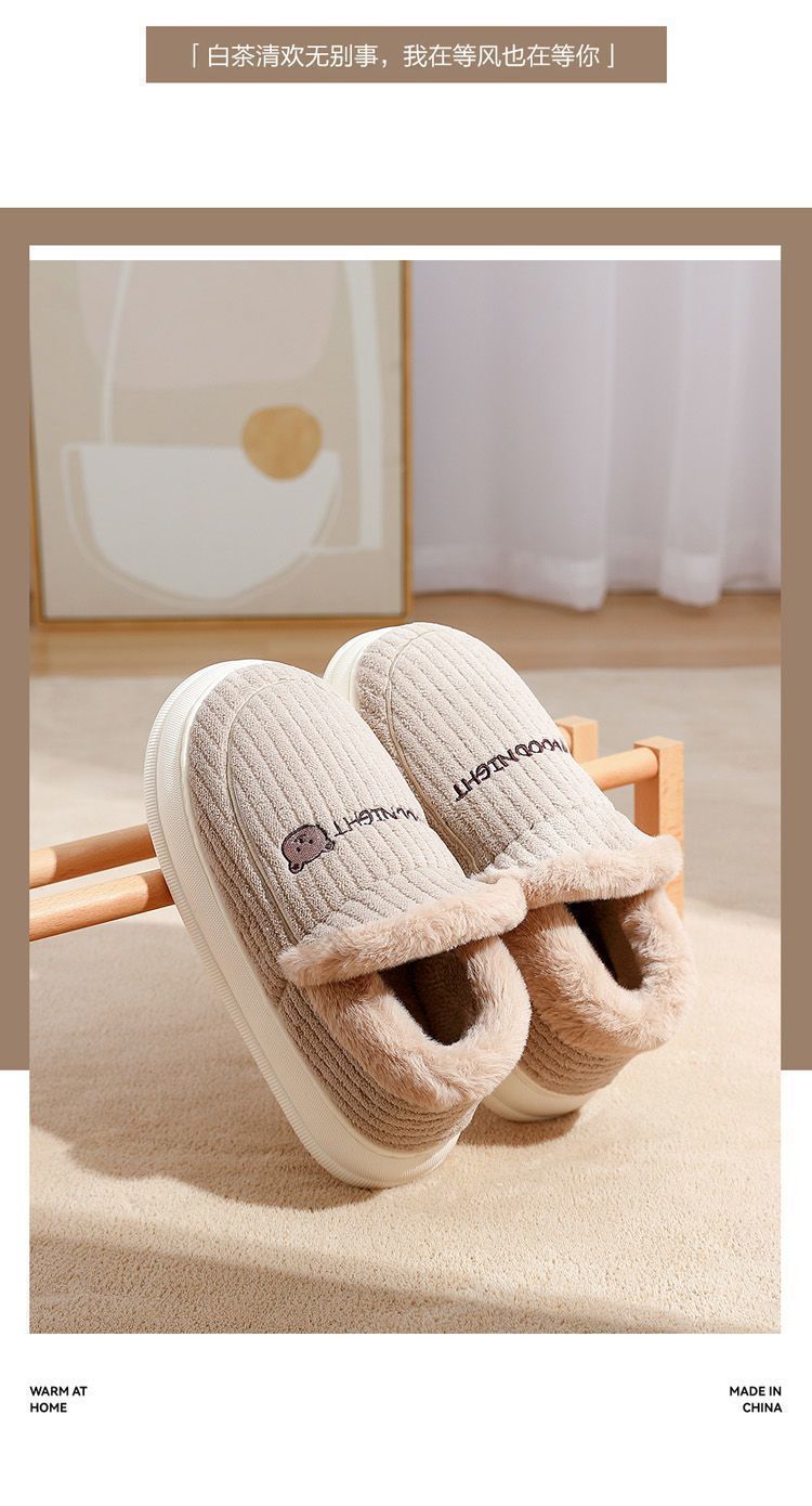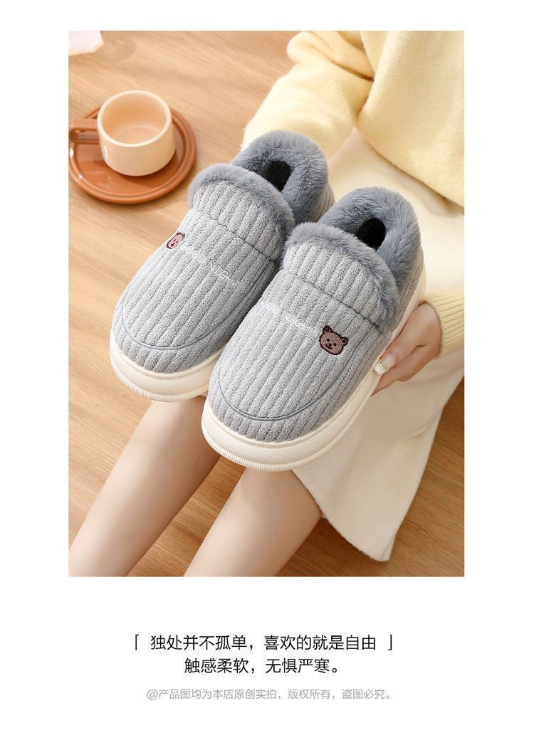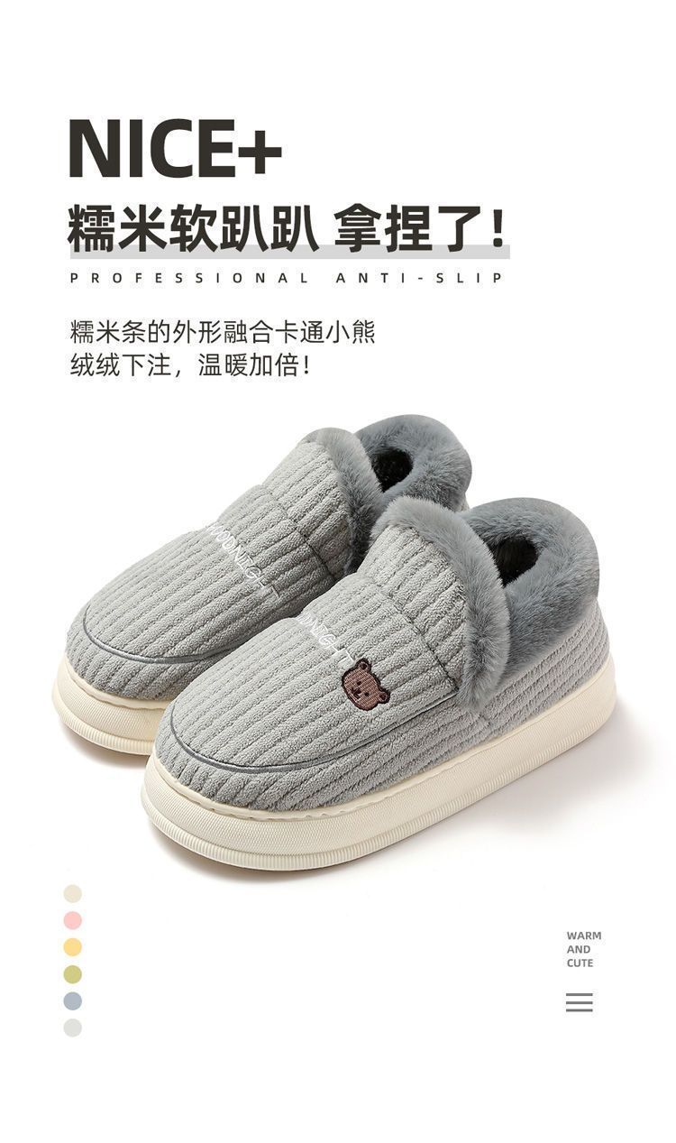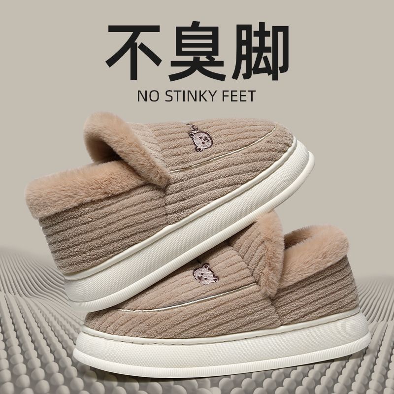御寒棉鞋男款冬季包跟2024新款室内家居防滑厚底保暖毛绒月子鞋女