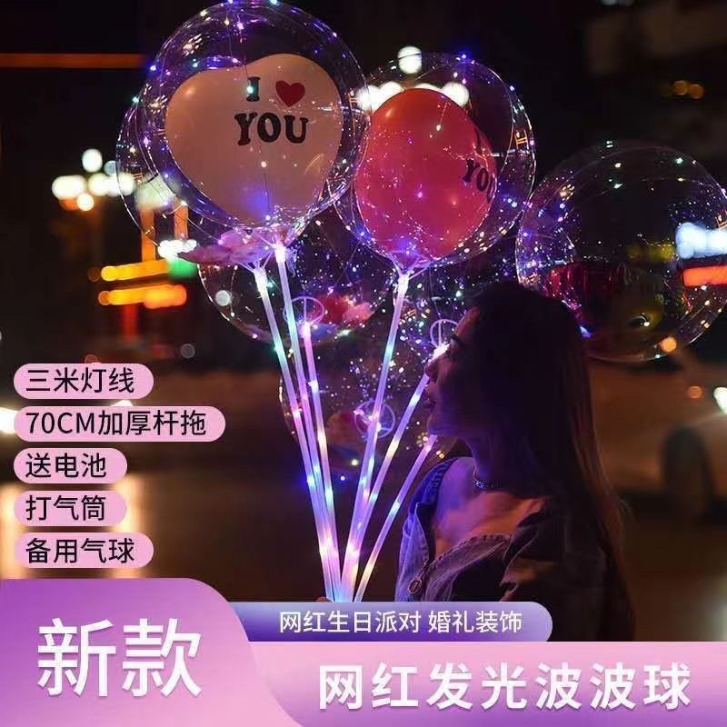 网红发光波波气球带灯夜市街卖爆款广场地推热卖卡通儿童汽球