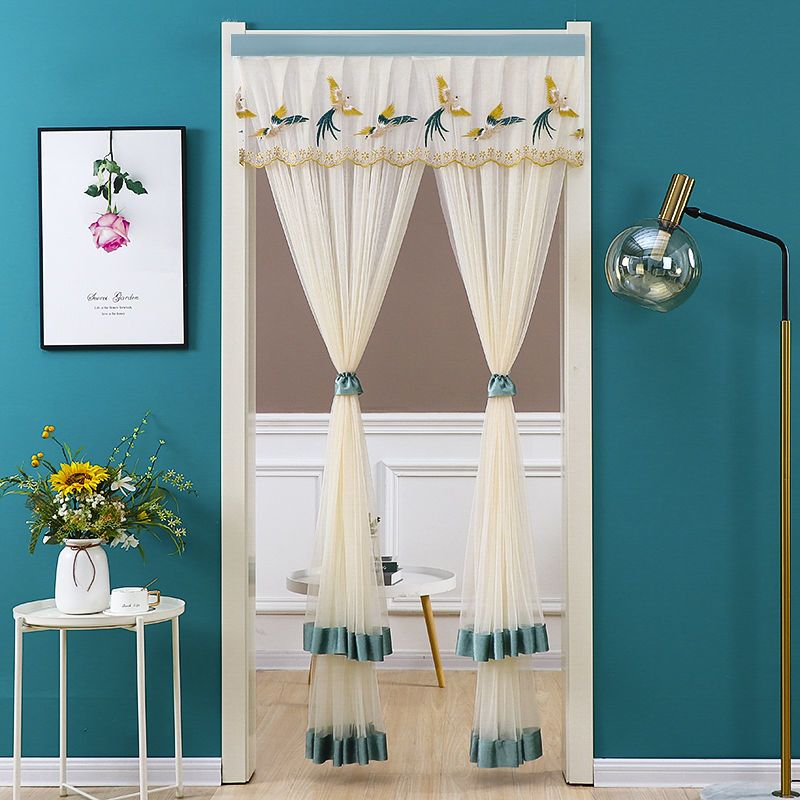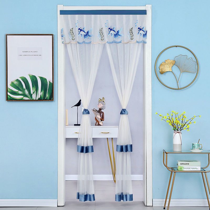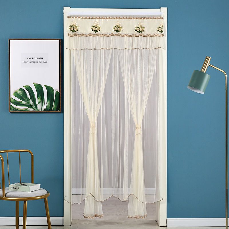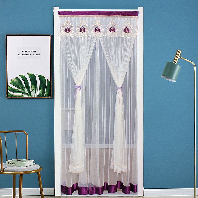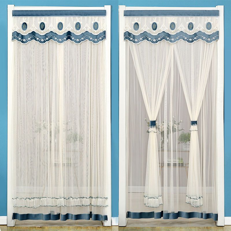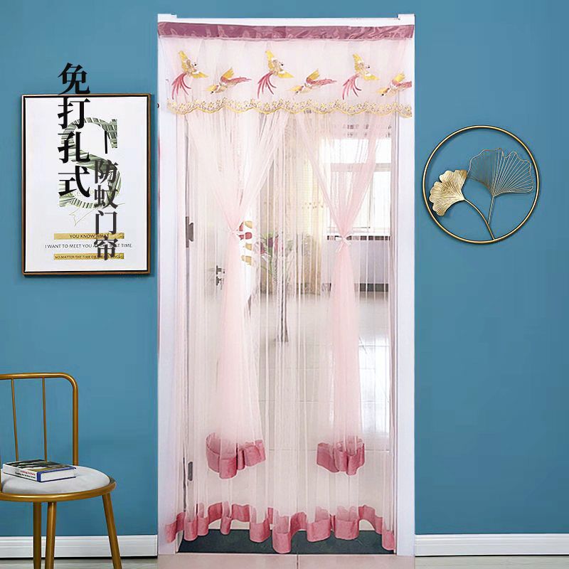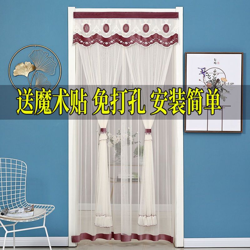 家用夏季防蚊门帘免打孔蕾丝门帘隔断帘厨房卧室装饰帘防蝇防虫
