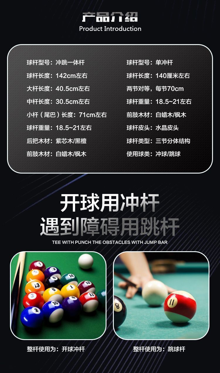 台球球杆单跳杆小钢炮单冲杆子大头一体暴力加重清台冲杆跳杆