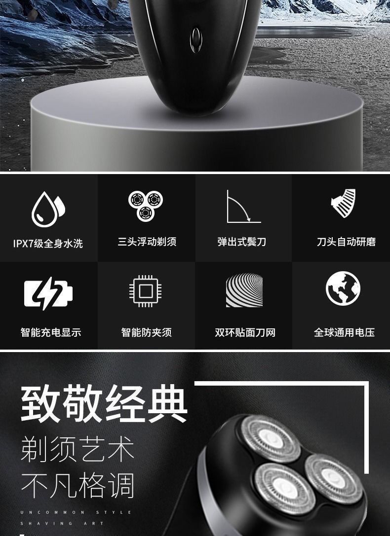 【年底促销】德国进口刀头电动剃须刀三刀头浮动静音水洗刮胡刀【