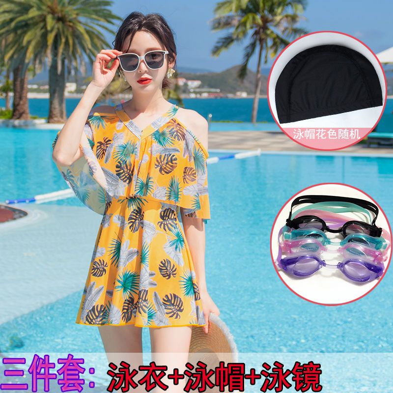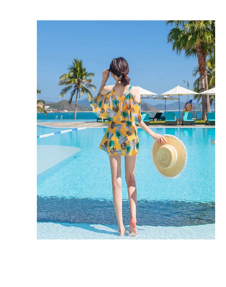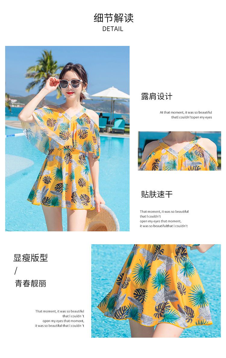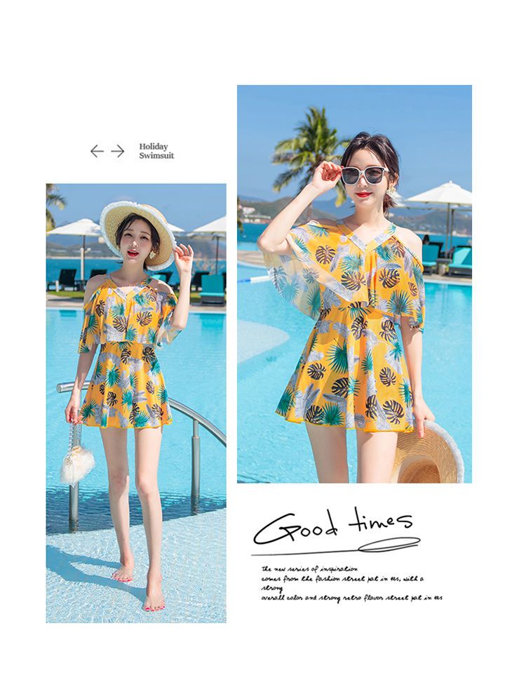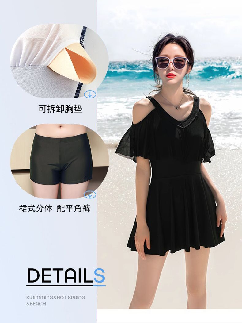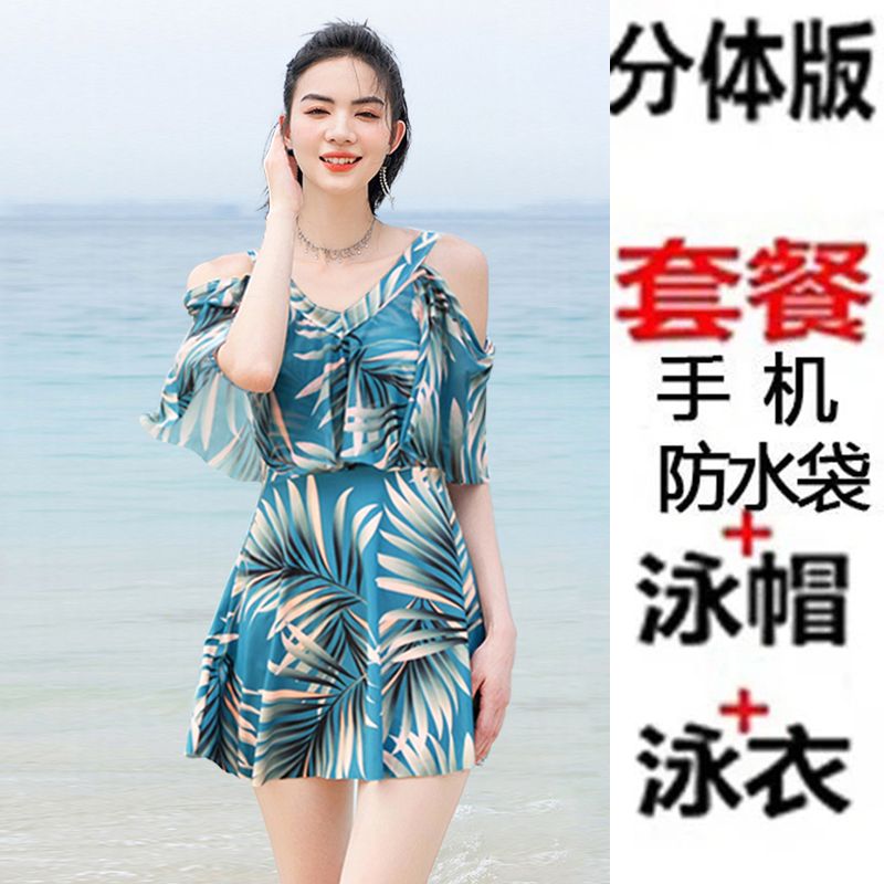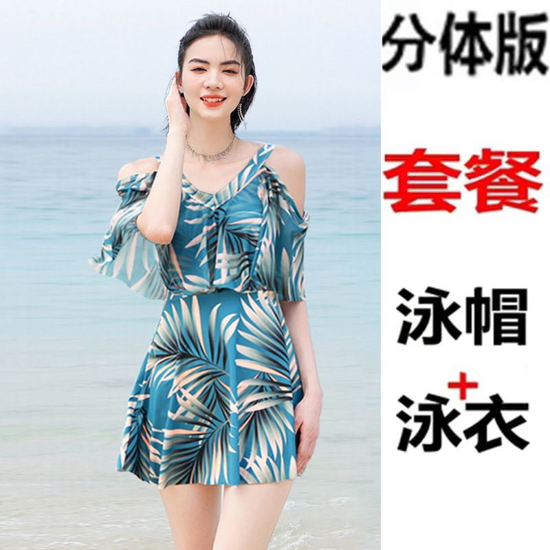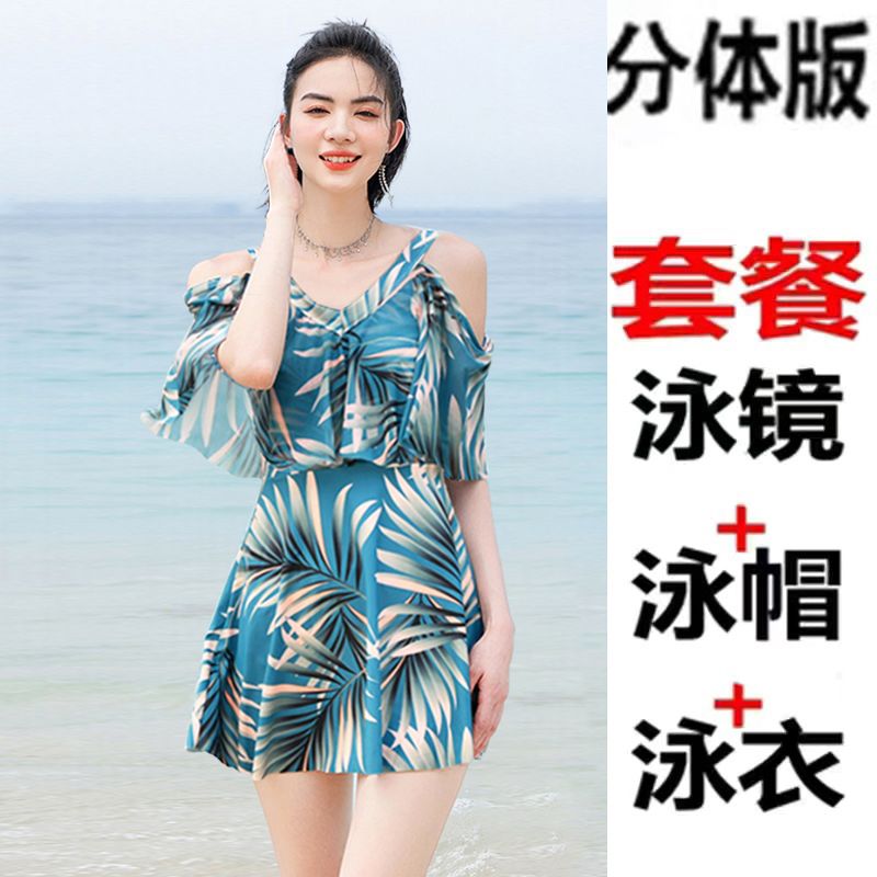时尚分体泳衣女士裙式平角遮肚韩国泡温泉显瘦两件套加大码游泳衣