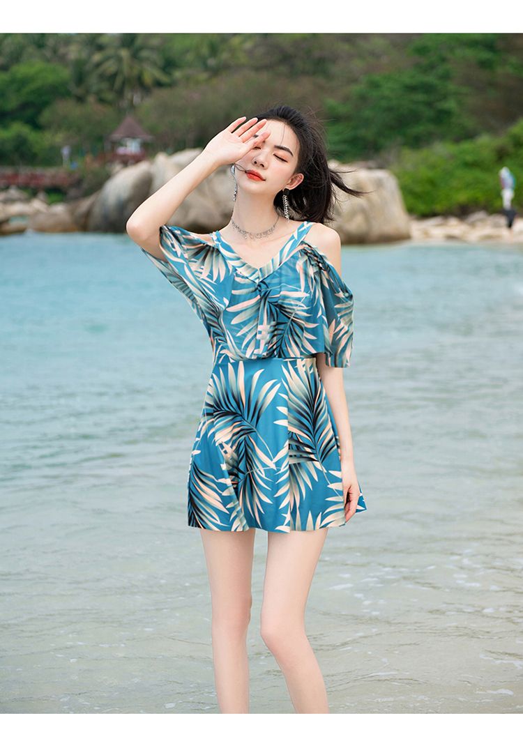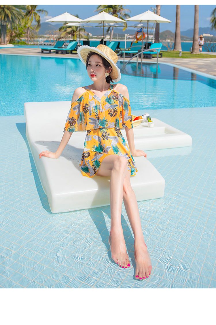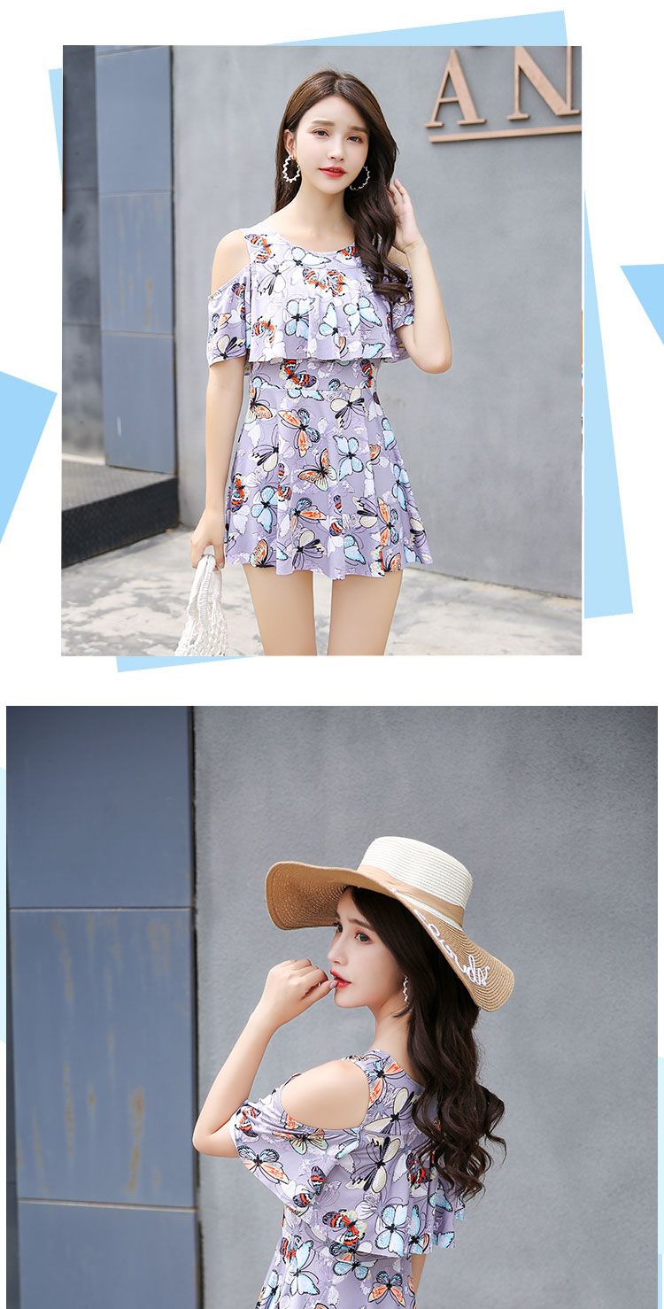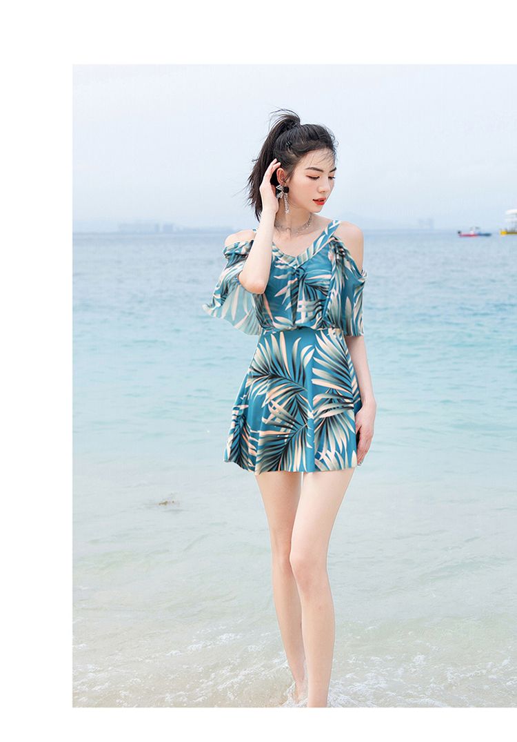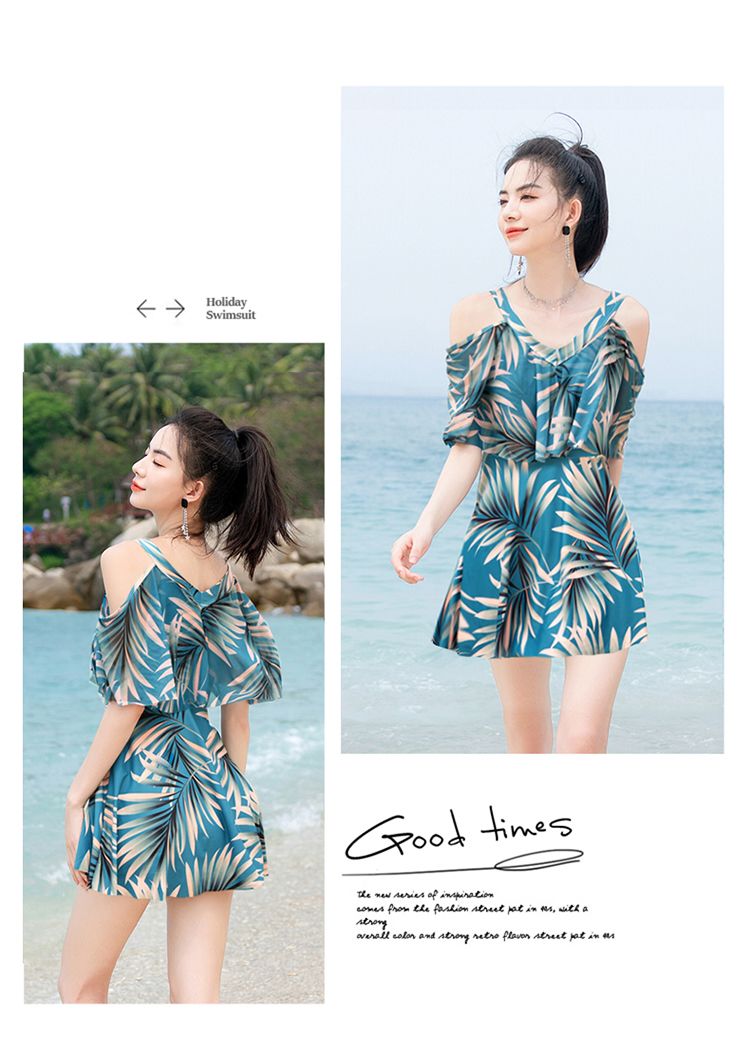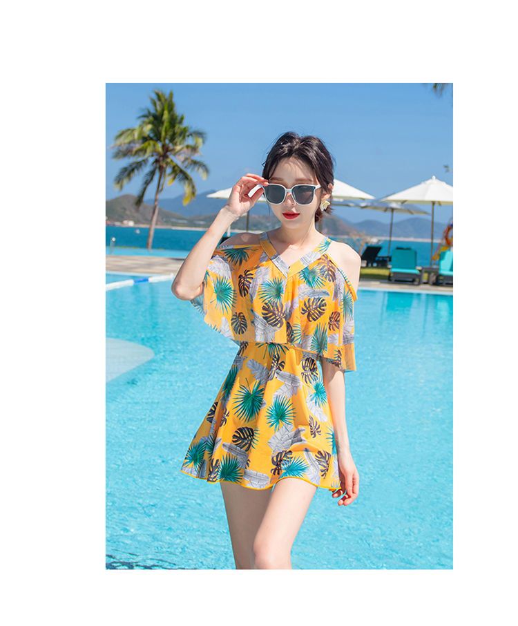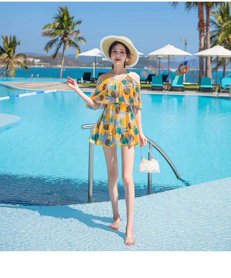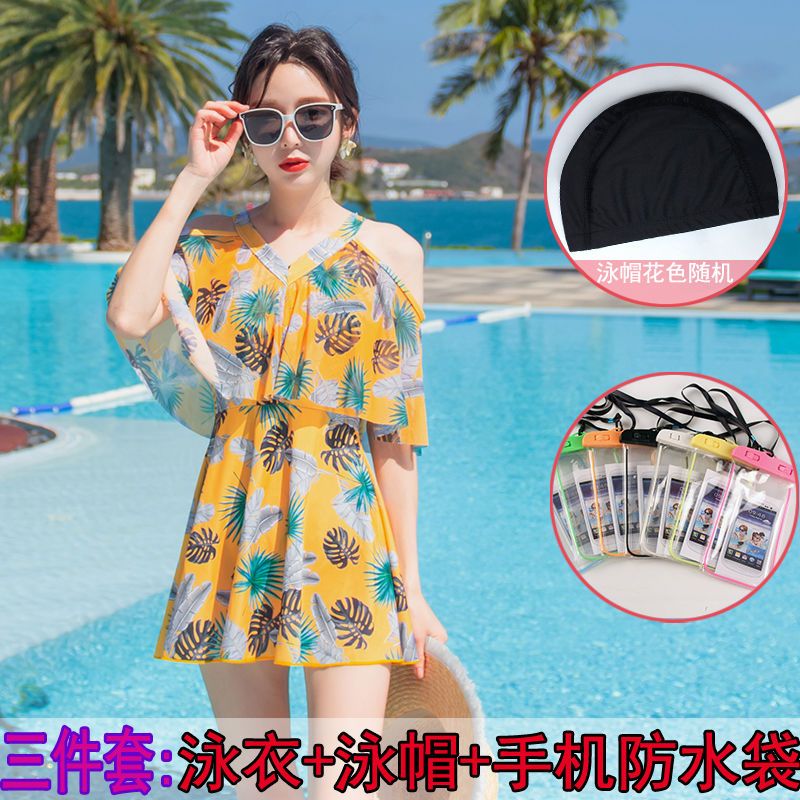 时尚分体泳衣女士裙式平角遮肚韩国泡温泉显瘦两件套加大码游泳衣