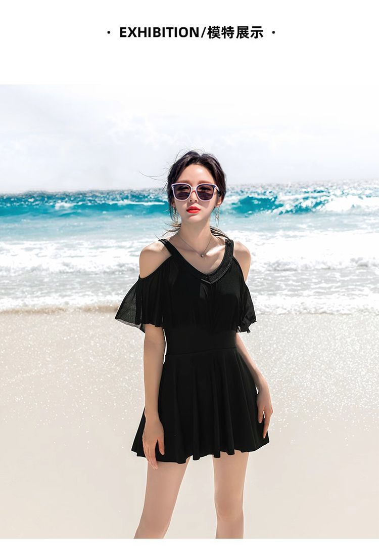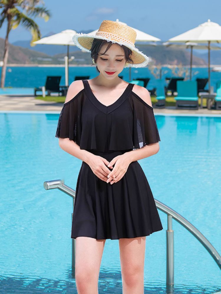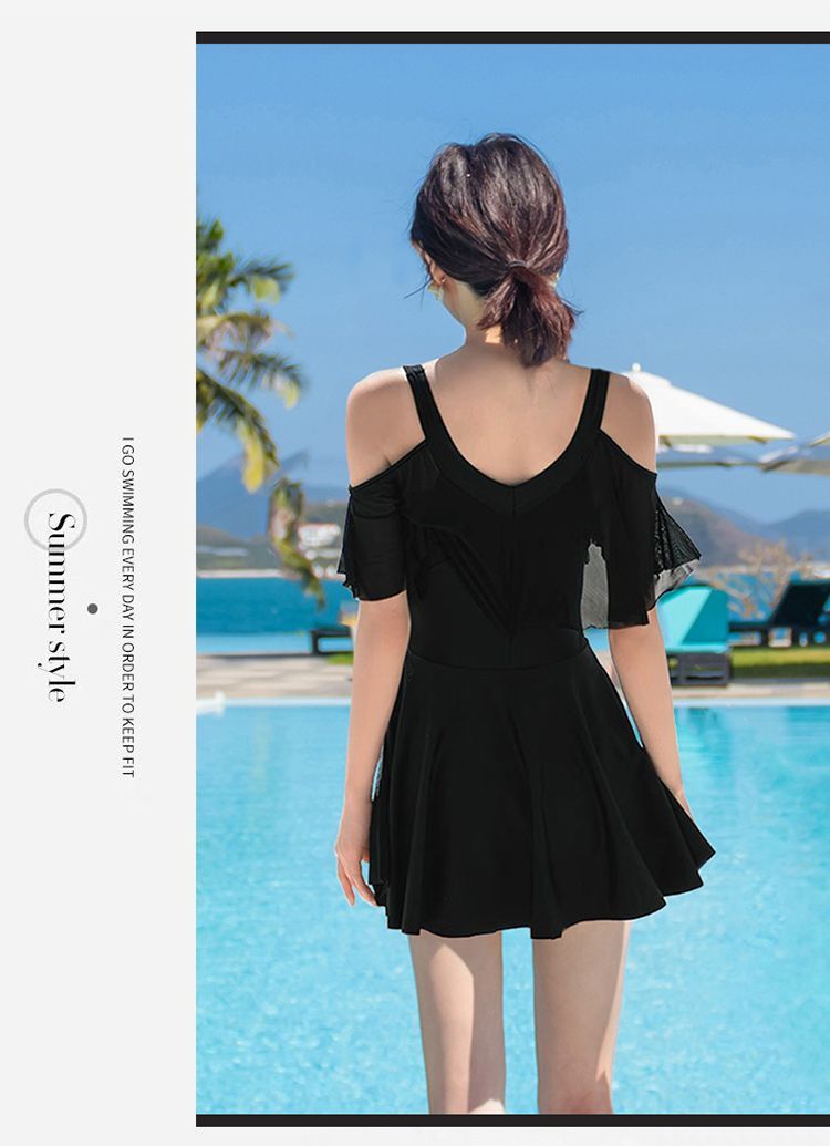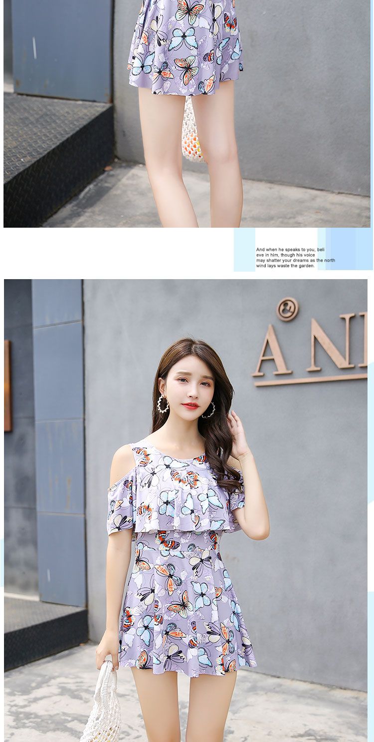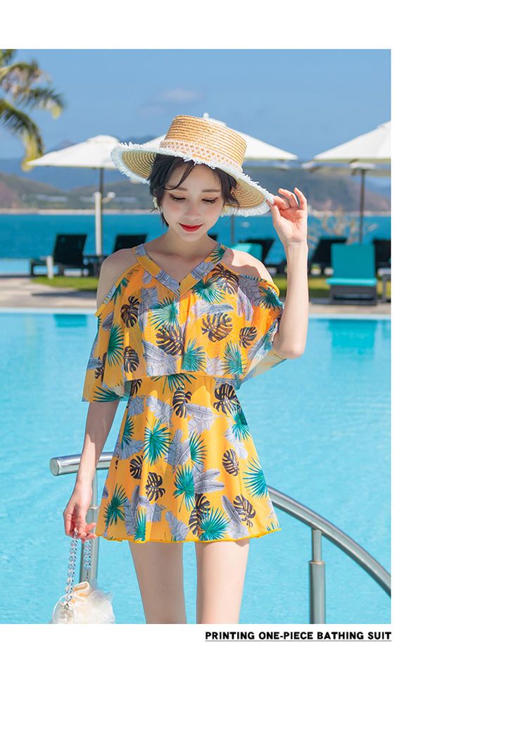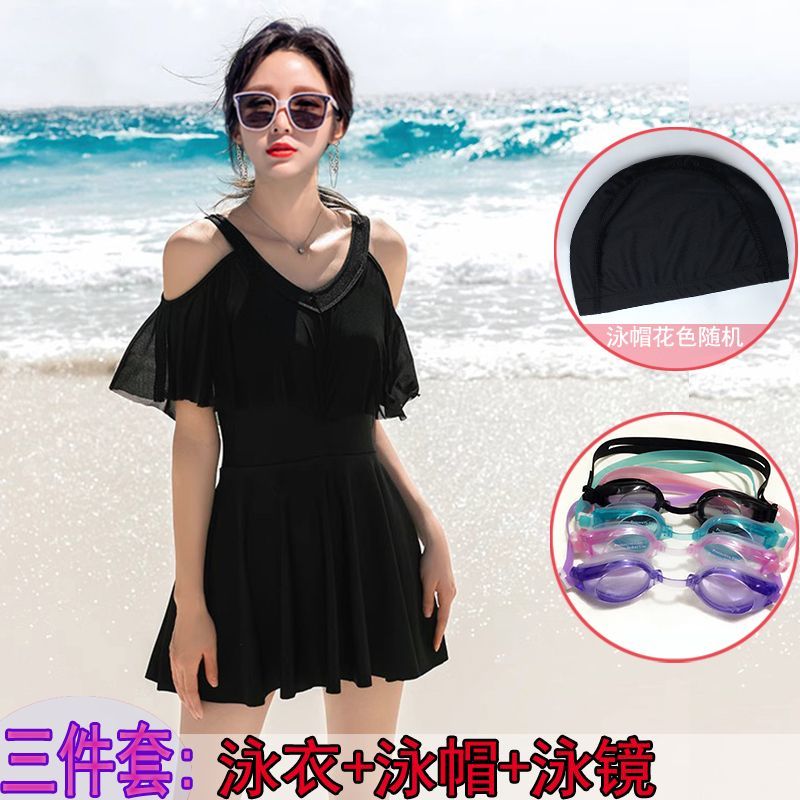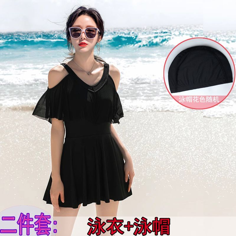 时尚分体泳衣女士裙式平角遮肚韩国泡温泉显瘦两件套加大码游泳衣