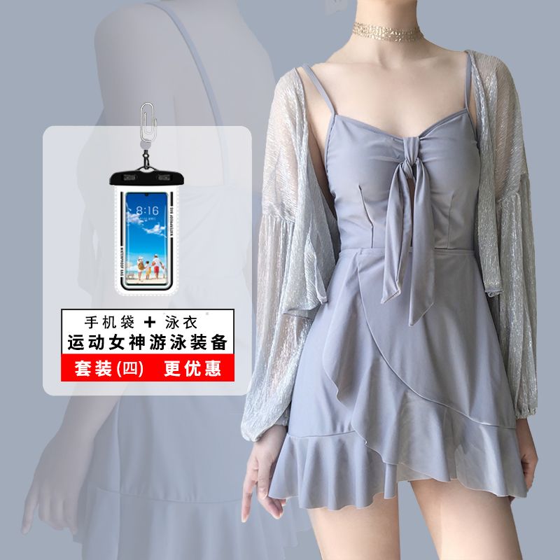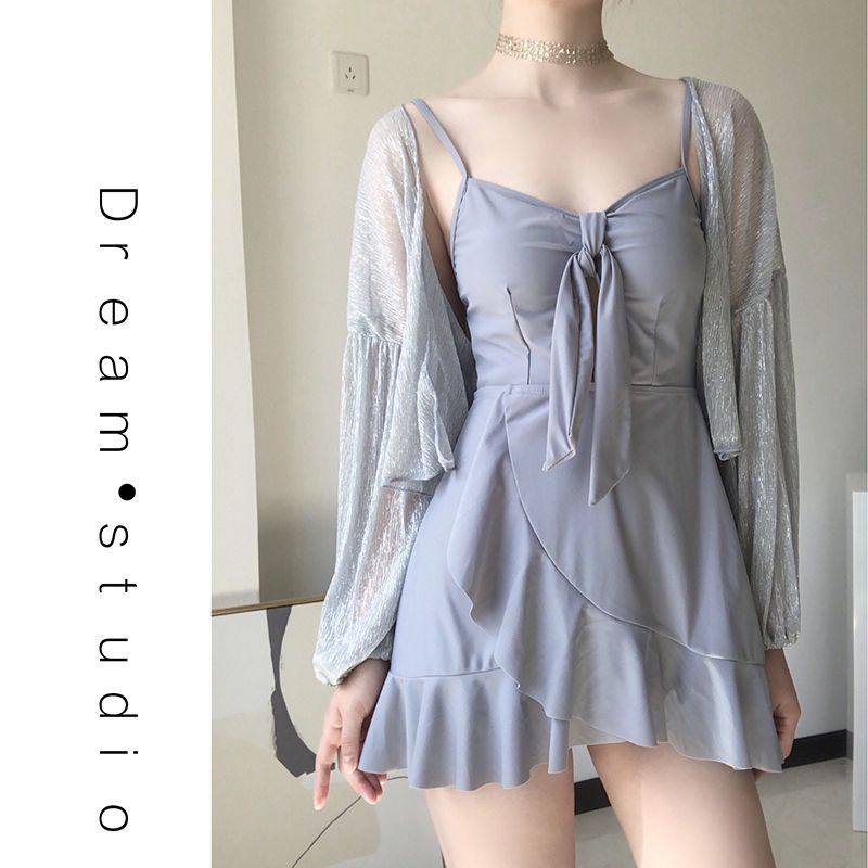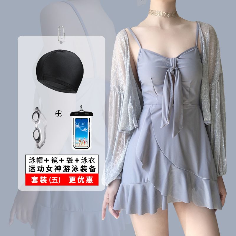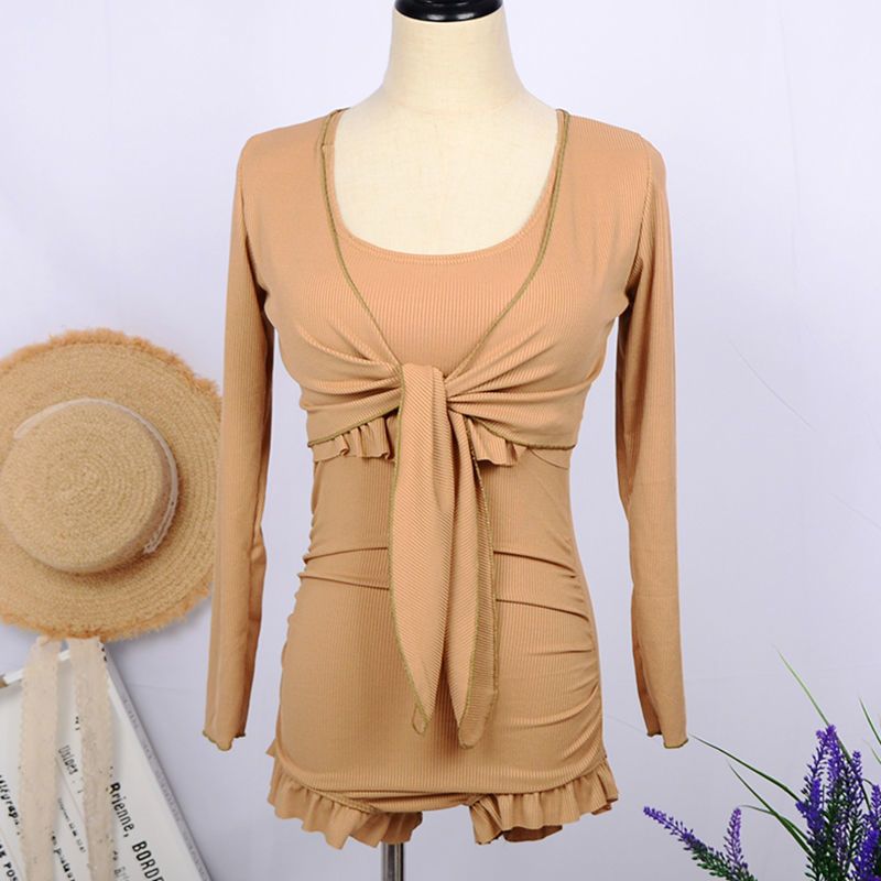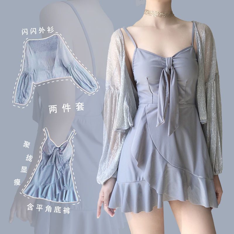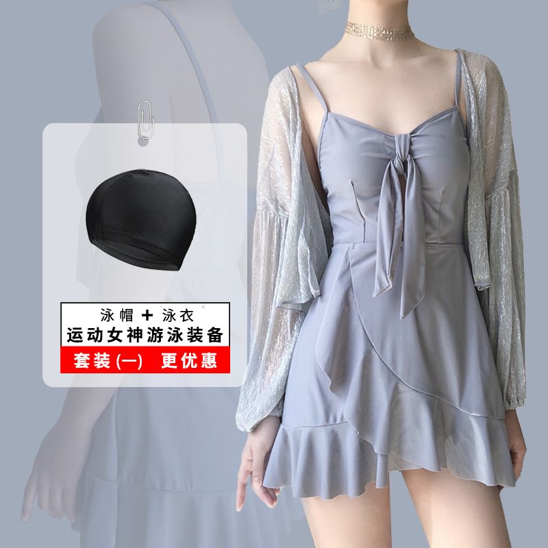超仙游泳衣女士连体大码胖mm保守遮肚显瘦遮肉长袖防晒泡温泉泳装