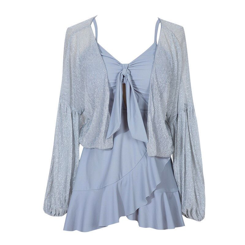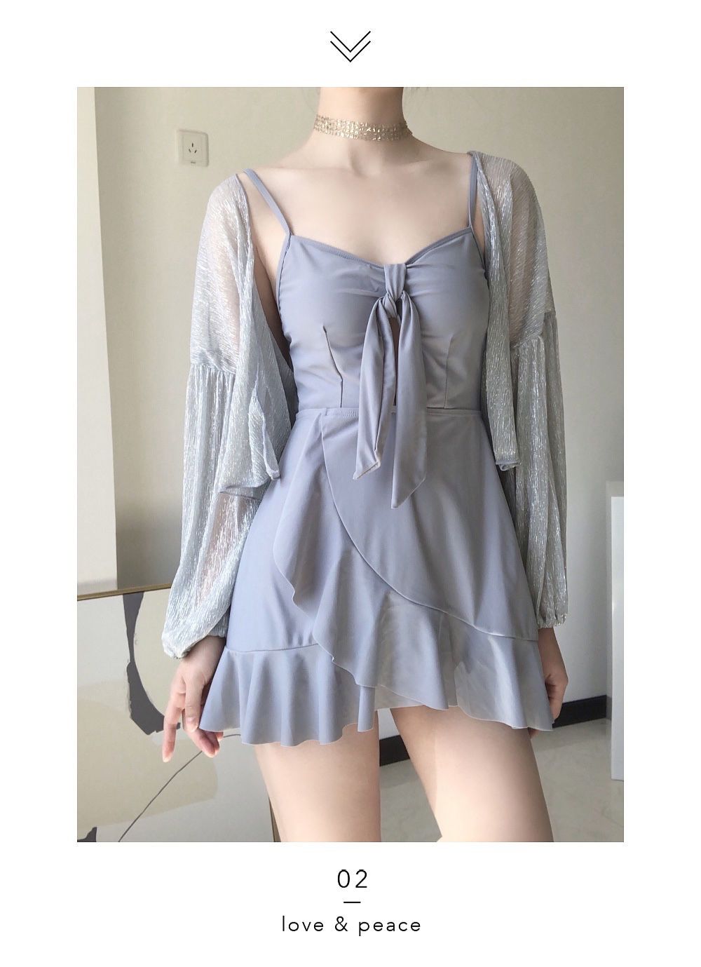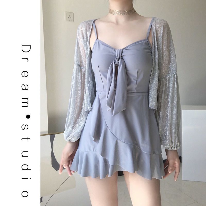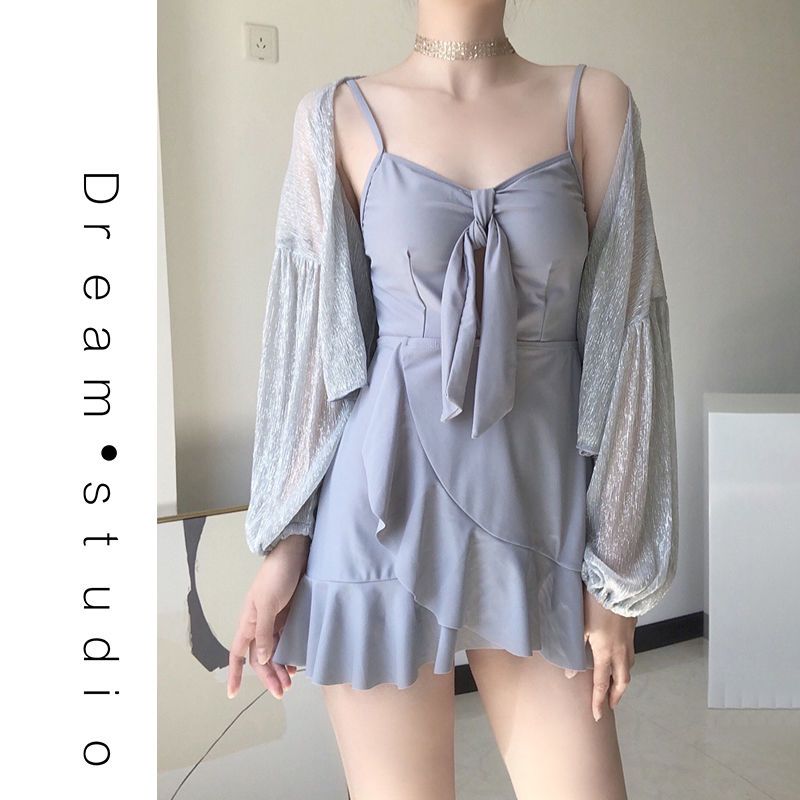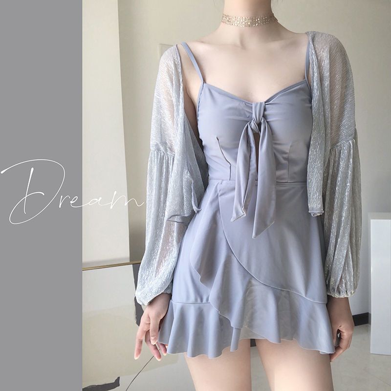 超仙游泳衣女士连体大码胖mm保守遮肚显瘦遮肉长袖防晒泡温泉泳装