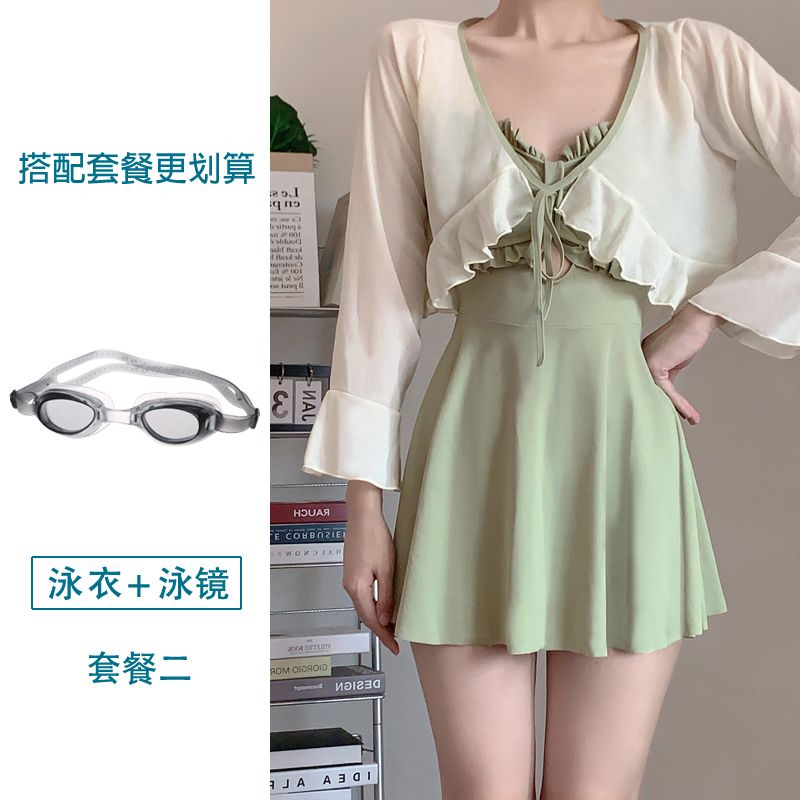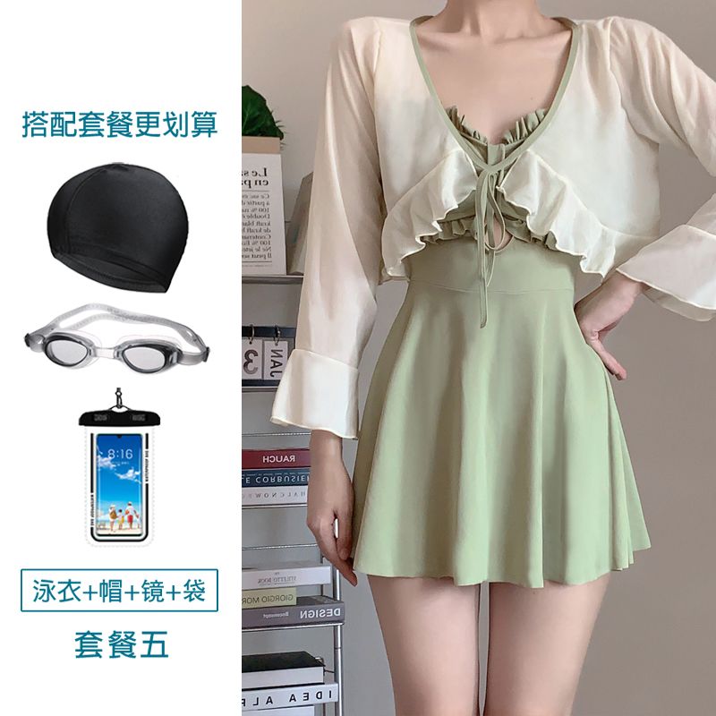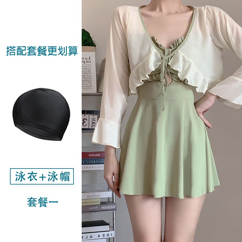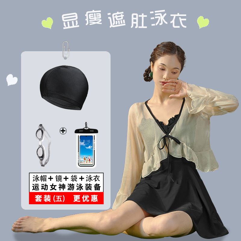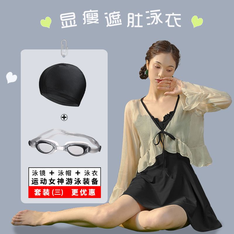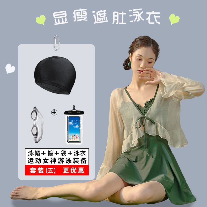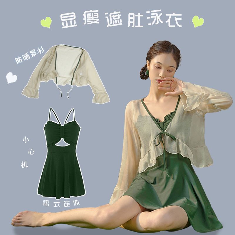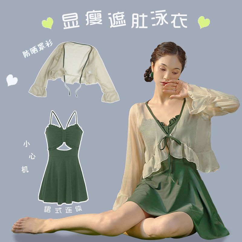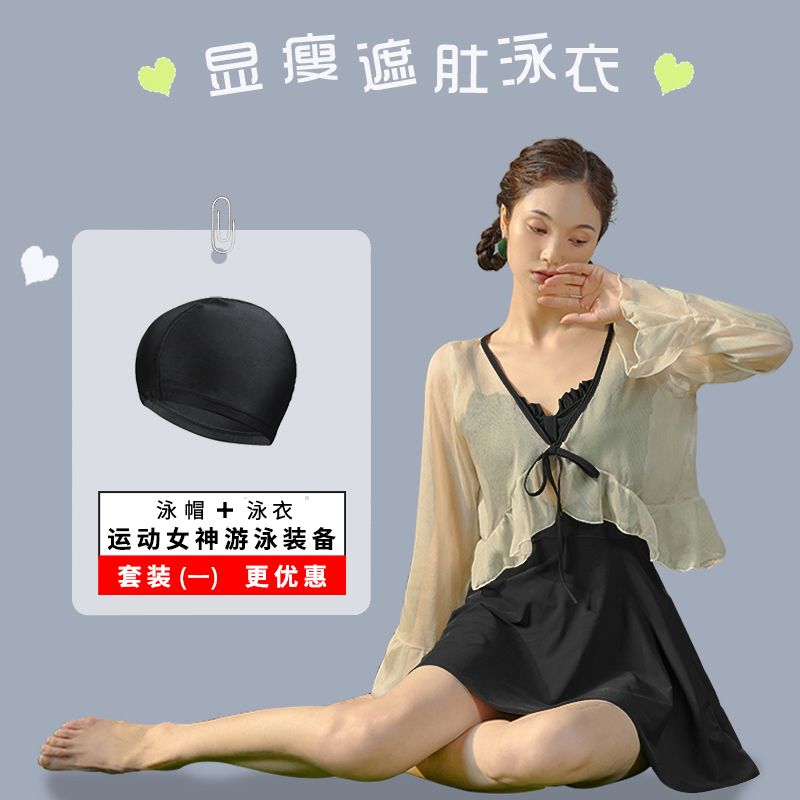 超仙游泳衣女连体夏长袖防晒温泉遮肚显瘦遮肉罩衫年轻漂亮洋气装